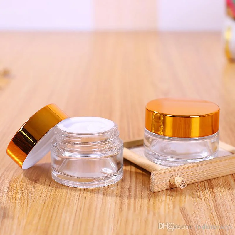 Clear Glass Cosmetic Cream Bottle Round Jars Bottle with Inner PP Liners for Hand Face Cream Bottle 5g to 100g Gold Silver Lids