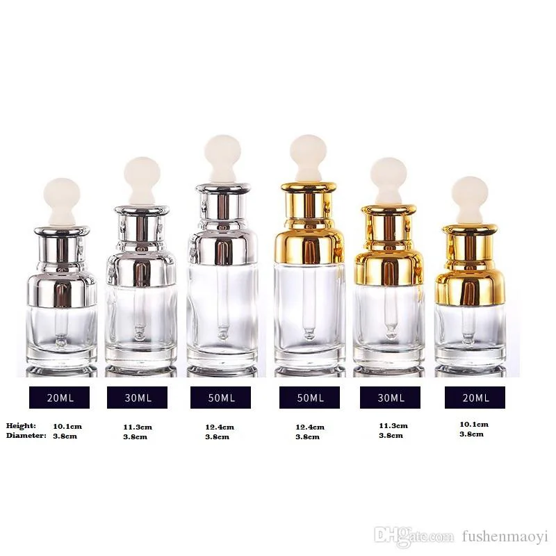 Clear Glass Essential Oil Perfume Bottles Liquid Reagent Pipette Bottles Eye Dropper Aromatherapy Plated Gold Silver Cap 20-30-5