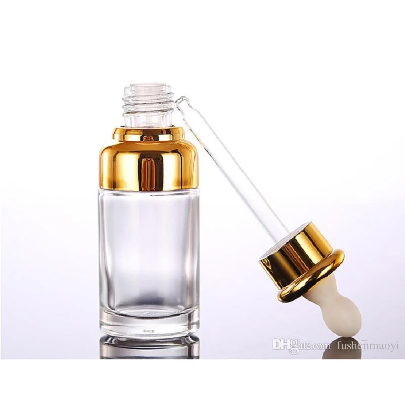 Clear Glass Essential Oil Perfume Bottles Liquid Reagent Pipette Bottles Eye Dropper Aromatherapy Plated Gold Silver Cap 20-30-5