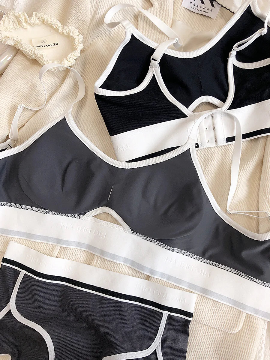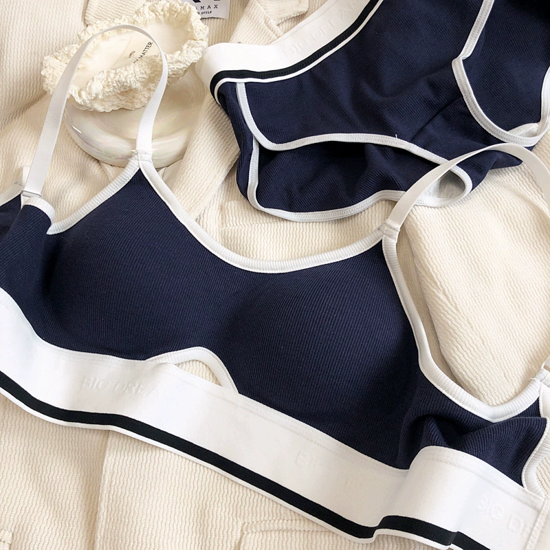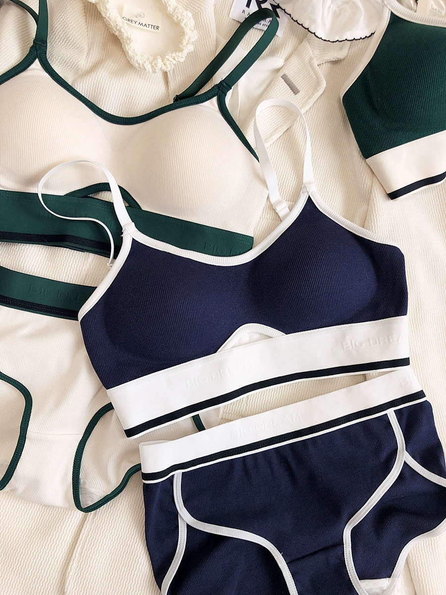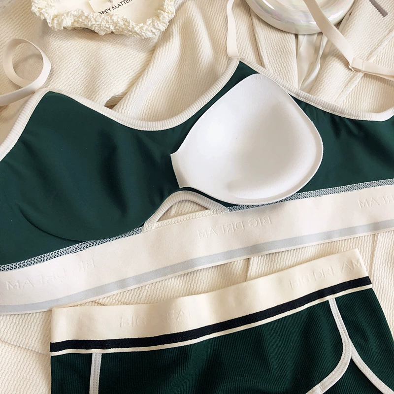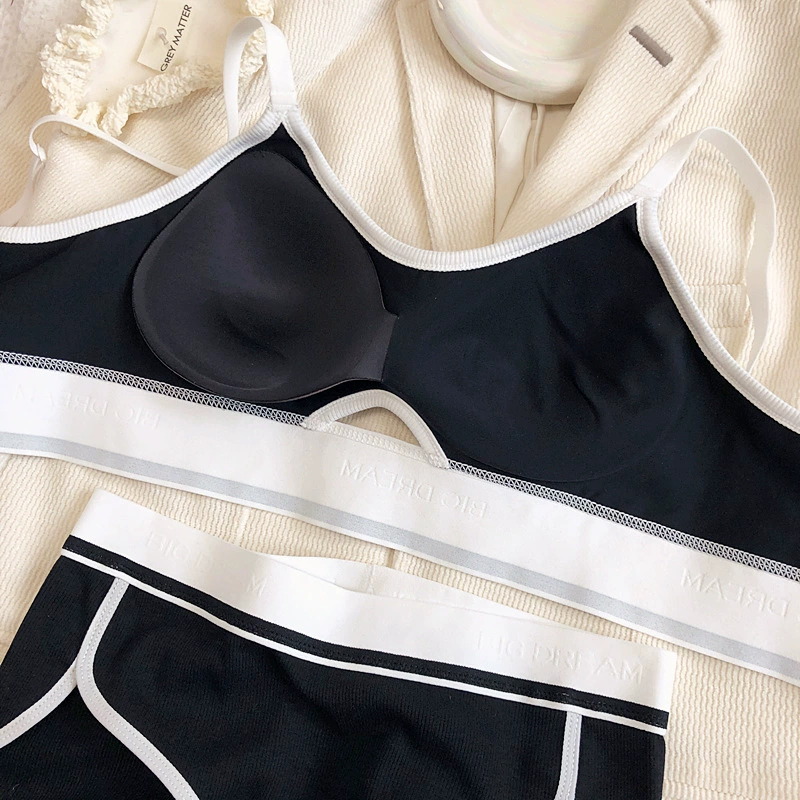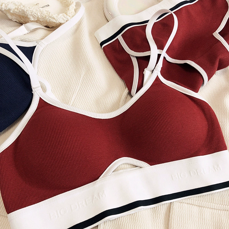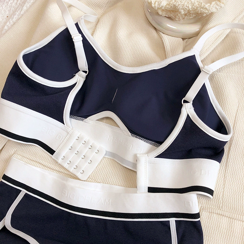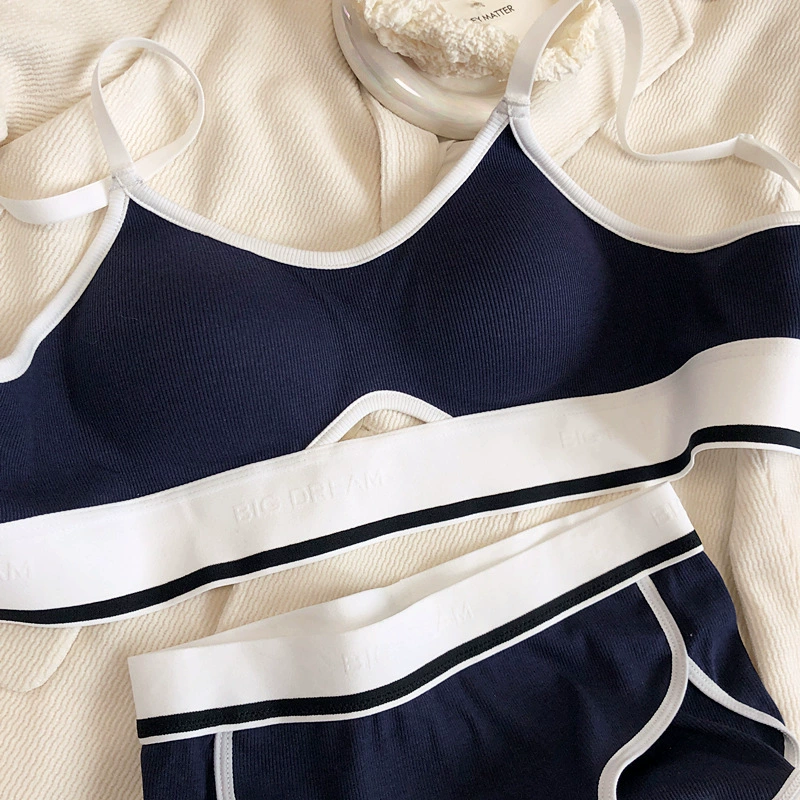 Collision color simple sports underwear set without steel ring quick dry pit strip comfortable campus bra gathered tank top