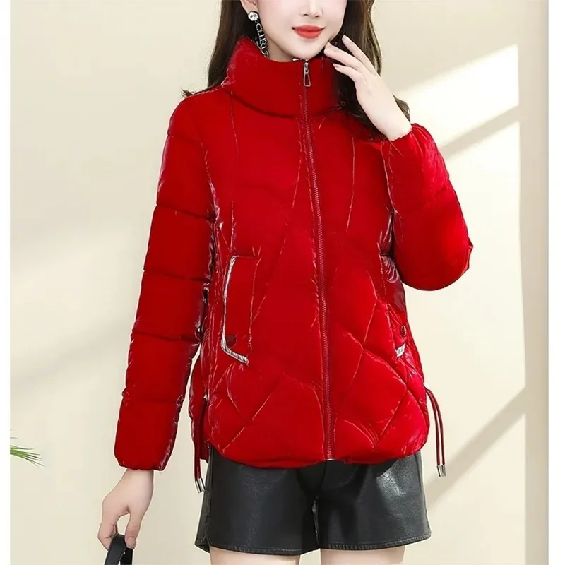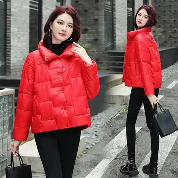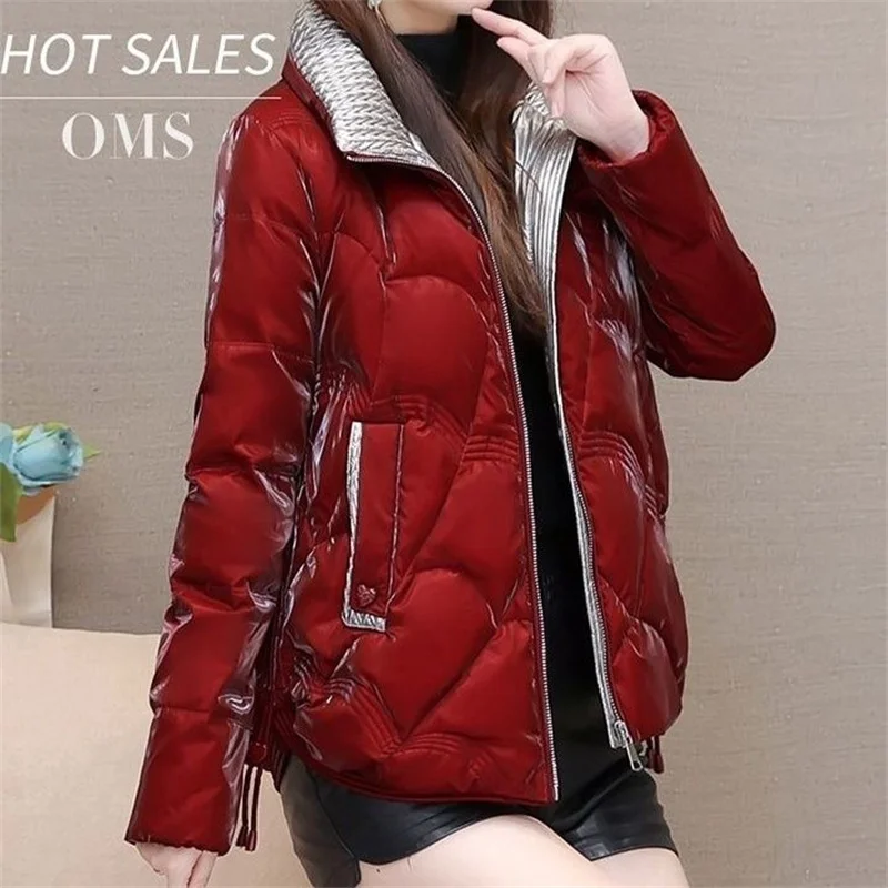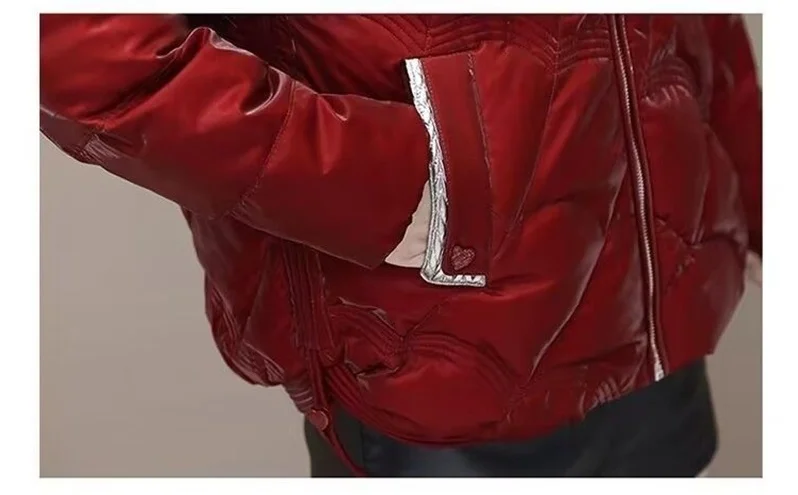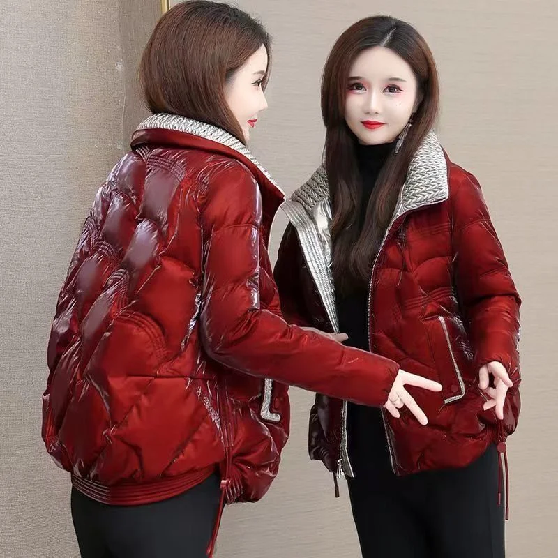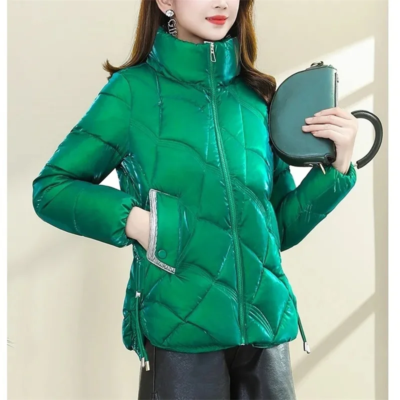 Colorful Pearlescent High end Fabric Down Cotton Jackets Women’s New Short Korean Loose Quilted Coat Thick Coat Bright Face Gree