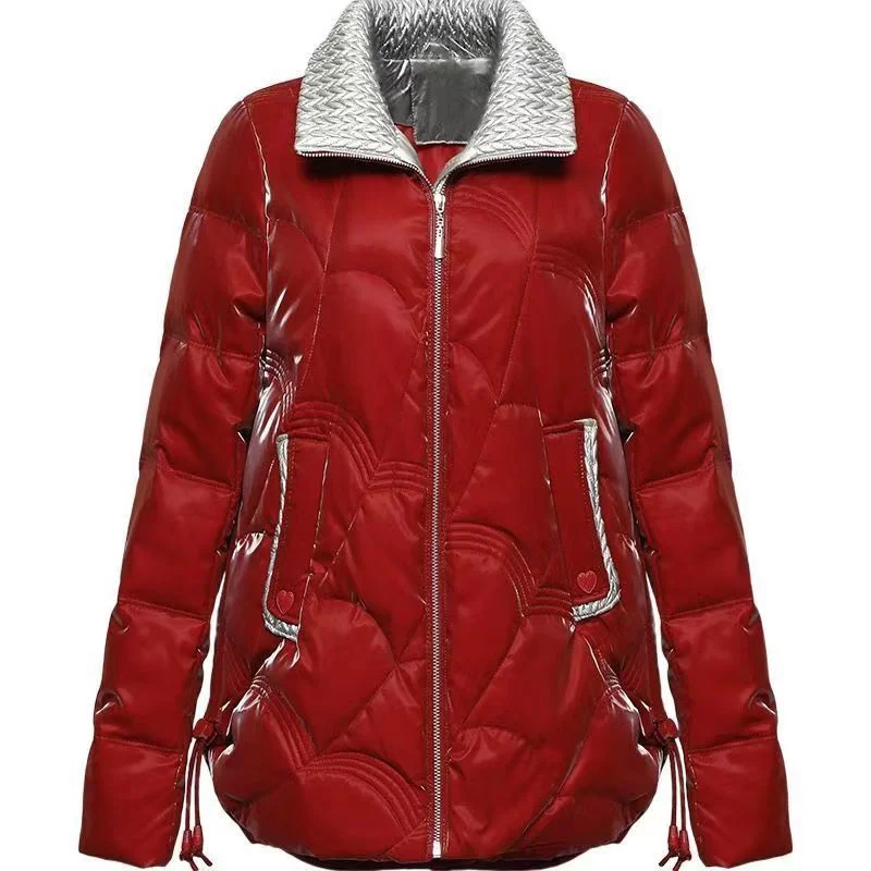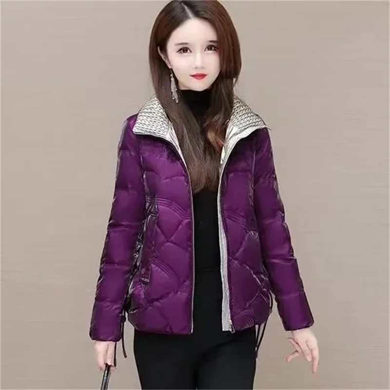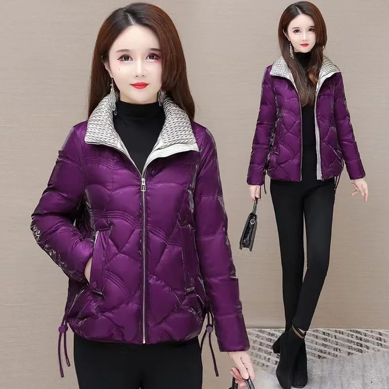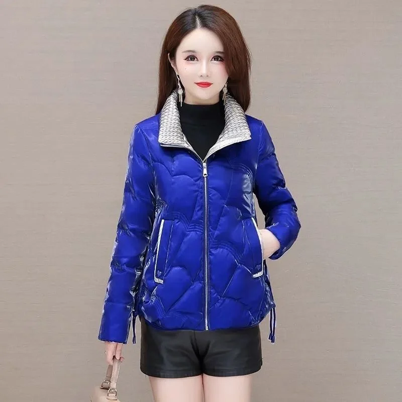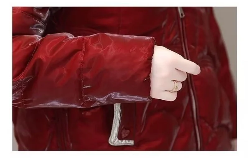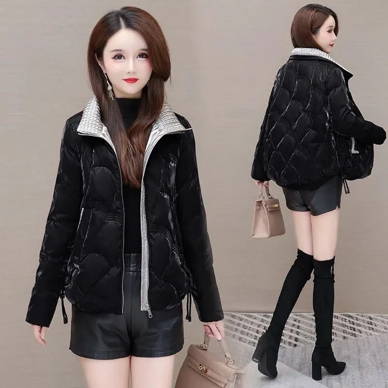 Colorful Pearlescent High end Fabric Down Cotton Jackets Women’s New Short Korean Loose Quilted Coat Thick Coat Bright Face Gree