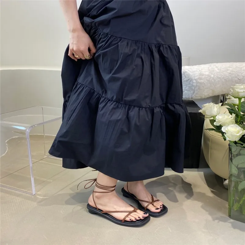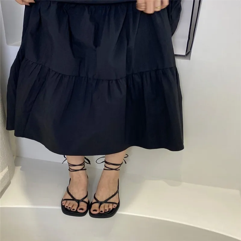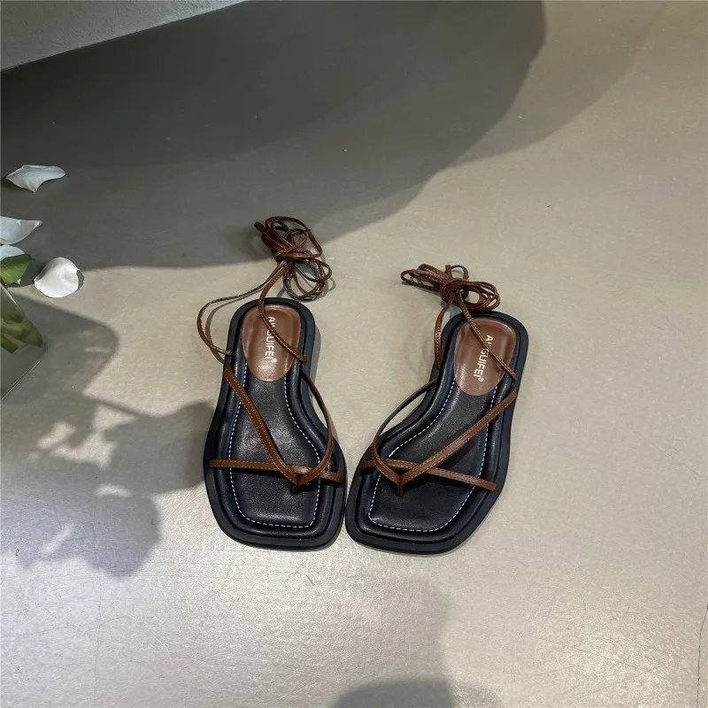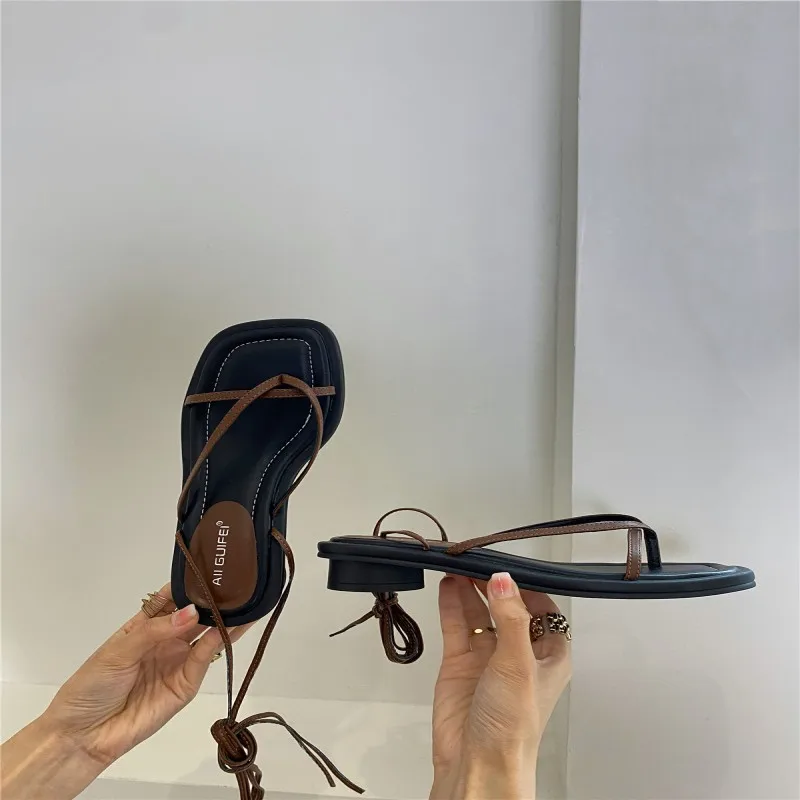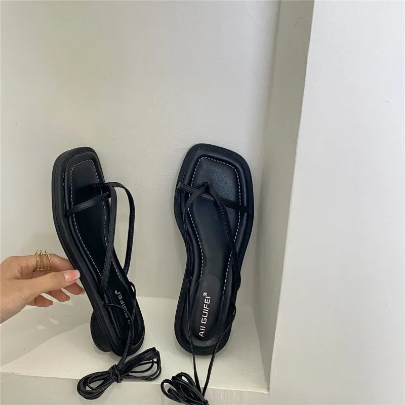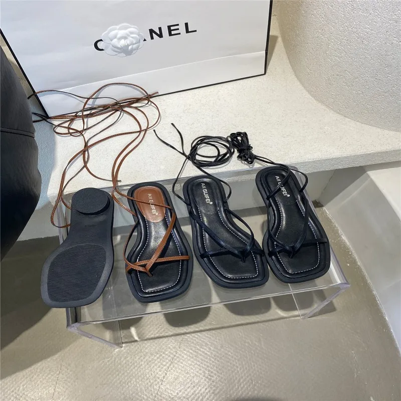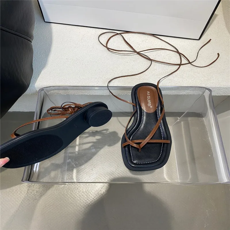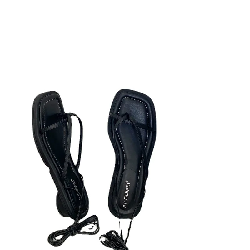 Comfort Shoes for Women 2023 Sandals Suit Female Beige Block Heels Square Toe Flip Flops Platform New Summer Low Black Chunky La