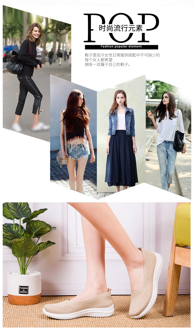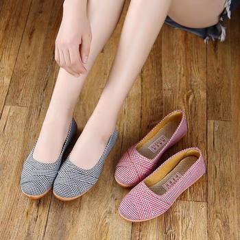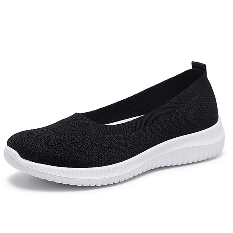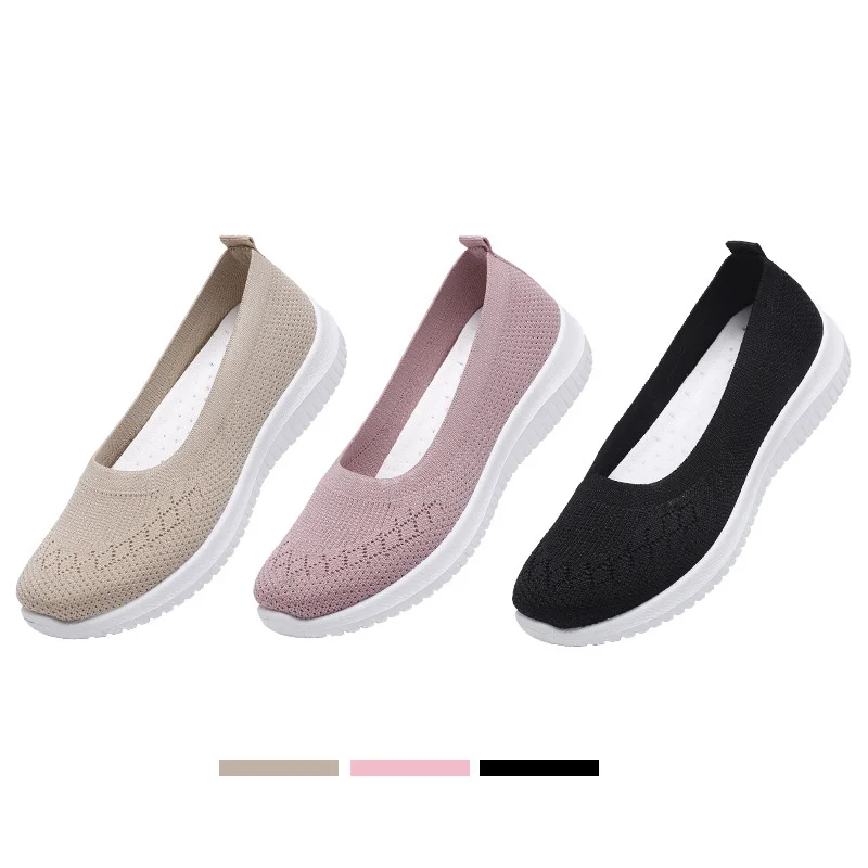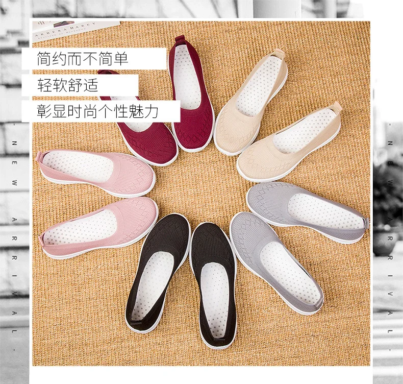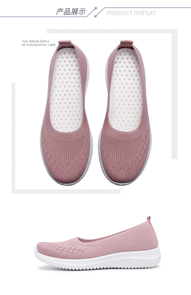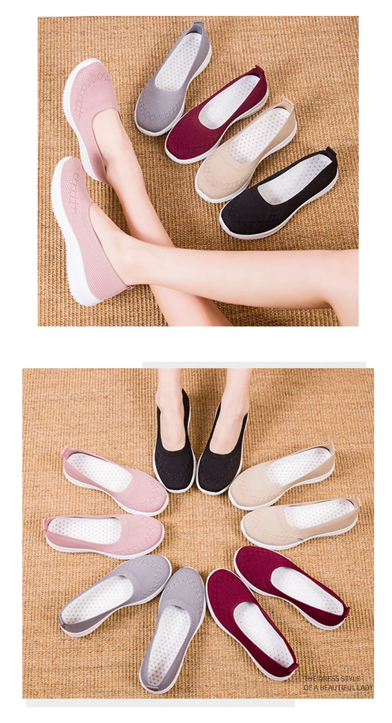 comfortable knitting mother shoes women soft bottom shallow mouth stretch weaving flats breathable slip on loafers big size 41
