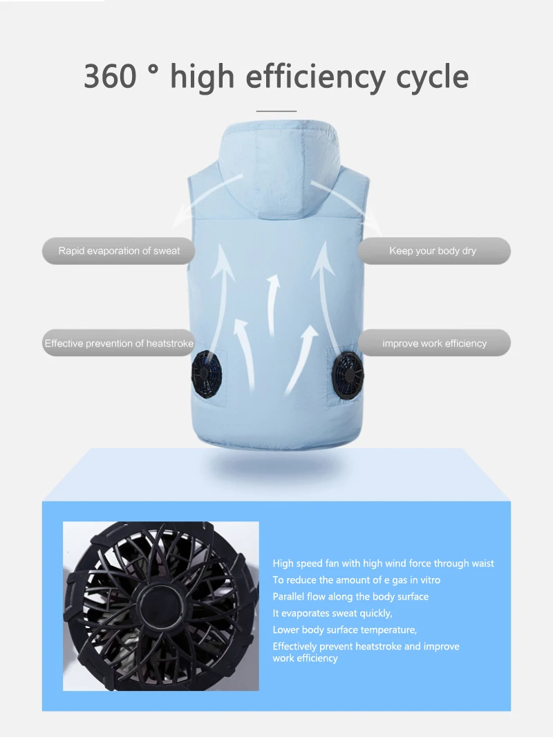 —— You can comfortably work outdoors because it protects you from direct sunlight ! This cooling vest gives you more comfortable and stress-free environment with blowing cool air inside the vest.