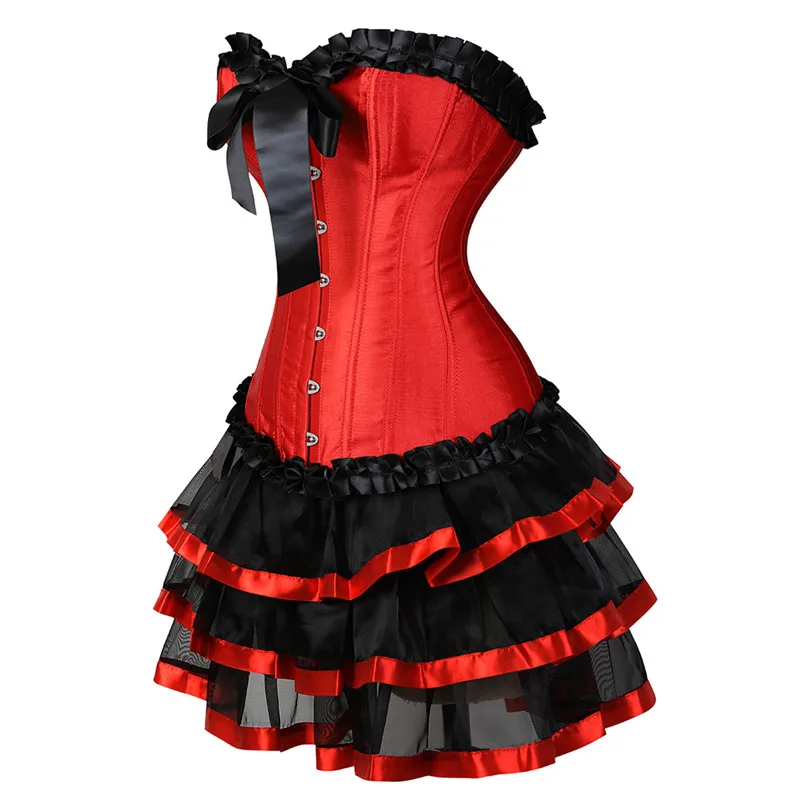 corset dress bustiers victorianlace up lingerie lace corset skirts for women burlesque gothic sexy redk Green Red corsage erotik