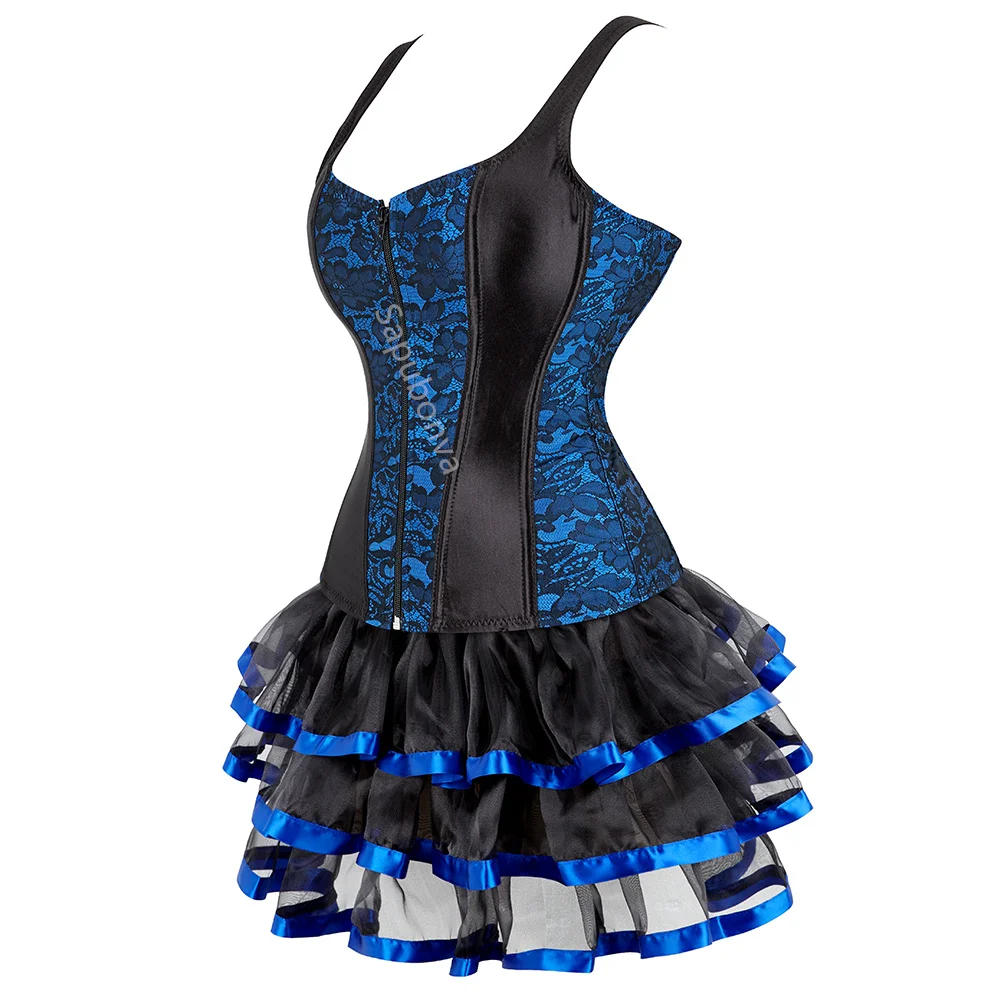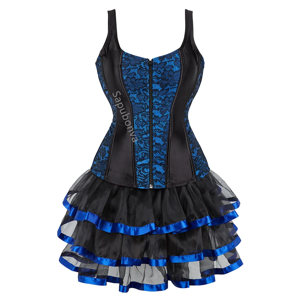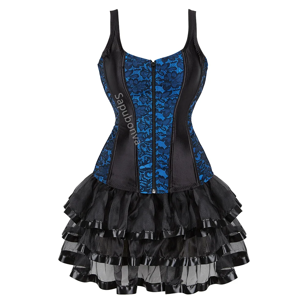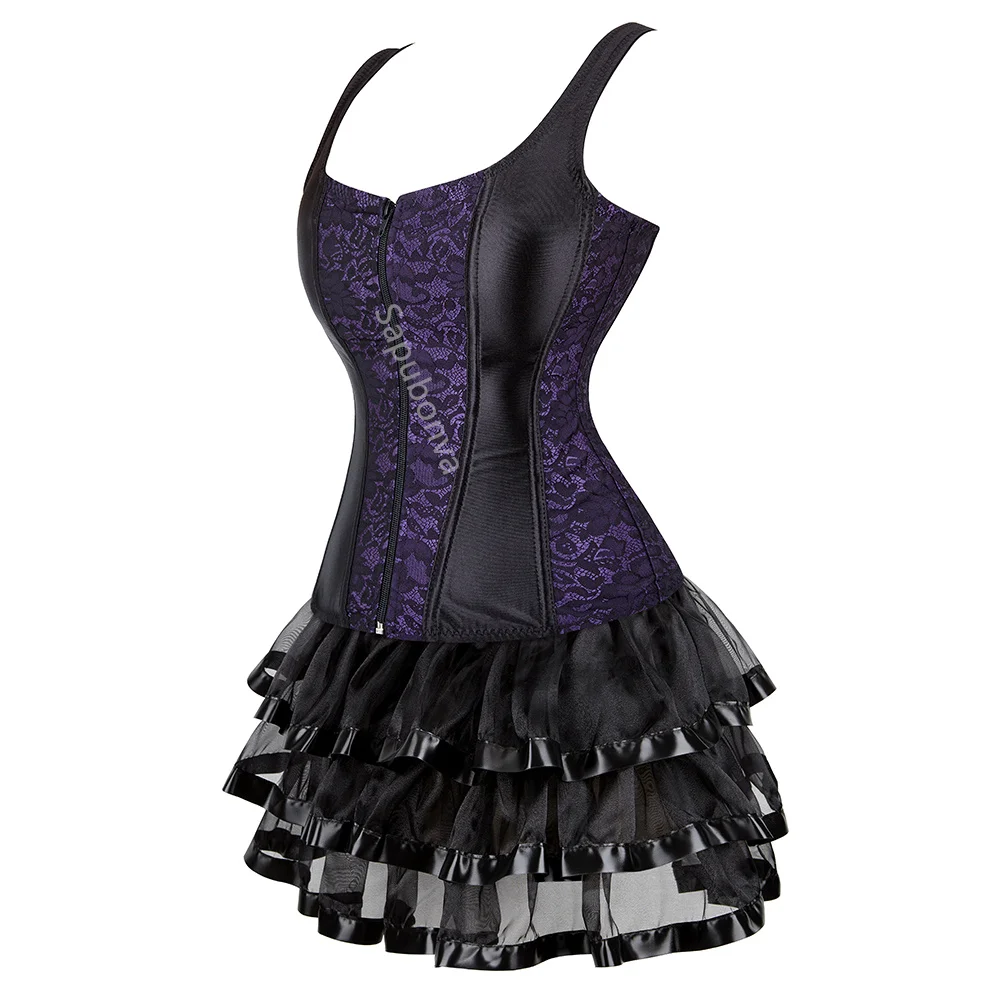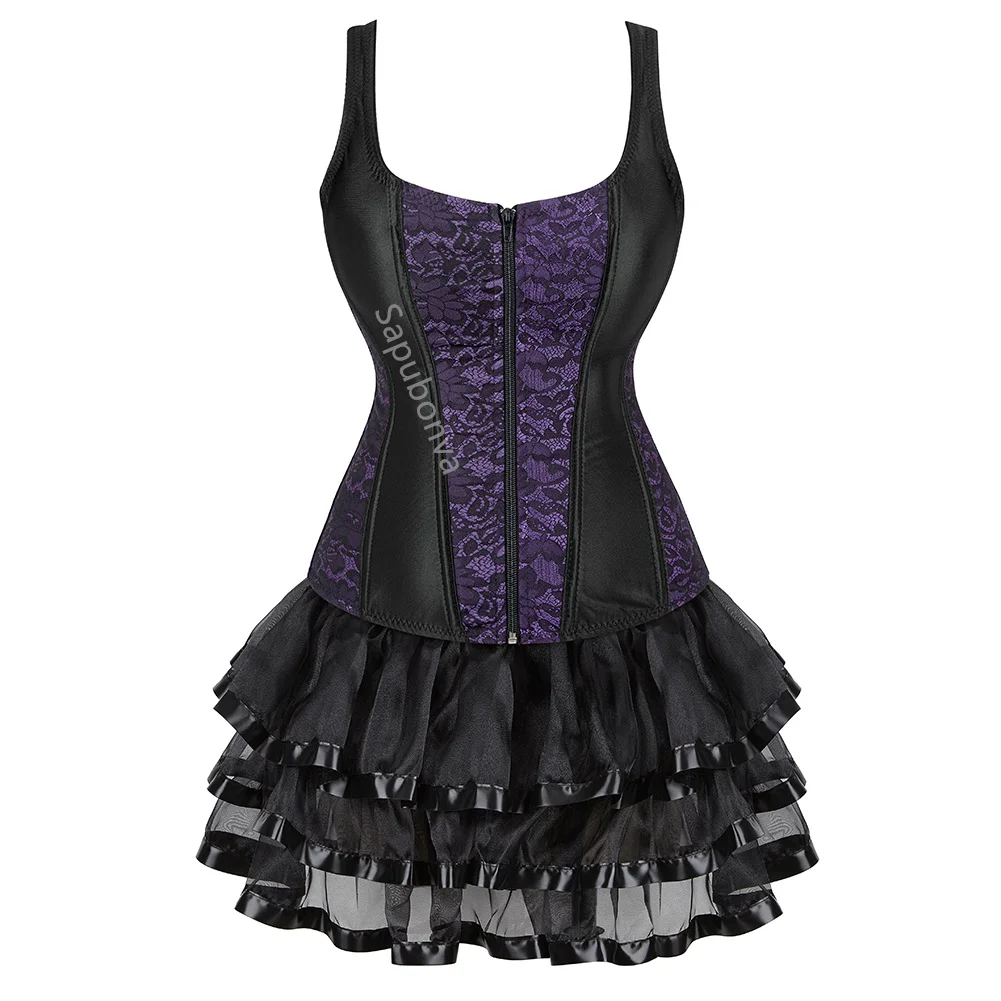 apubonva overbust corset dresses plus size burlesque gothic tutu skrits corset bustier with straps zip cosplay costume party