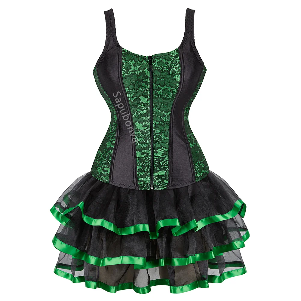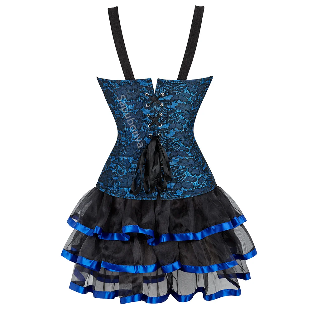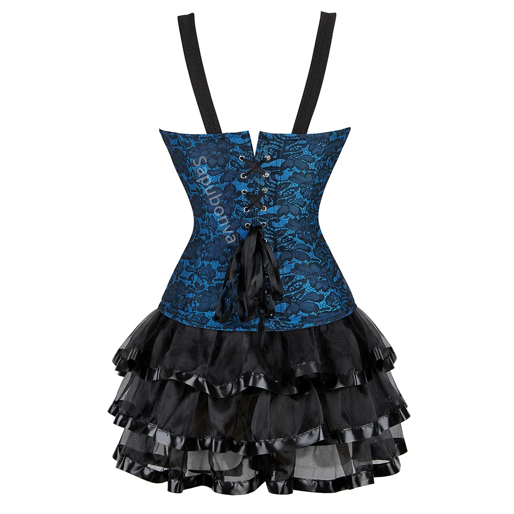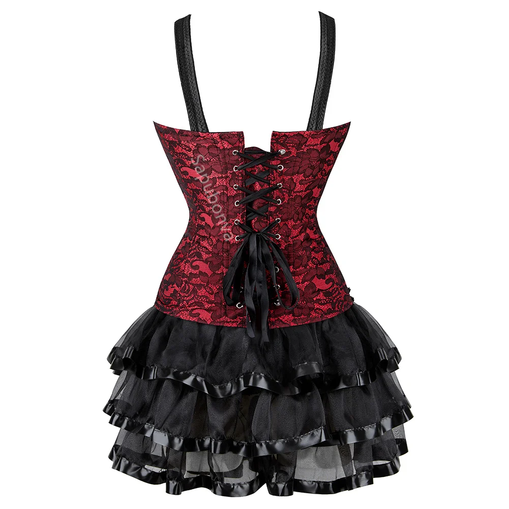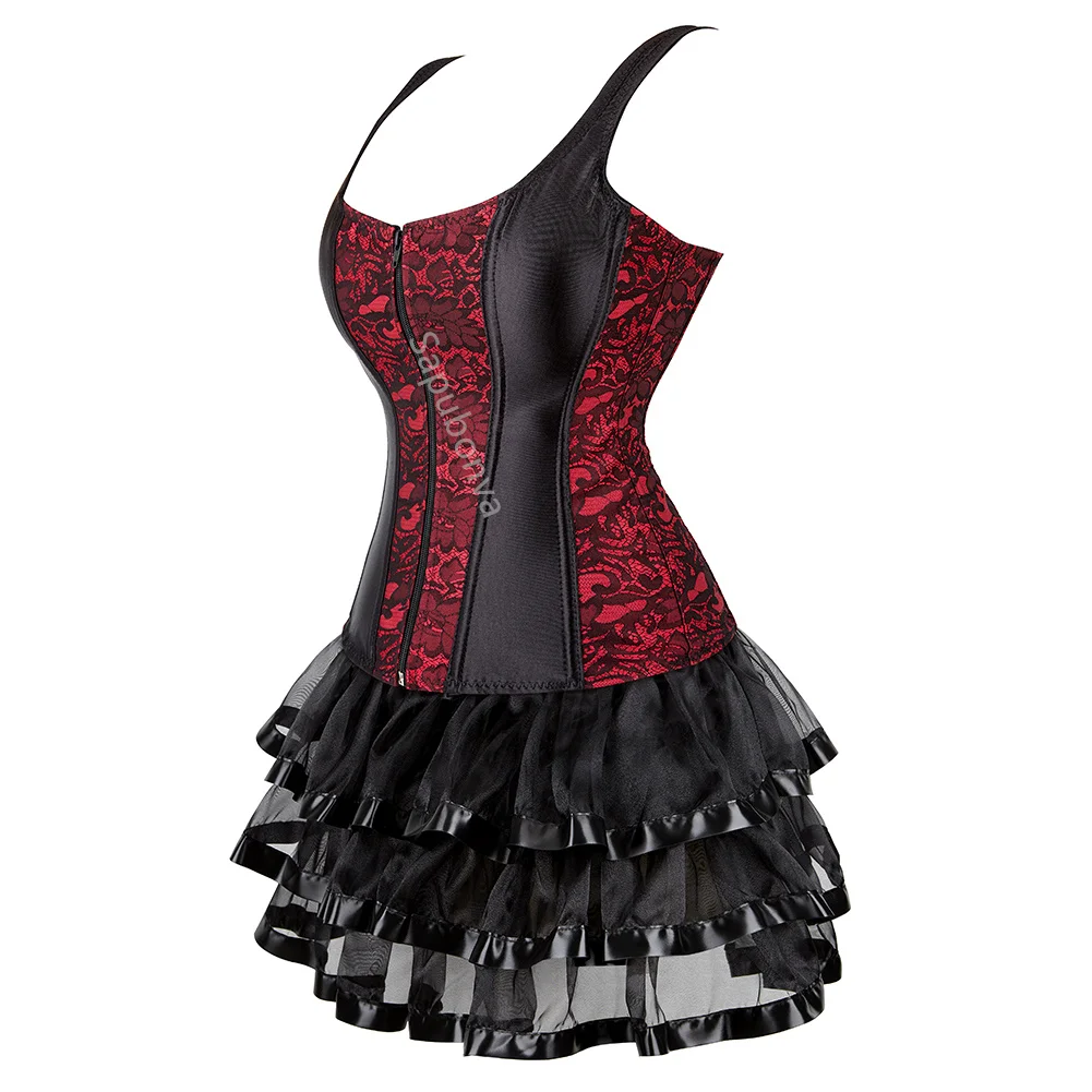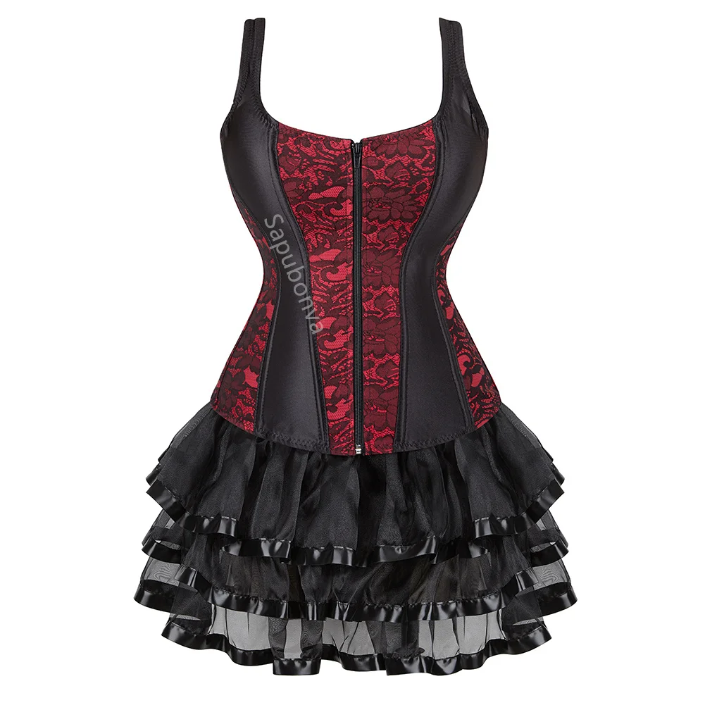 Corset Dress Tutu Skrits Set Strap Zipper With Lace Costume Party Sexy Burlesque Ladies Outfit Plus Size Gothic Halloween Red