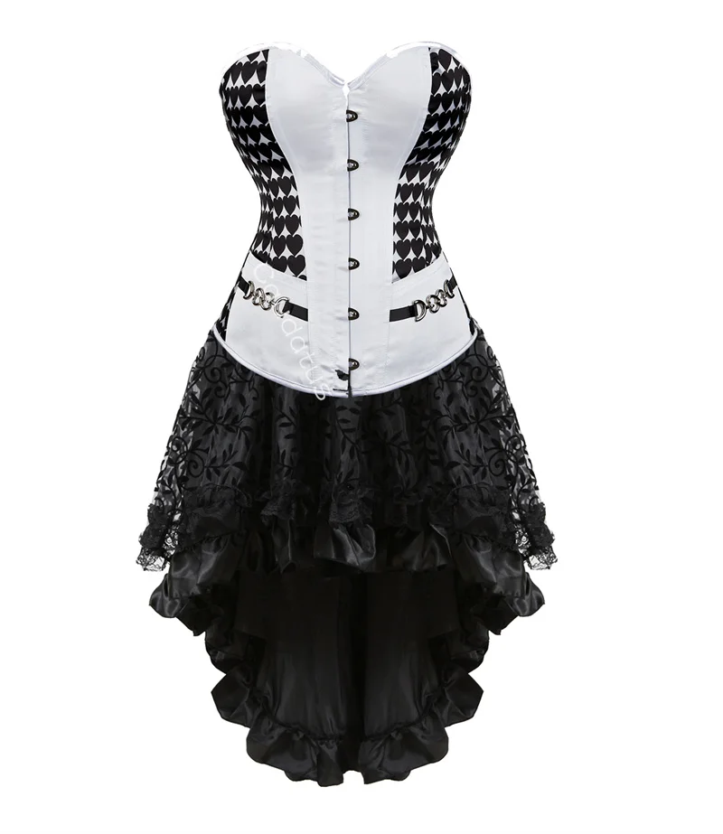 Corset Dress Tutu Skrits Top Set Skull Print With Lace Gothic Costume Party Sexy Burlesque Halloween Basques Outfit Plus Size