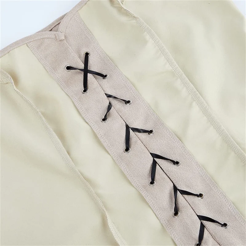 5. There is a panel at the back of the corset which you can use to cover up your back under the lacing(optional) or fold it into the corset for a more exposed look for your back under the lace up.