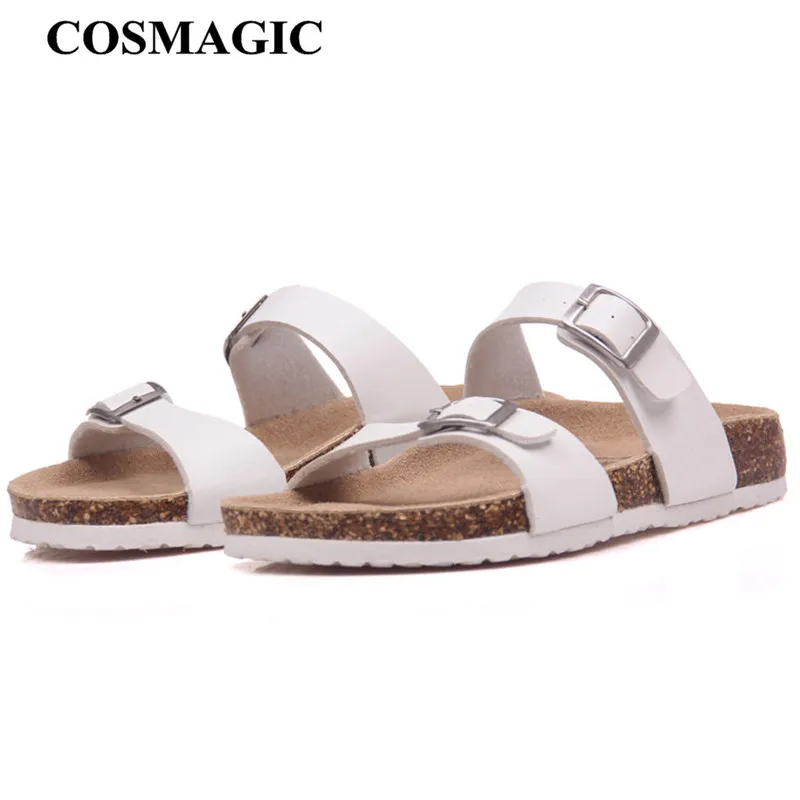 COSMAGIC 2022 New Summer Cork Slippers Women Casual Mixed Color PU Flip Flops Holiday Beach Outside Slides Shoe