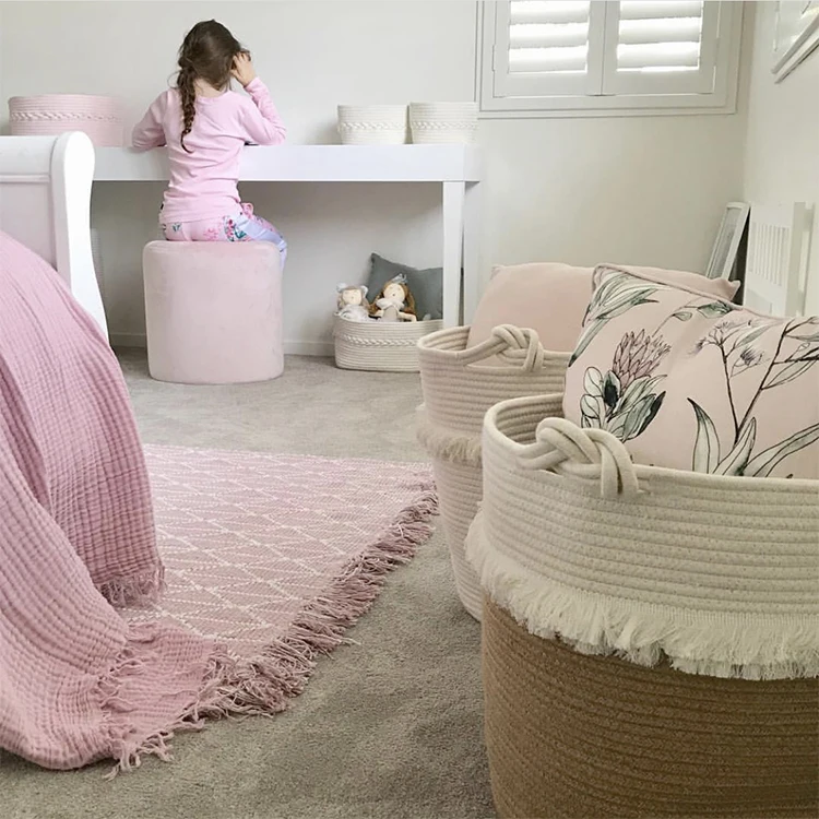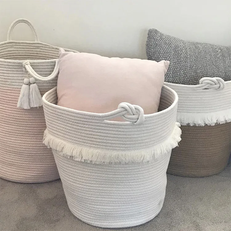 Cotton Organizer Baby Bedding Set Accessories Toys Diaper Barrel Basket Baby Stuff Storage Bag Tassel Bucket for Baby Room Decor