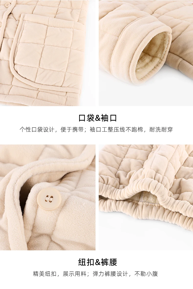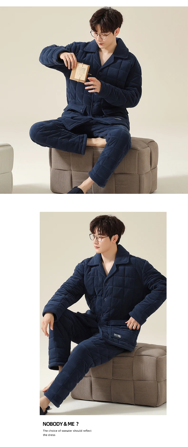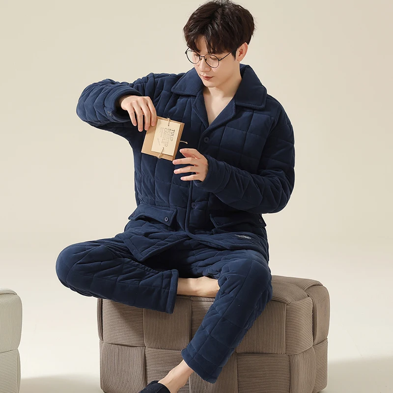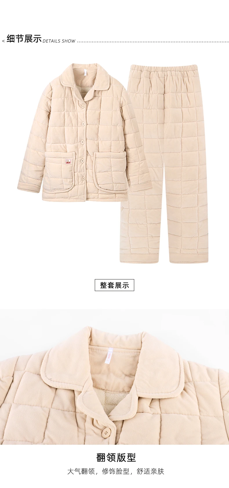 Couple Pajamas Set Men Women Turn-down Collar Pyjamas Male Female 3 Layer Clip Cotton Home Suit