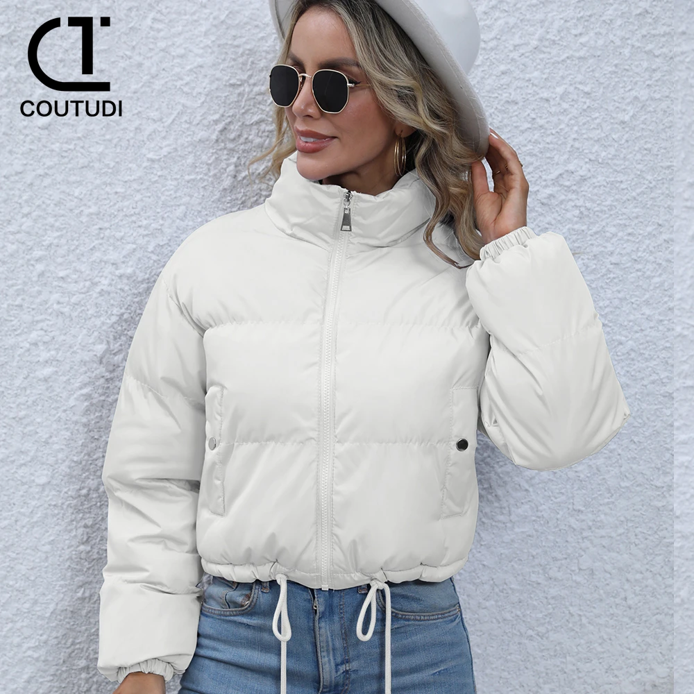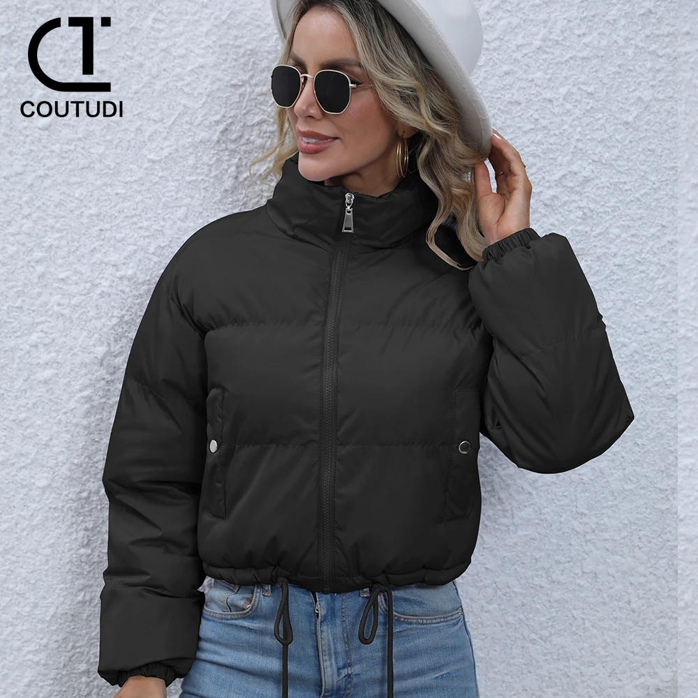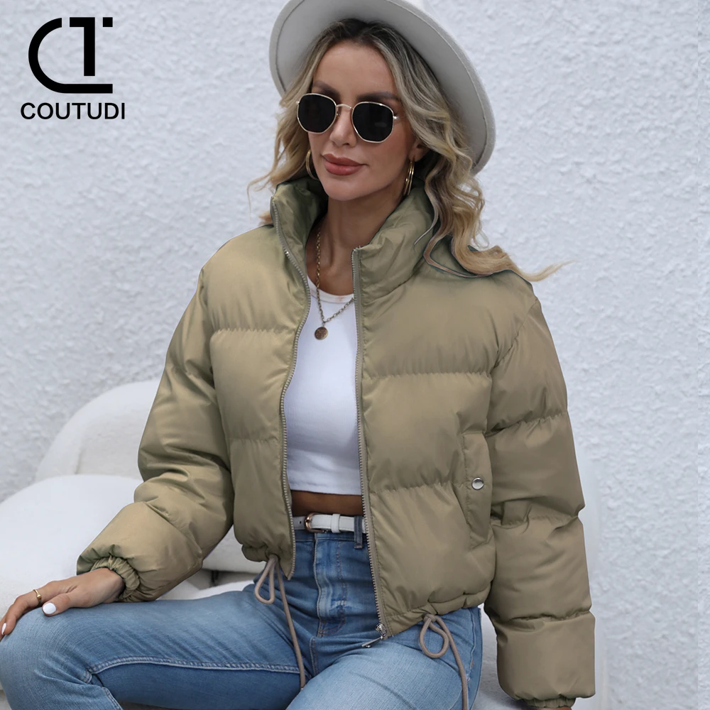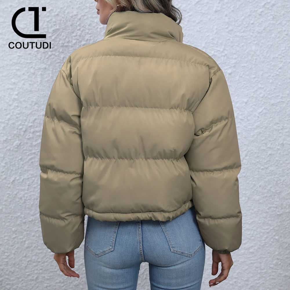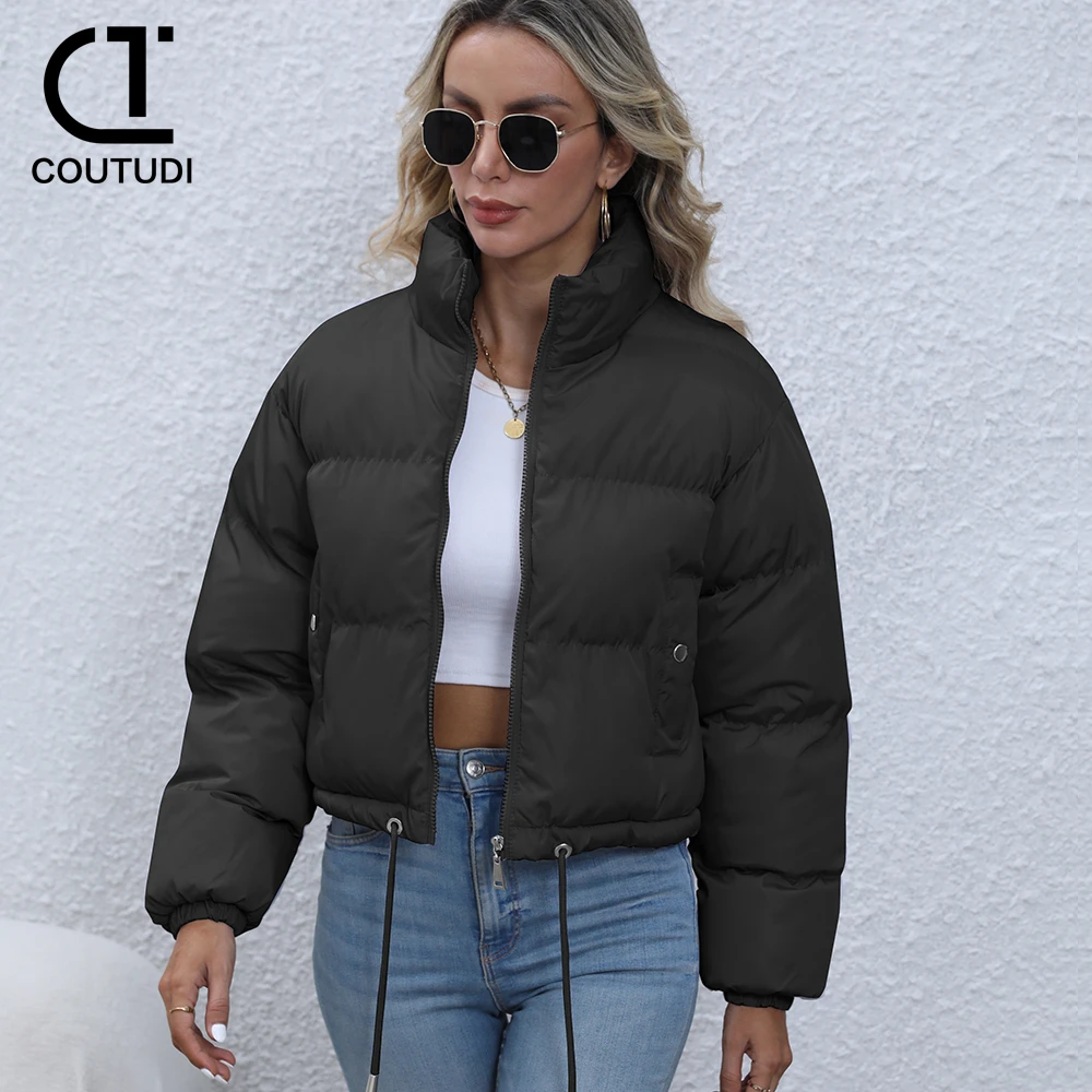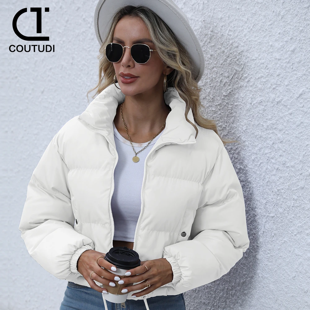 COUTUDI 2024 Women Warm Parkas Coat Stand Collar Winter Puffer Jacket Women Padded Short Down Coat Female Outerwear Clothing