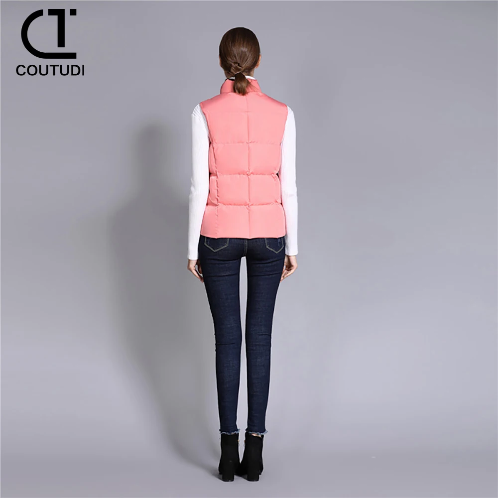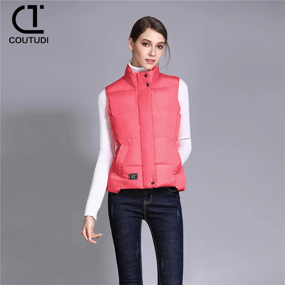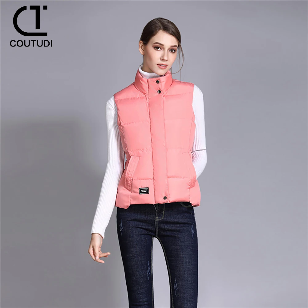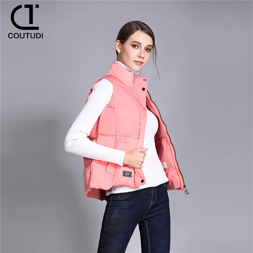 COUTUDI Women Vest Top Winter Cotton Padded Sleeveless Puffer Jacket Warm Down Coat Women Parkas Jacket Outerwear Spring Autumn