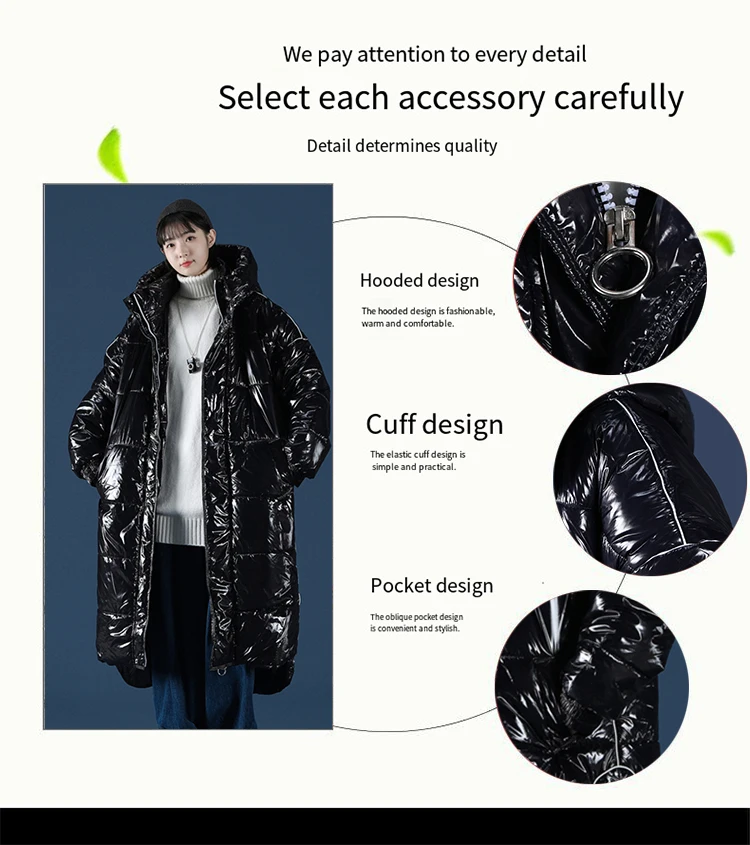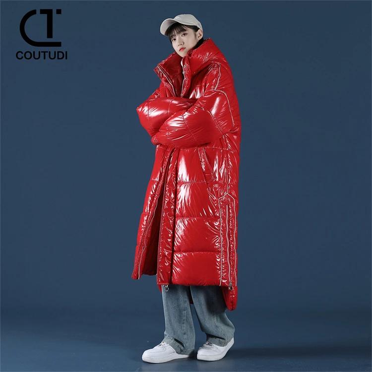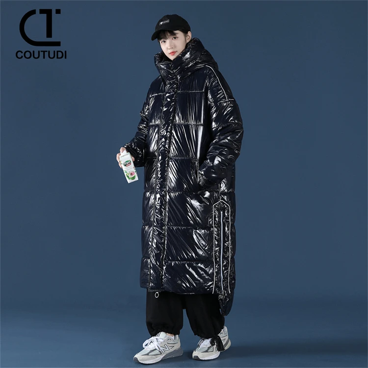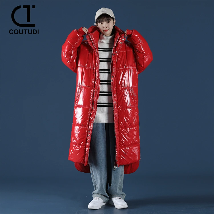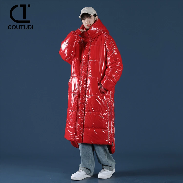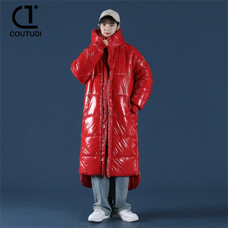 COUTUDI Women Bright Long Down Jacket Coat Winter Women’s Clothing Female Fashion Casual Outfit Warm Padded Long Down Parkas