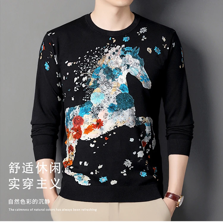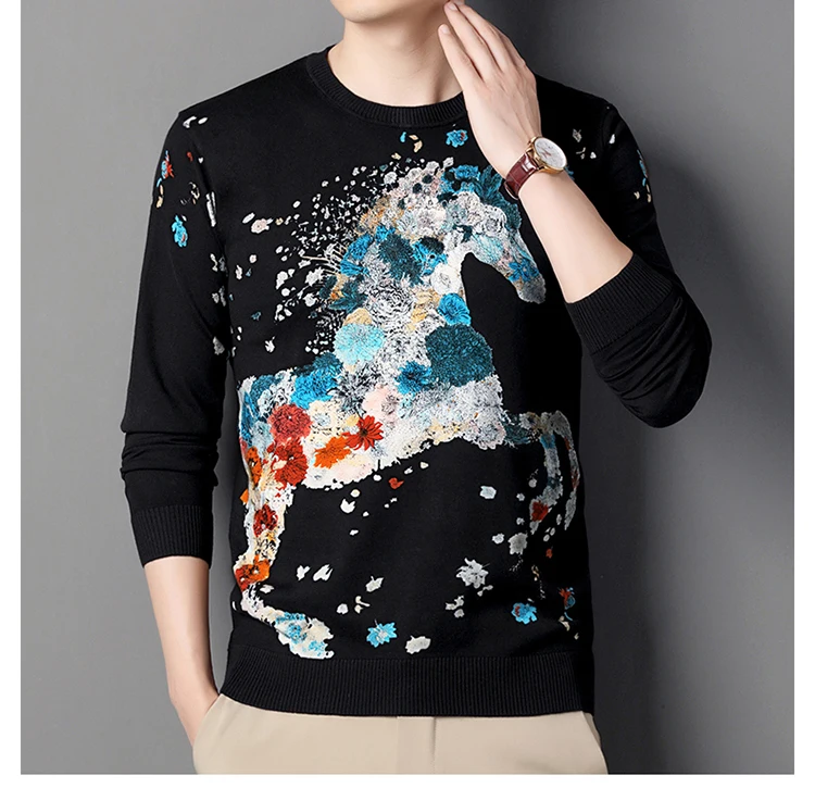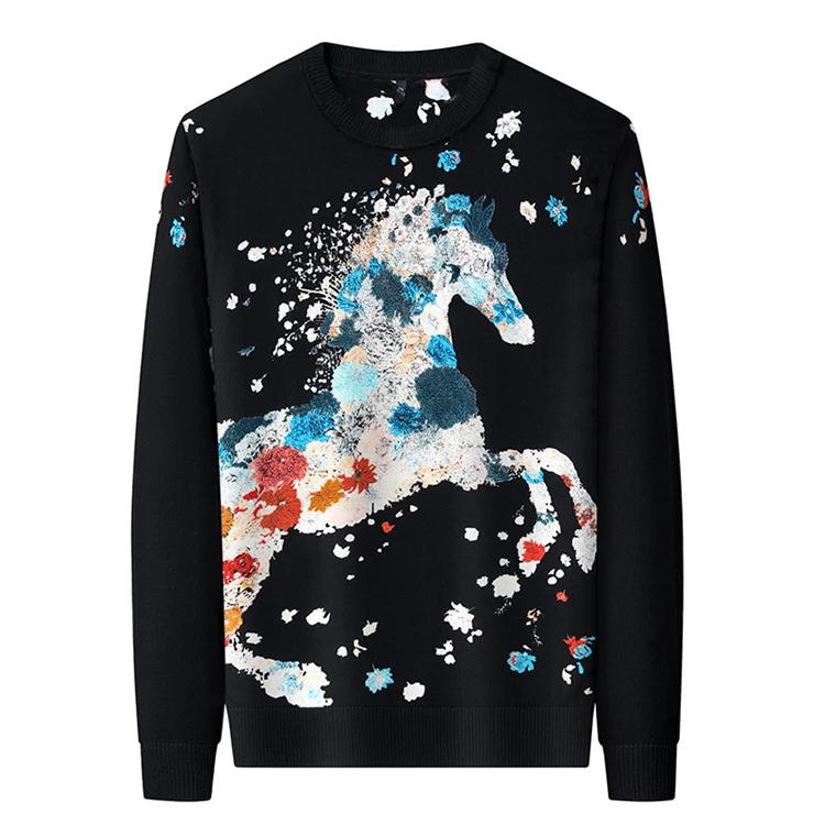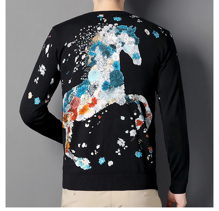Creative 3D Print Vintage Sweaters For Men Horse Pattern Knitted Spring High Quality Elastic Pullovers Fashion Casual Pull Homme