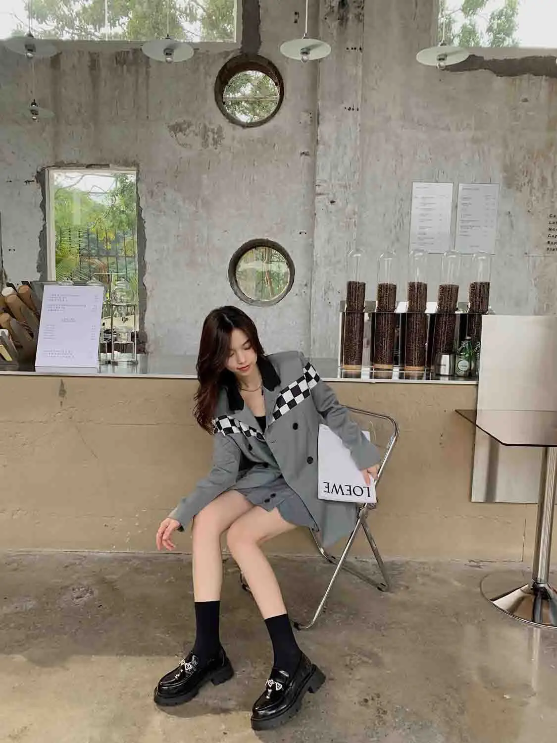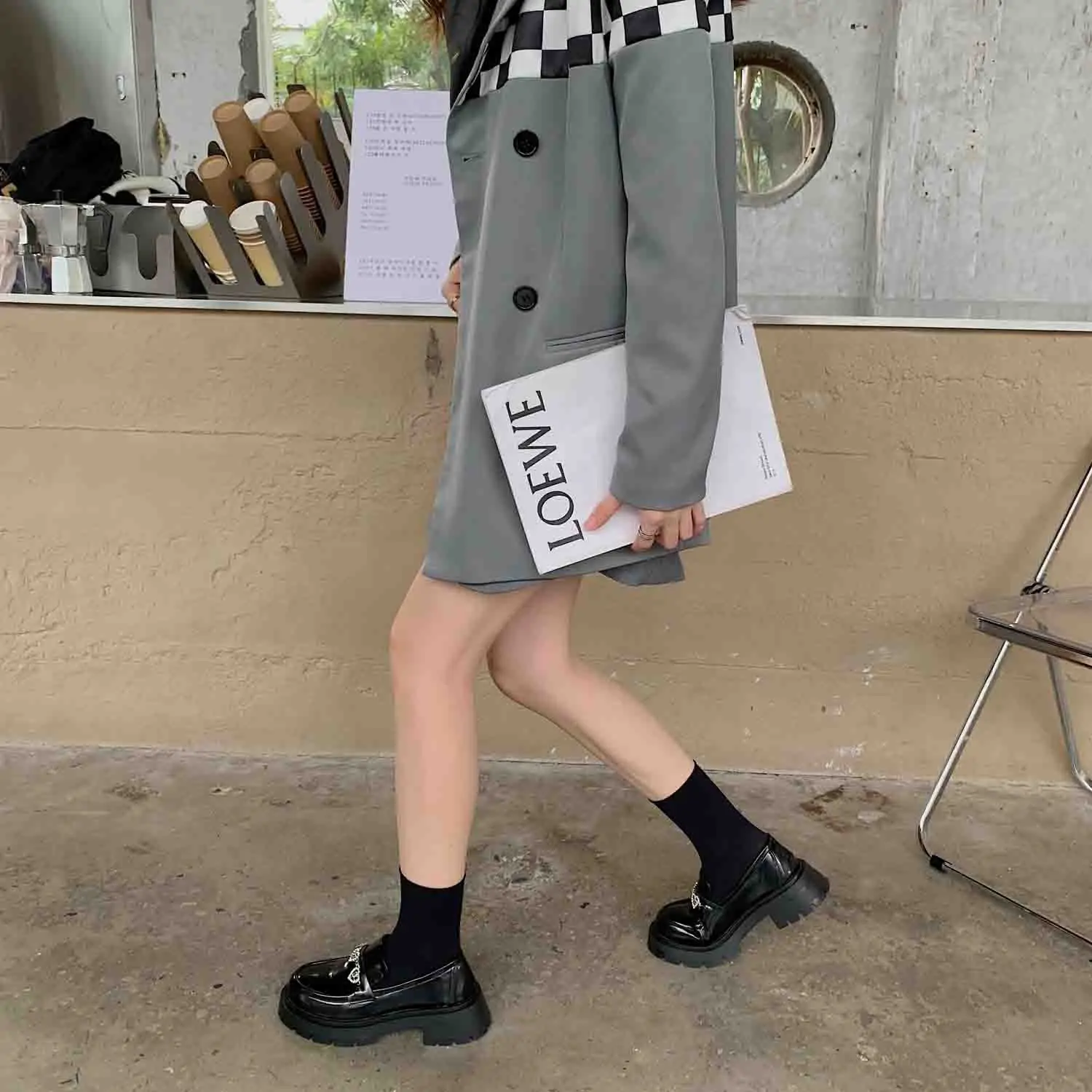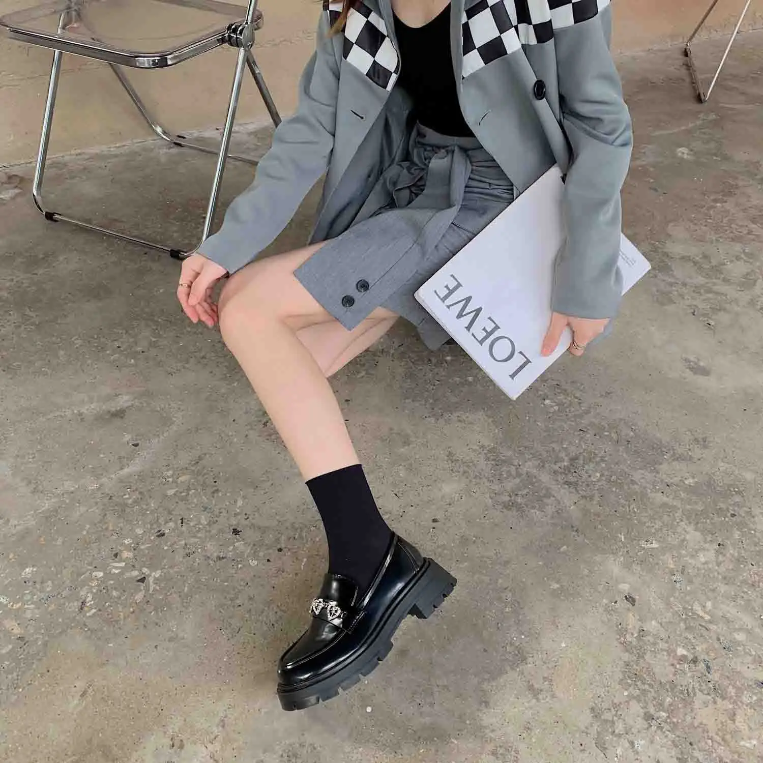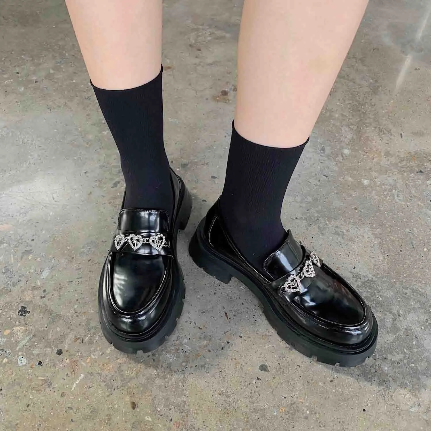 Creepers Heart crystal chain loafers woman patent leather oxford flats platform shoes thick soled small leather shoes women 2021
