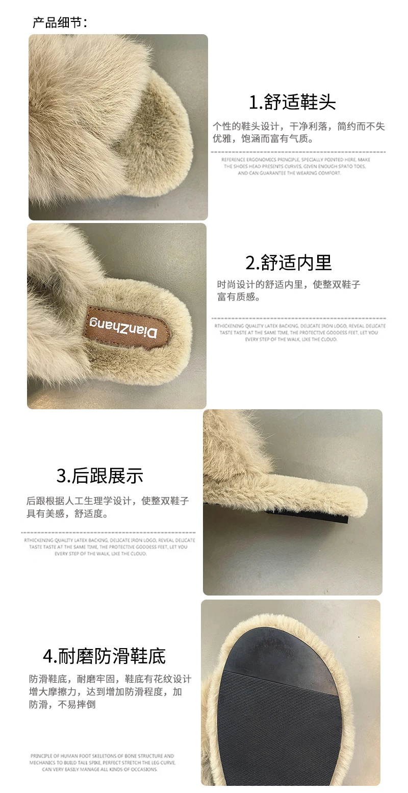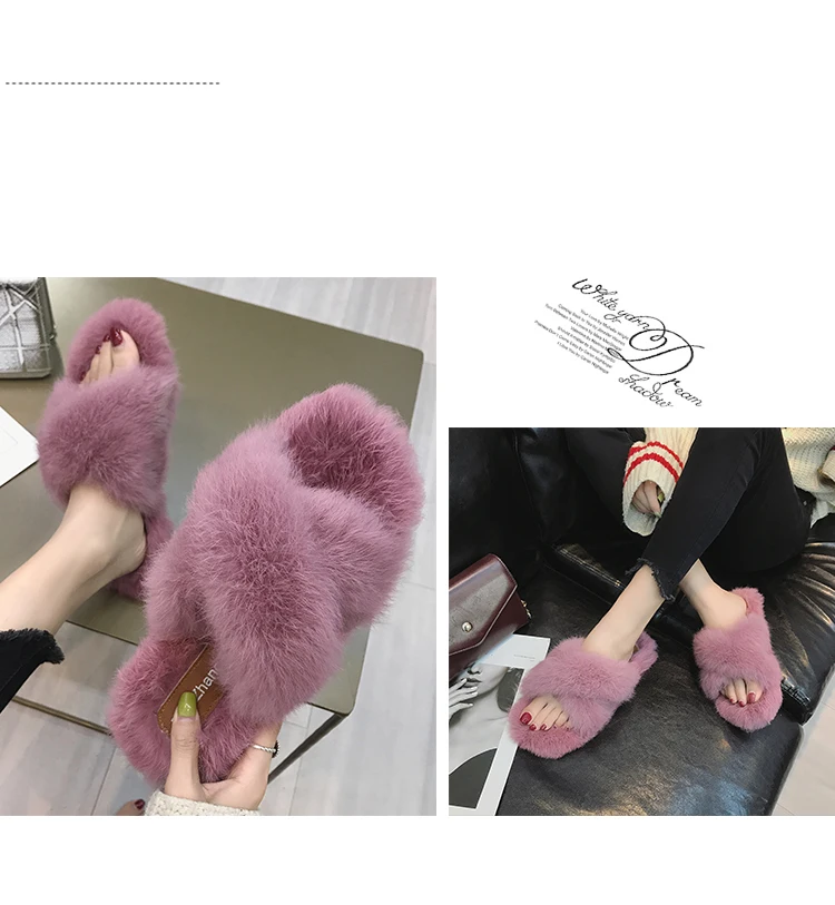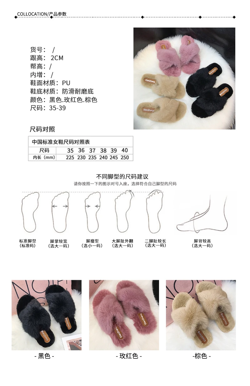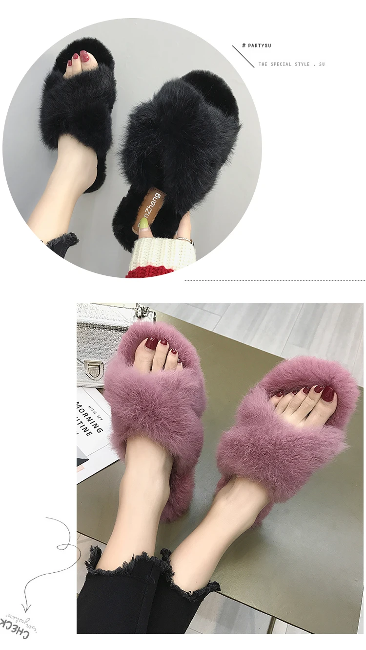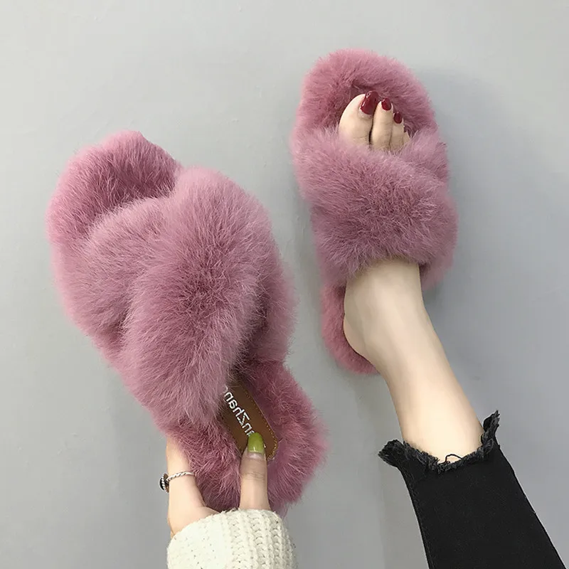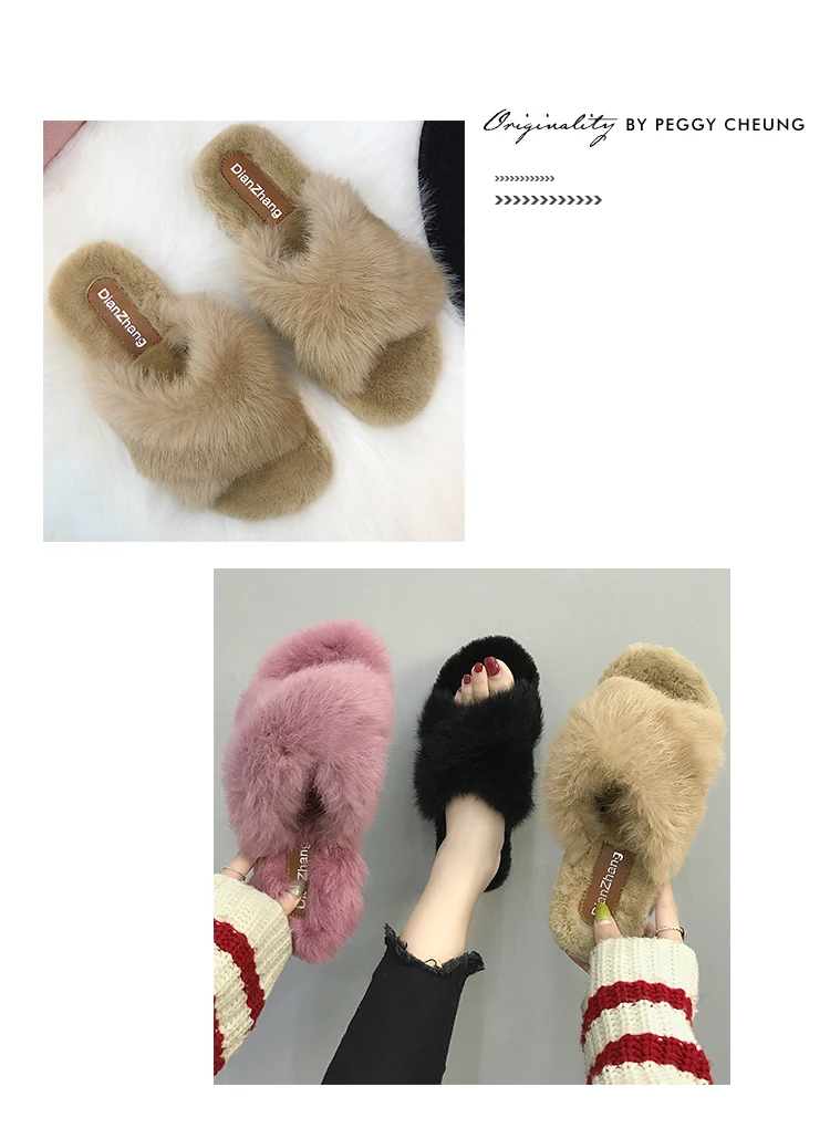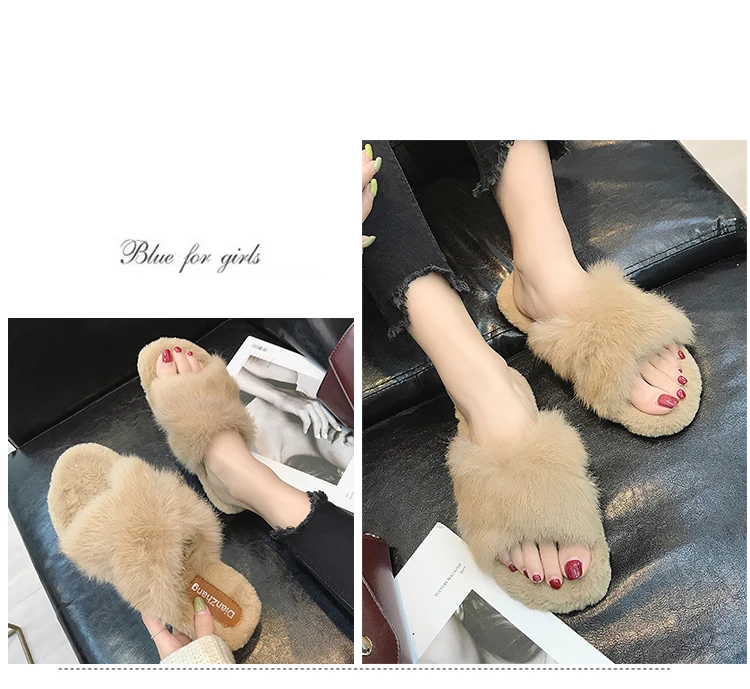 A Luxury Brand Women Fluffy Fur Slides Winter flat Heels Slippers