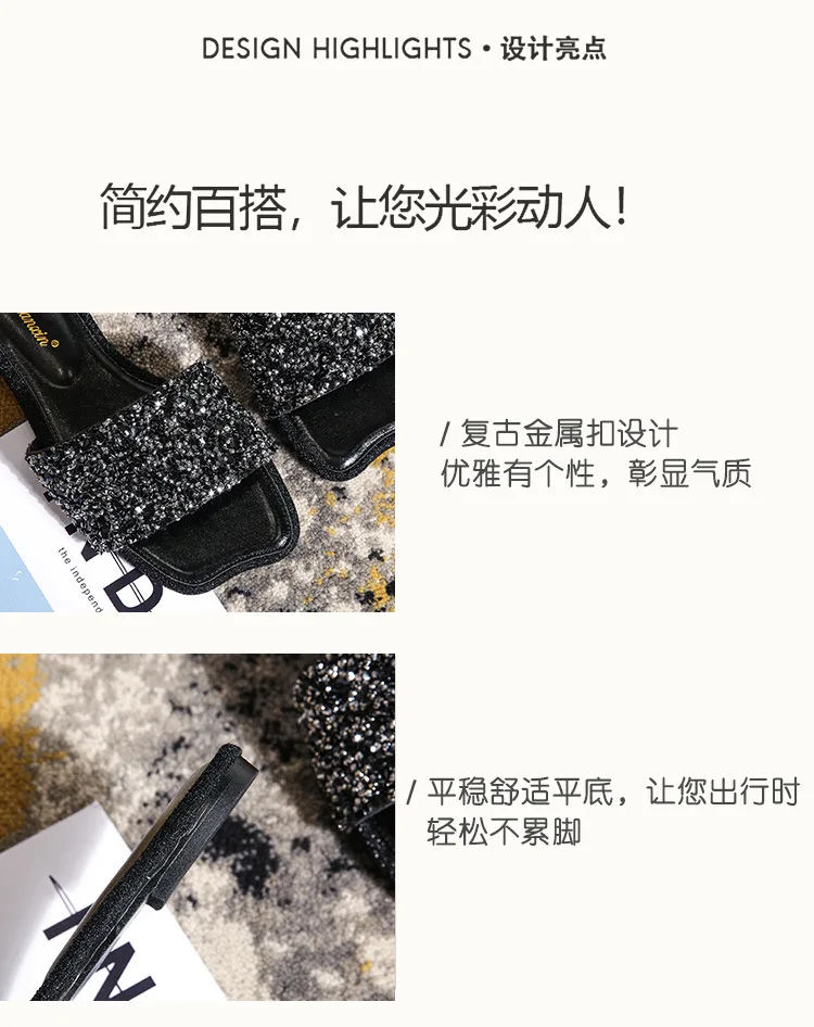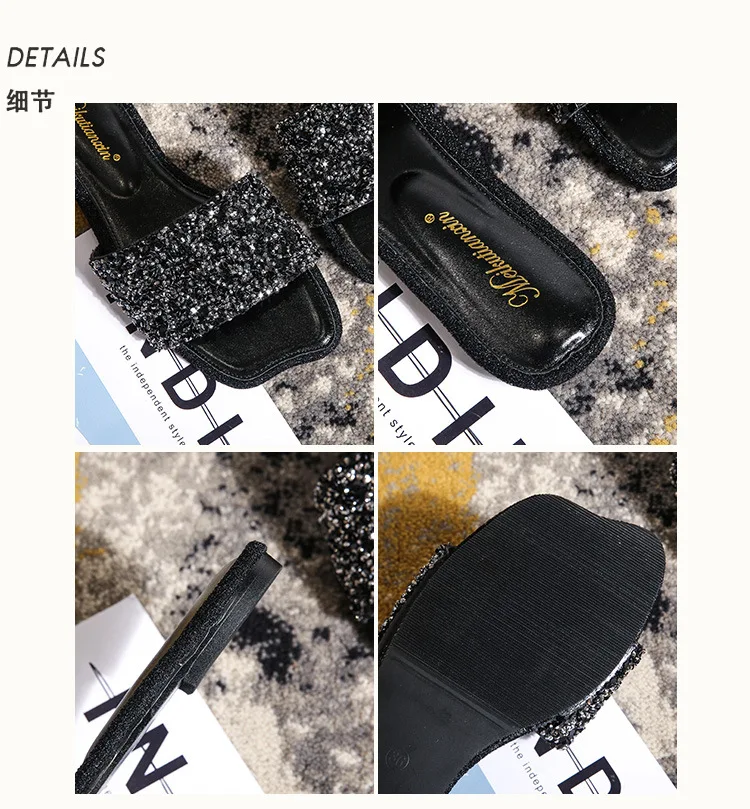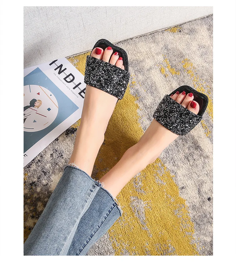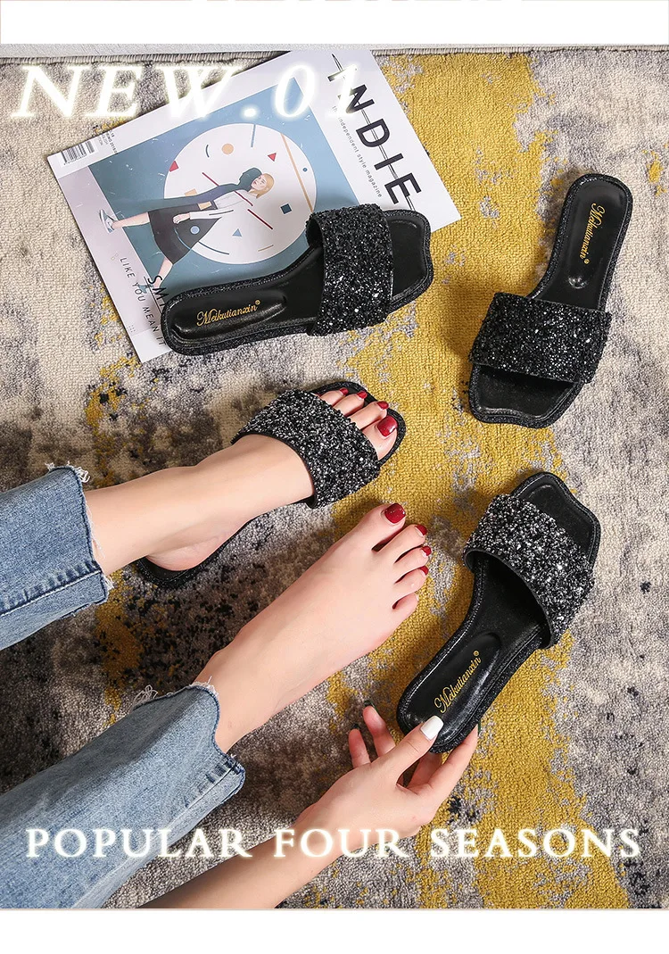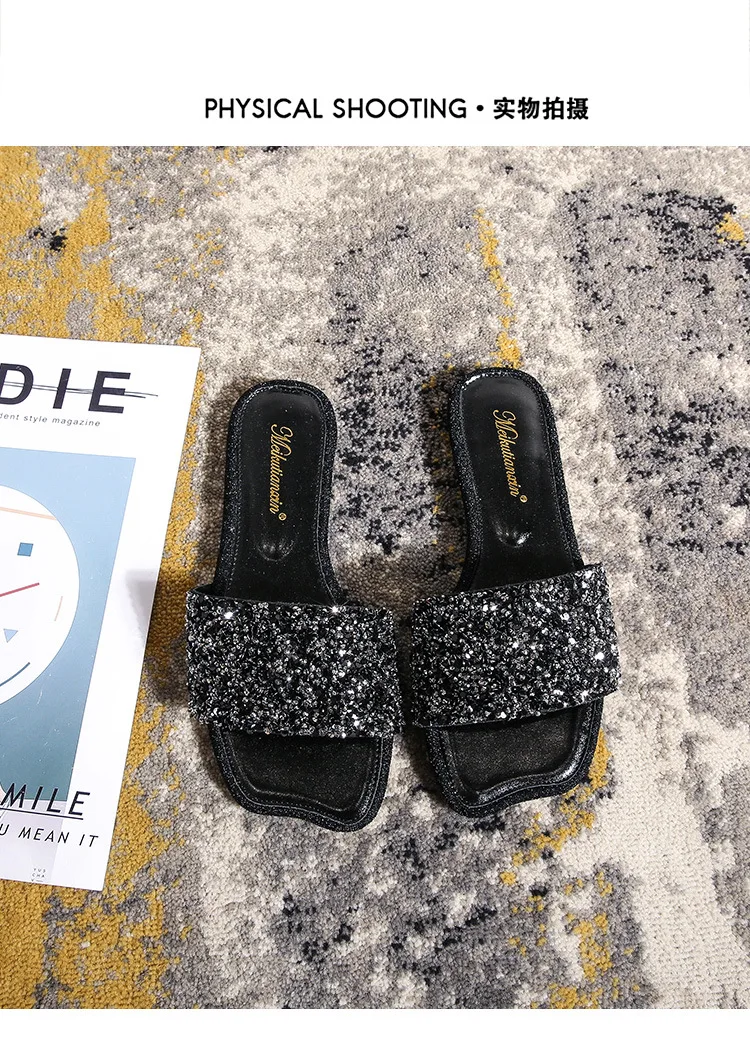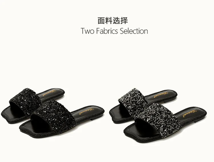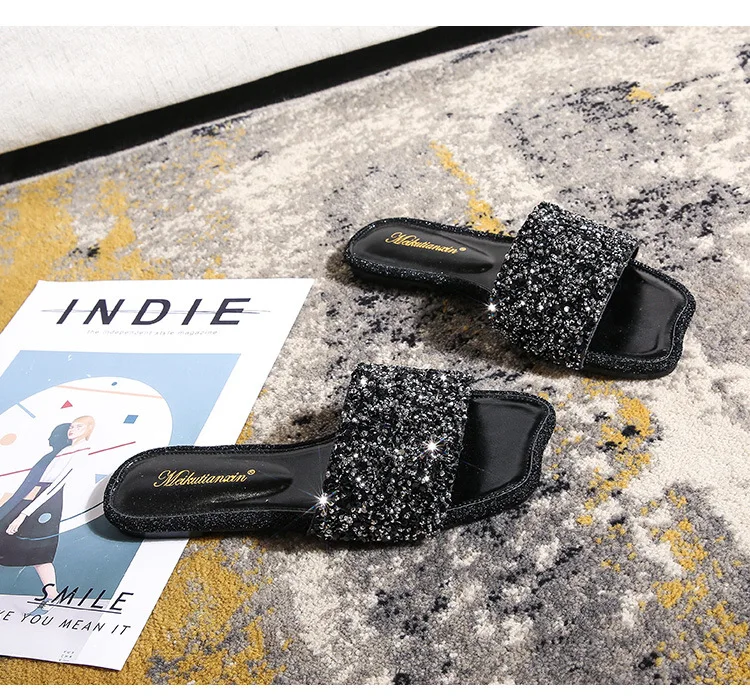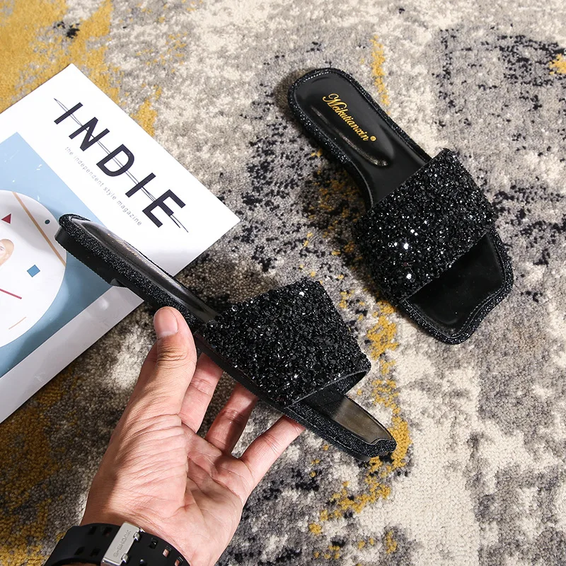 crystal beading flat slippers women strange open toe flip flops bling bling glitter beach sandalias mujer mules big size 43 44