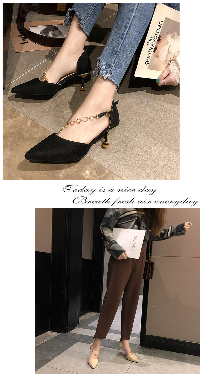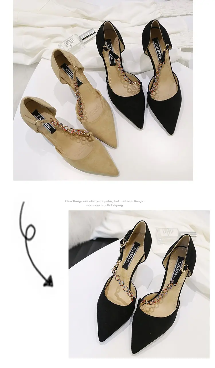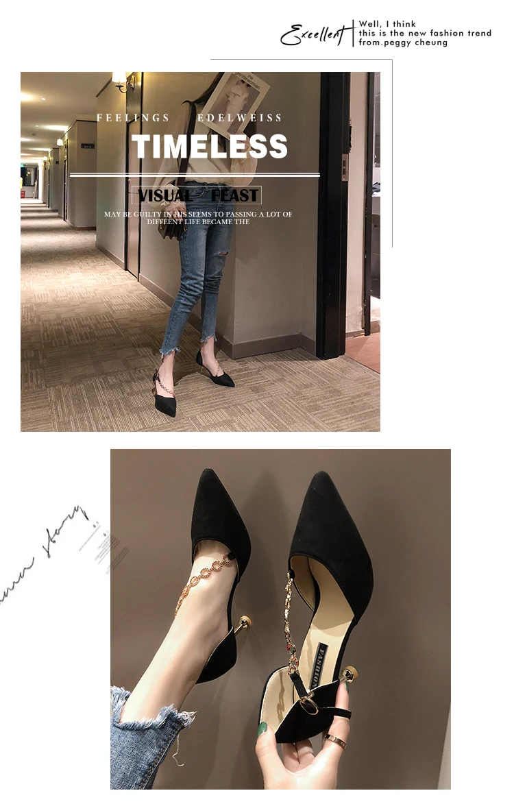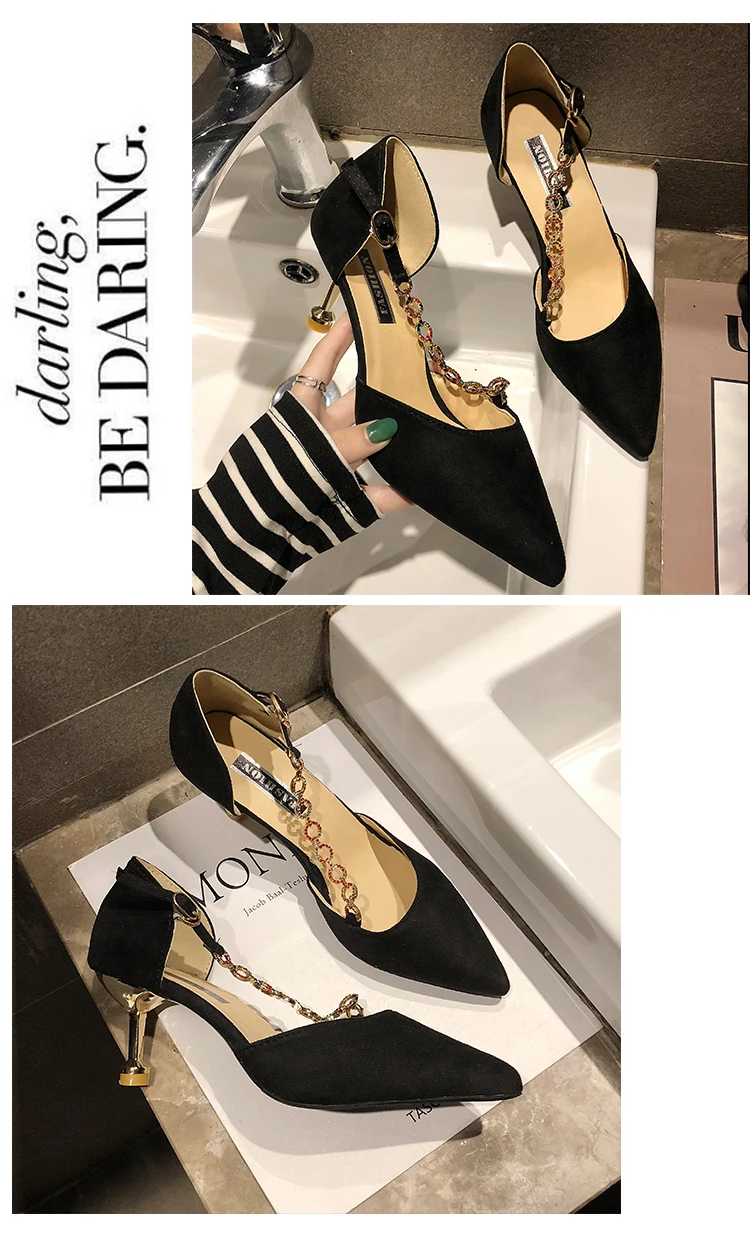2020 European Celebrity Design Women pointed Toe Woman Sexy Chain Pumps