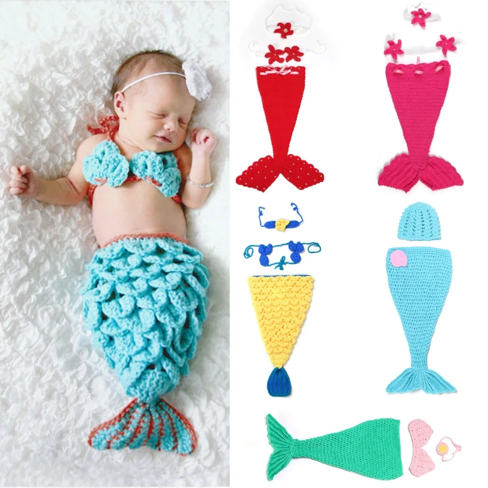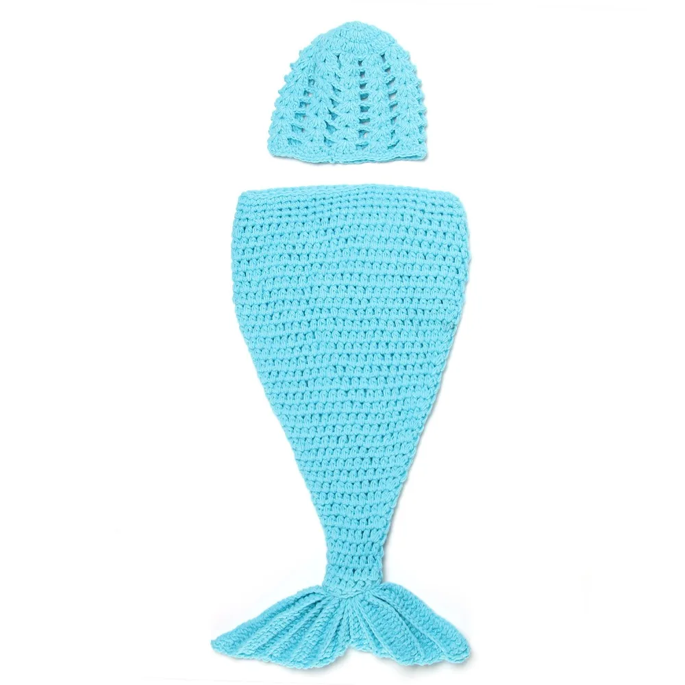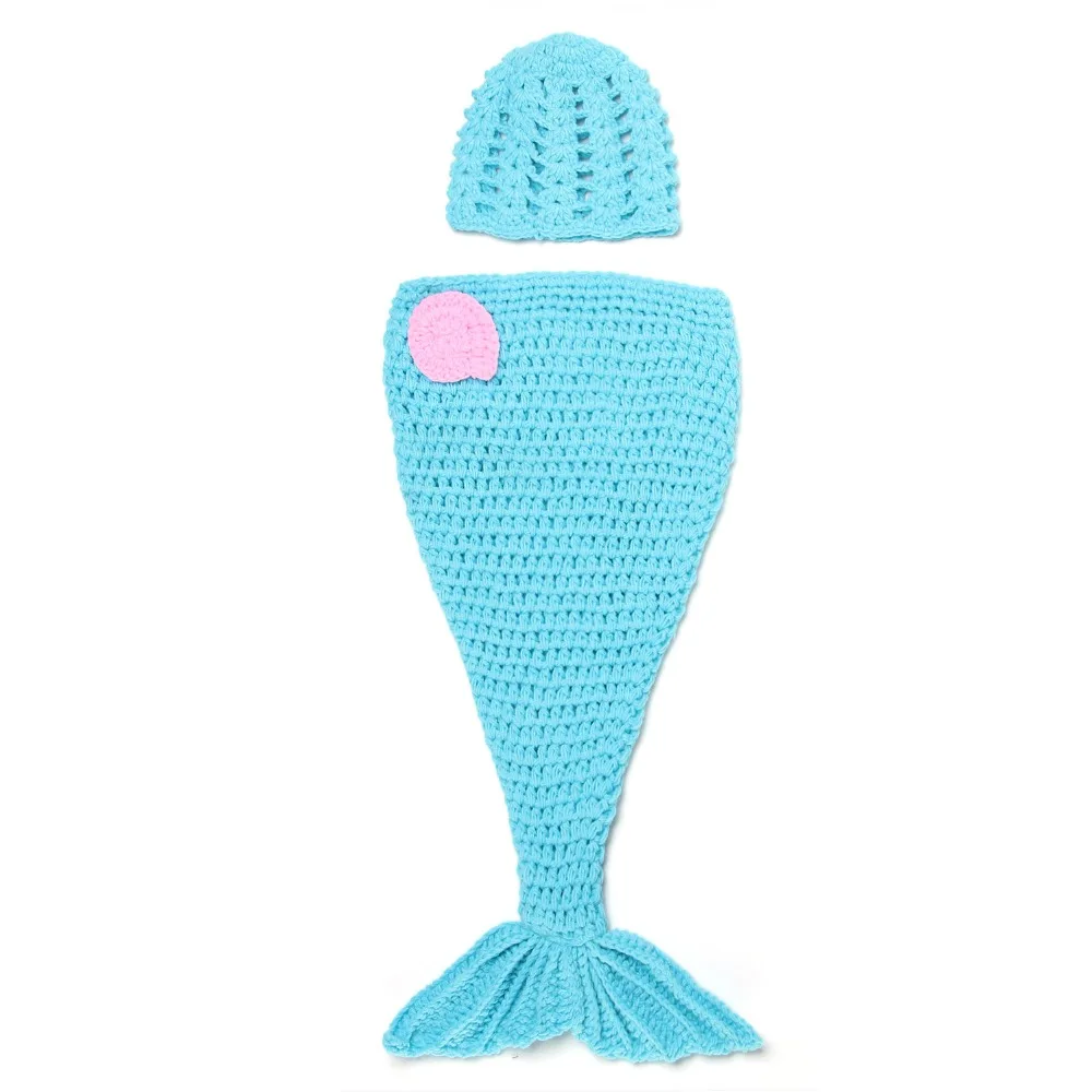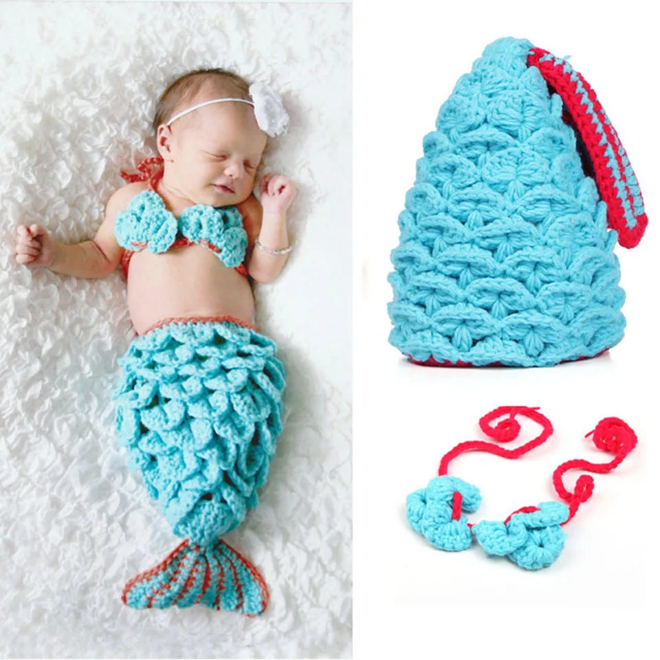 Cute Baby Girl Clothes Mermaid Photography Props Newborn Receiving Blankets Wool Crochet Bikini Sleeping Bag Knitting Swaddling