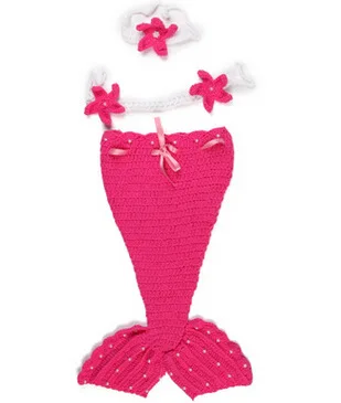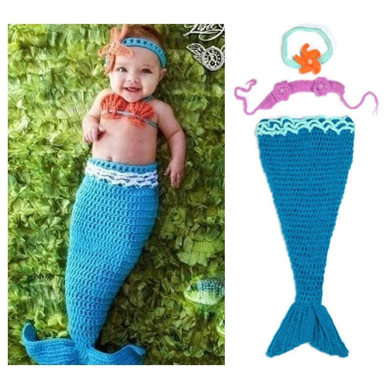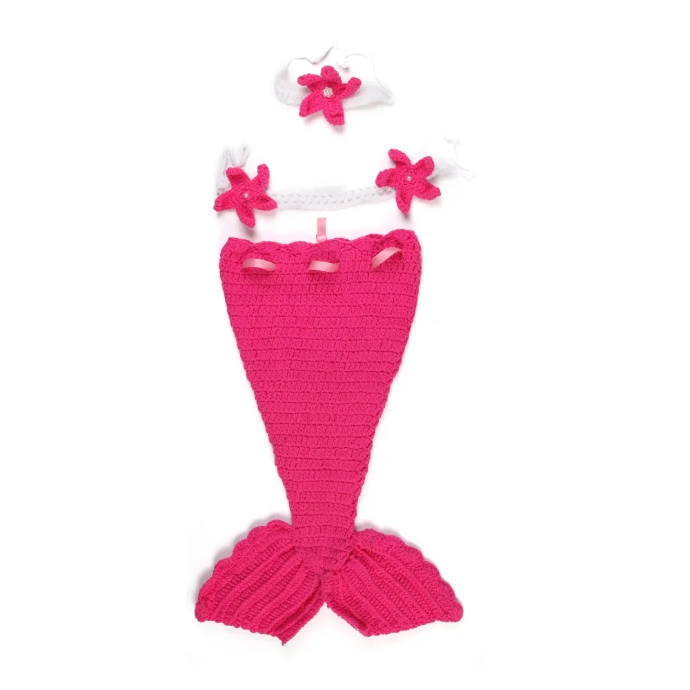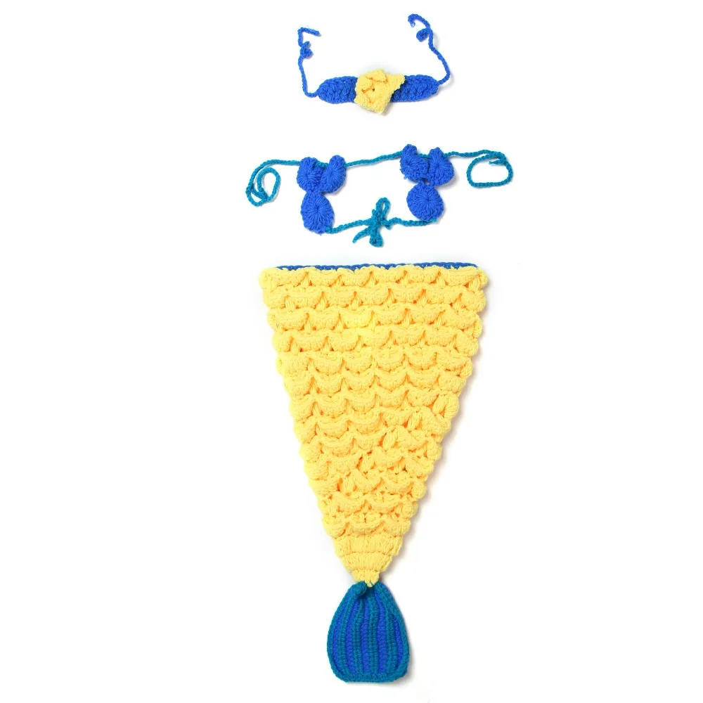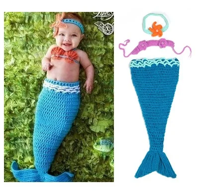 Cute Baby Girl Clothes Mermaid Photography Props Newborn Receiving Blankets Wool Crochet Bikini Sleeping Bag Knitting Swaddling