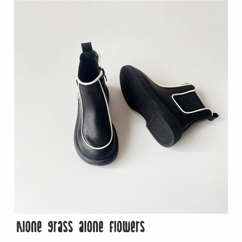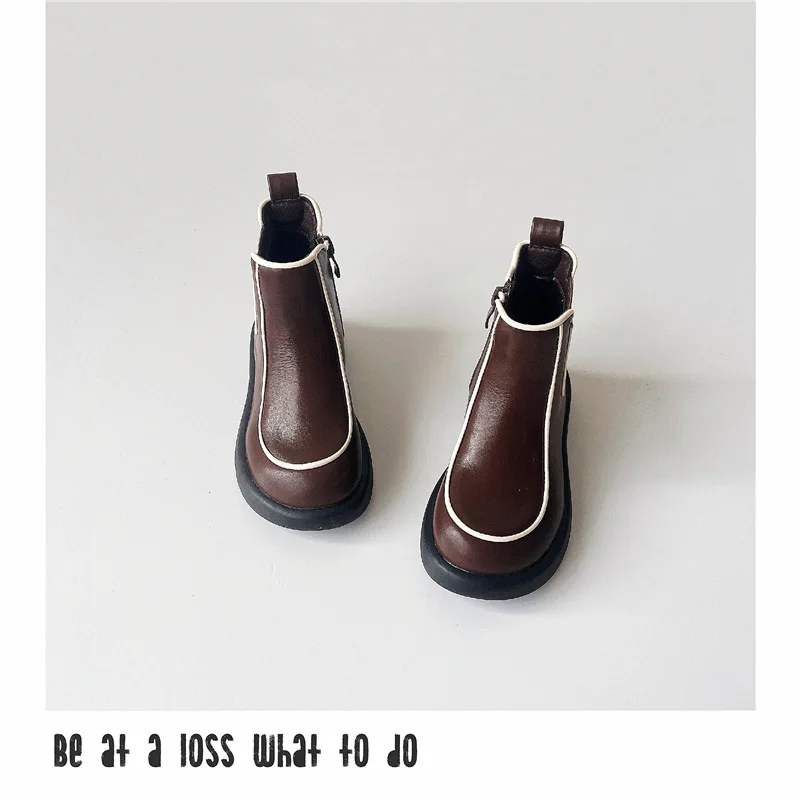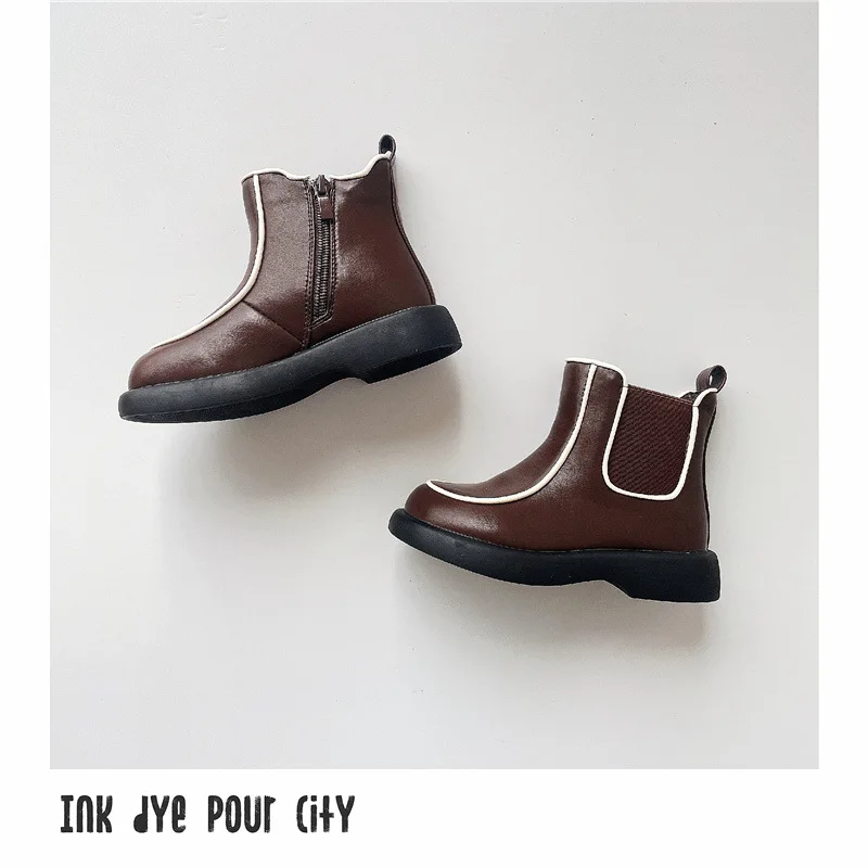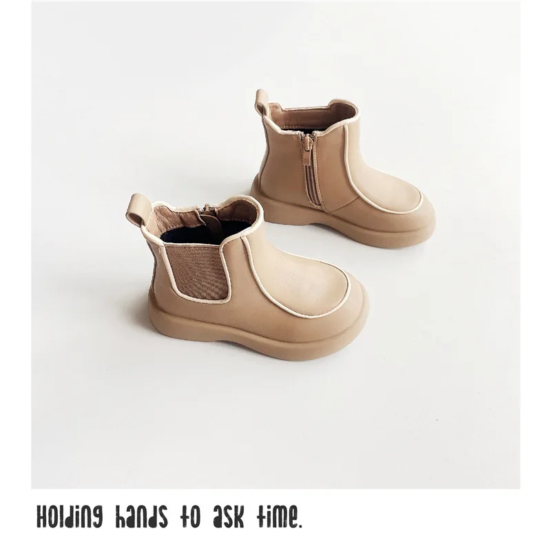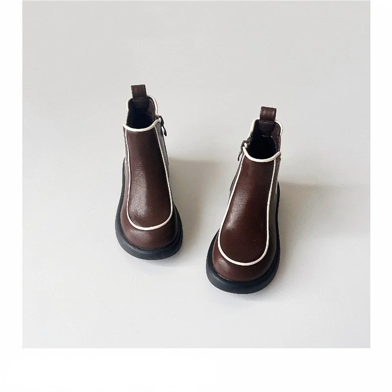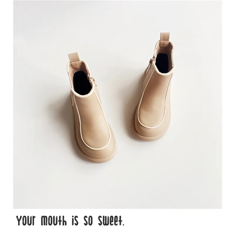 Cute Children Chelsea Boots Soft Bottom Kids Winter Shoes Comfortable Girls Short Leather Boots Side Zipper British Botas Shoes