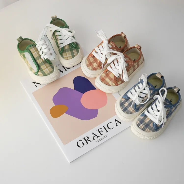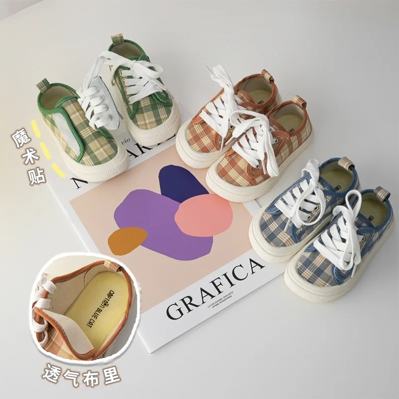 Cute Ins Style Children Canvas Shoes Hook Loop Kids Sneakers Low Top Boys Cloth Board Shoes Candy Color Girls Casual Flat Shoes