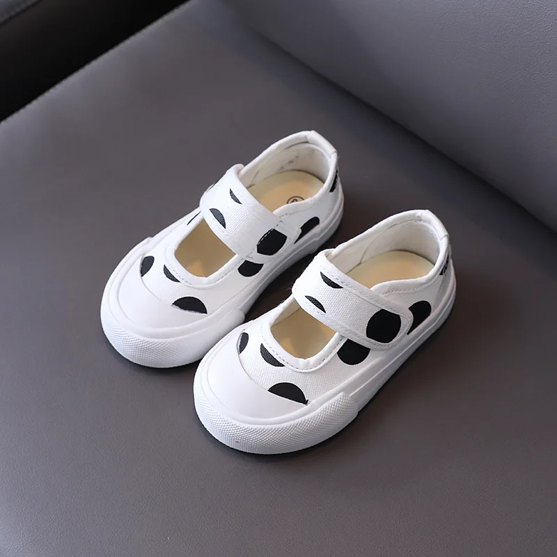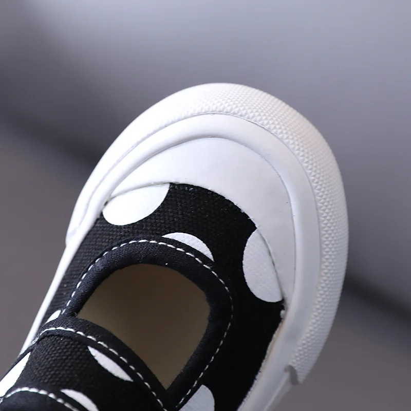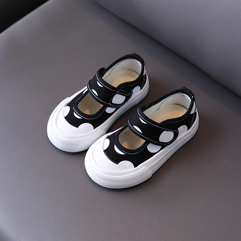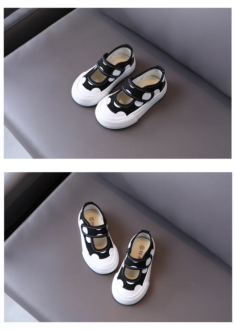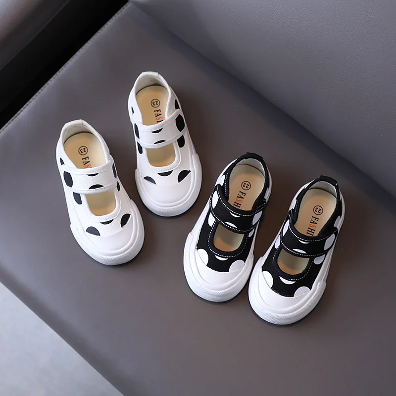 Cute Korean Children Canvas Shoes Girls Dots Casual Sneakers Anti-kick Kids Shoes Soft Sole Baby Loafers Black White Moccasins