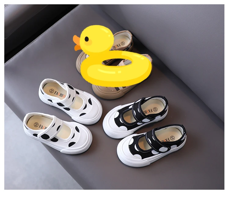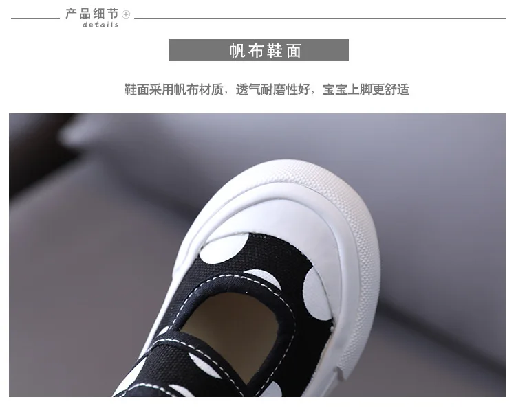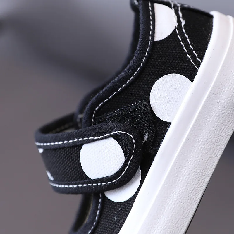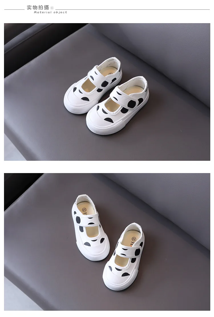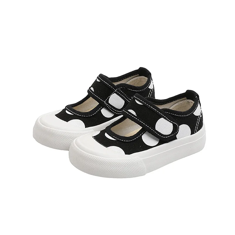 Cute Korean Children Canvas Shoes Girls Dots Casual Sneakers Anti-kick Kids Shoes Soft Sole Baby Loafers Black White Moccasins