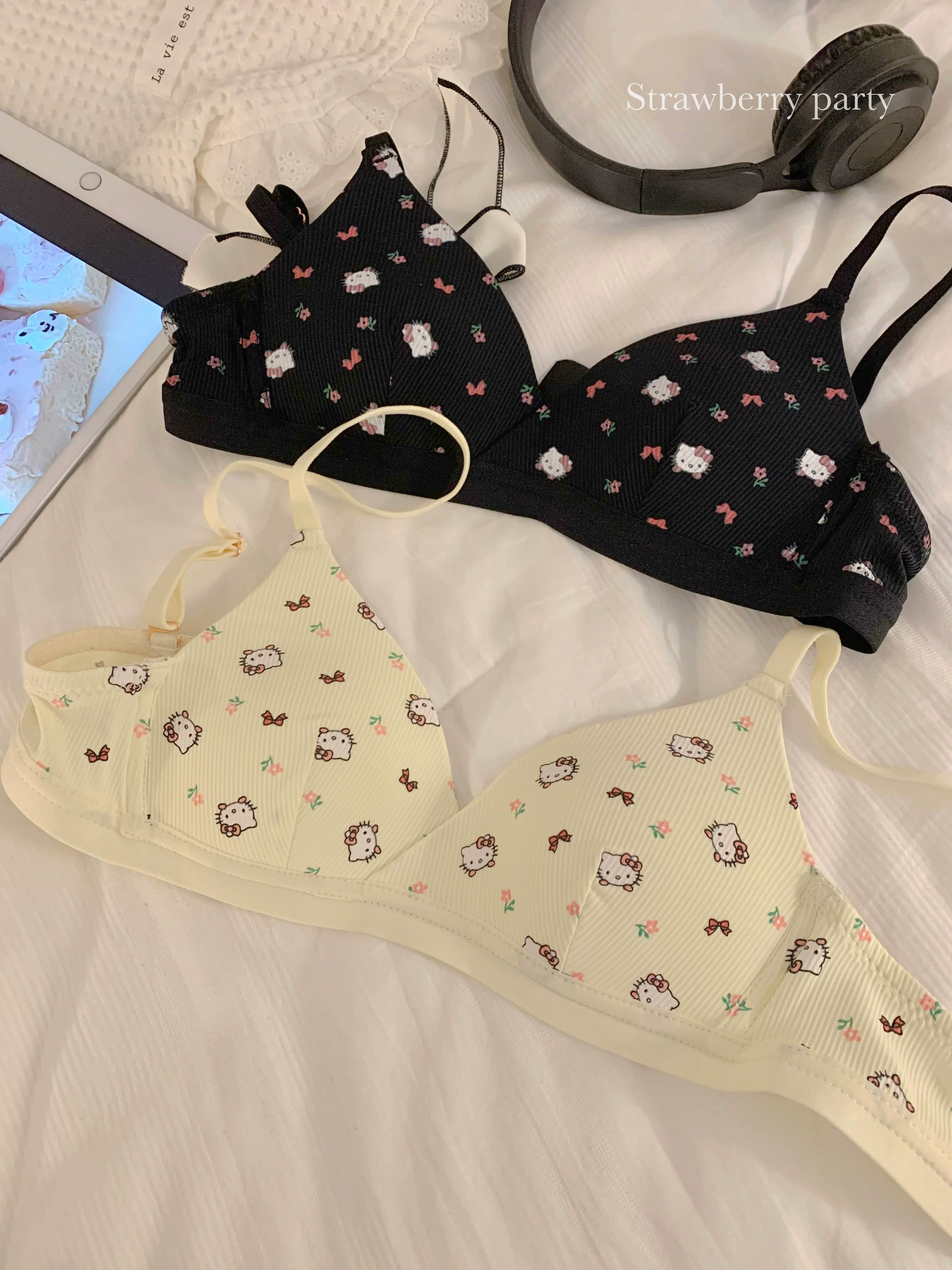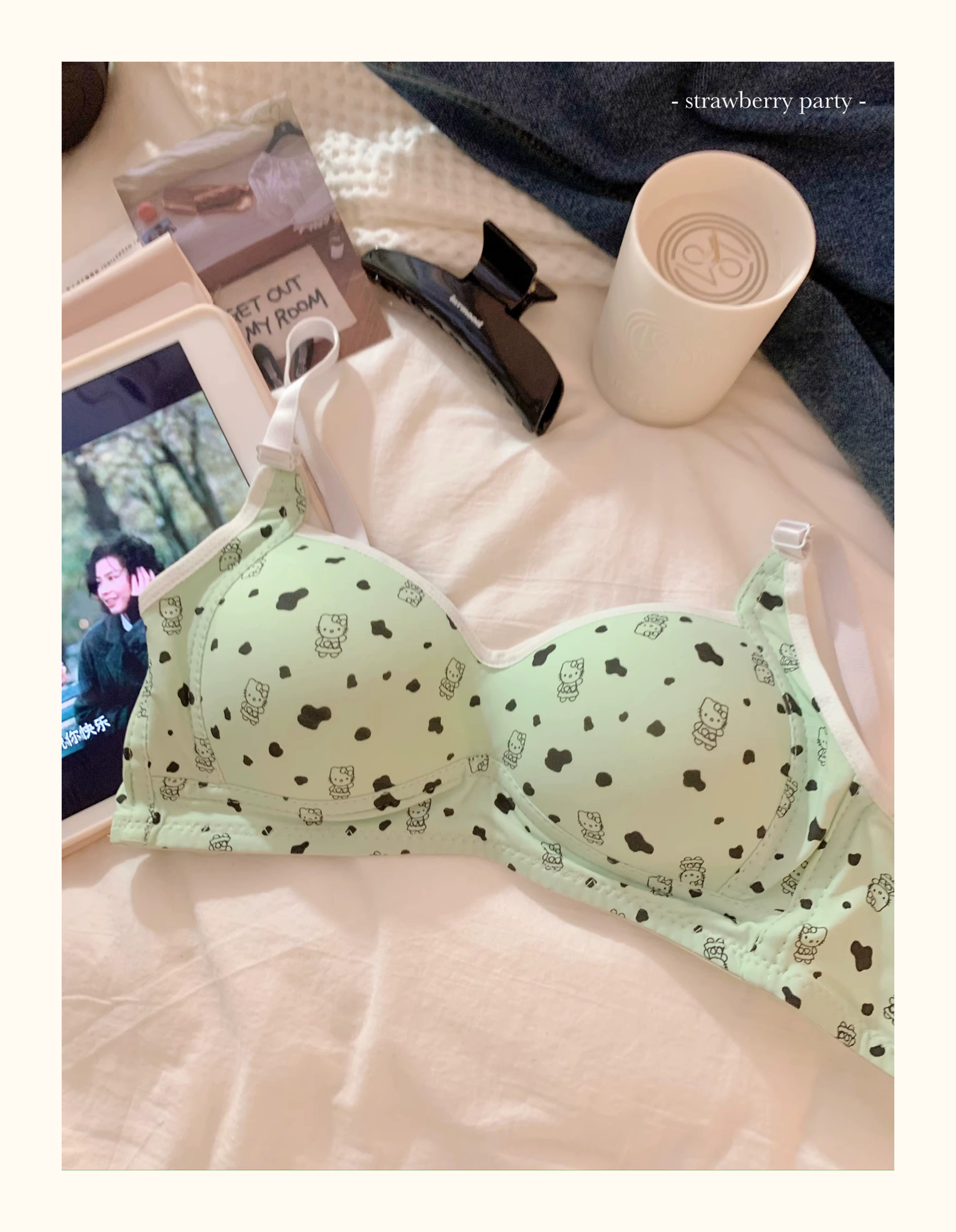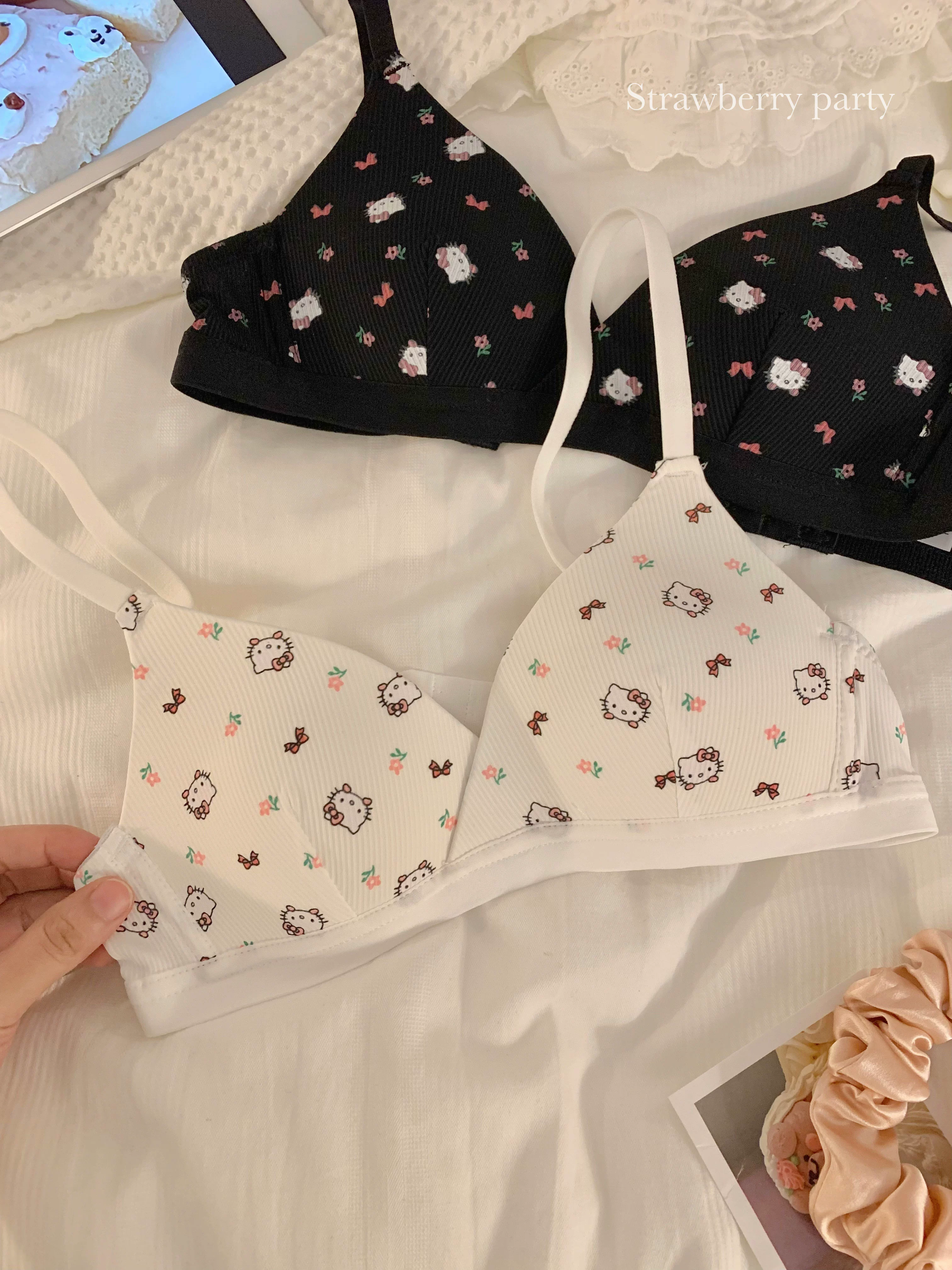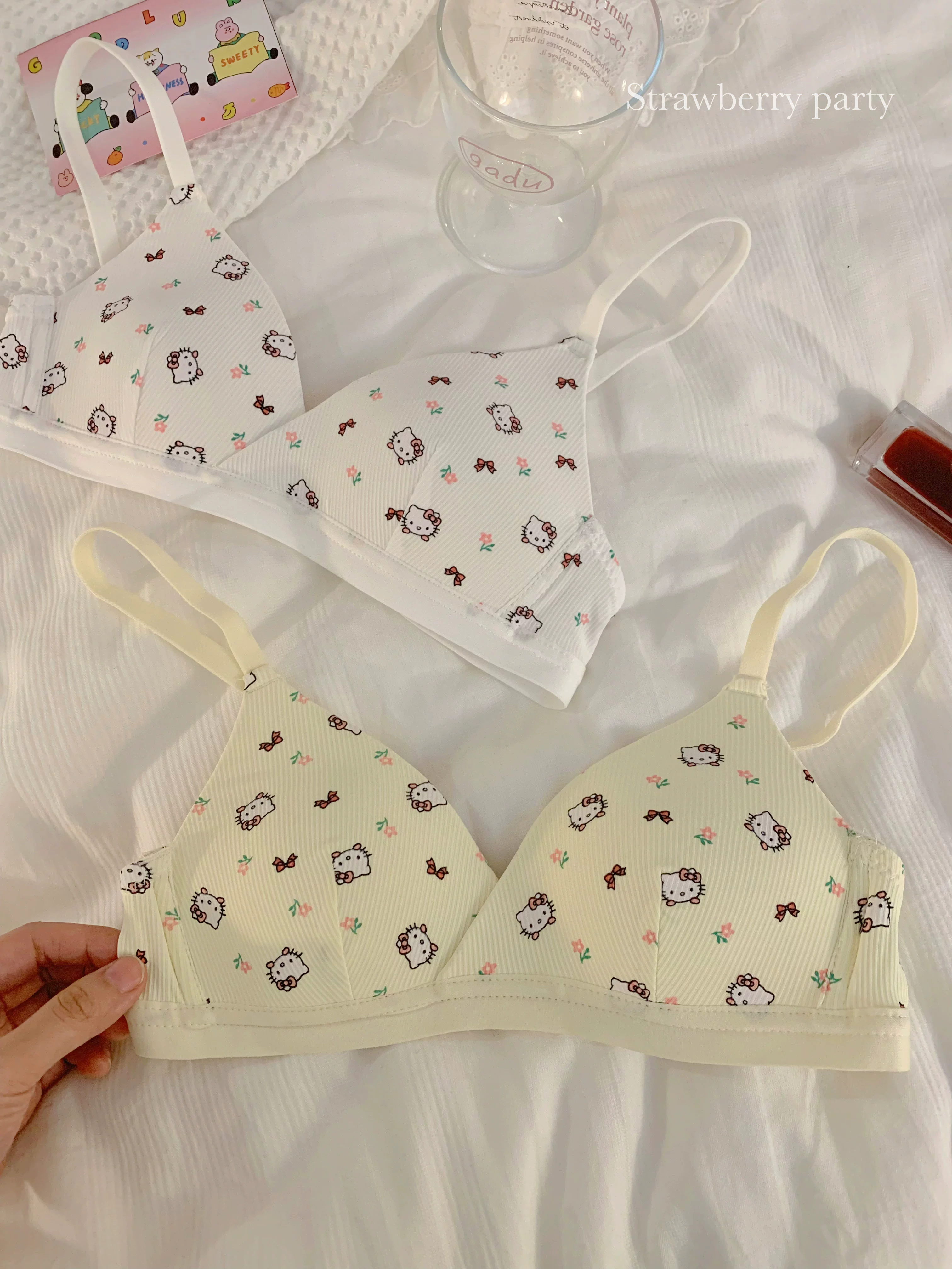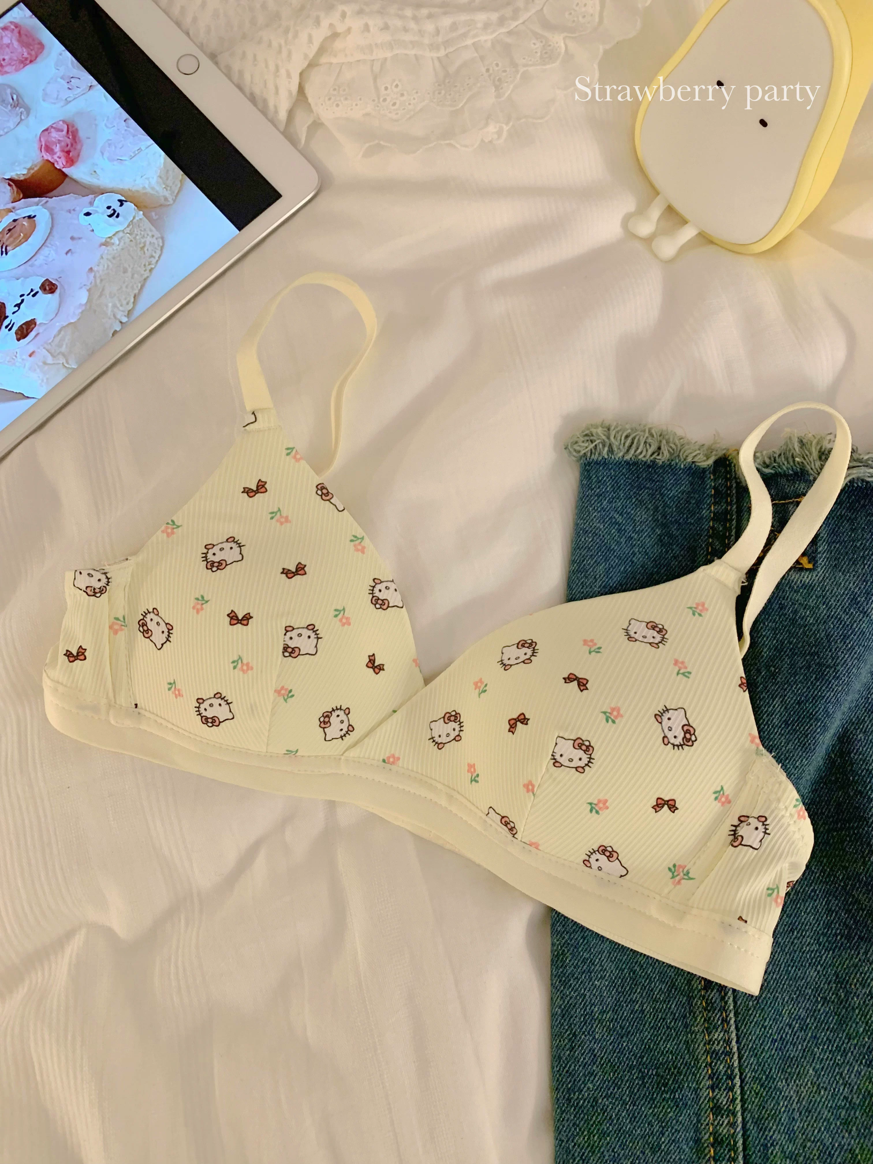 Cute little milk cat printing girls underwear female gathered without steel ring bra thin gathered comfortable lingerie