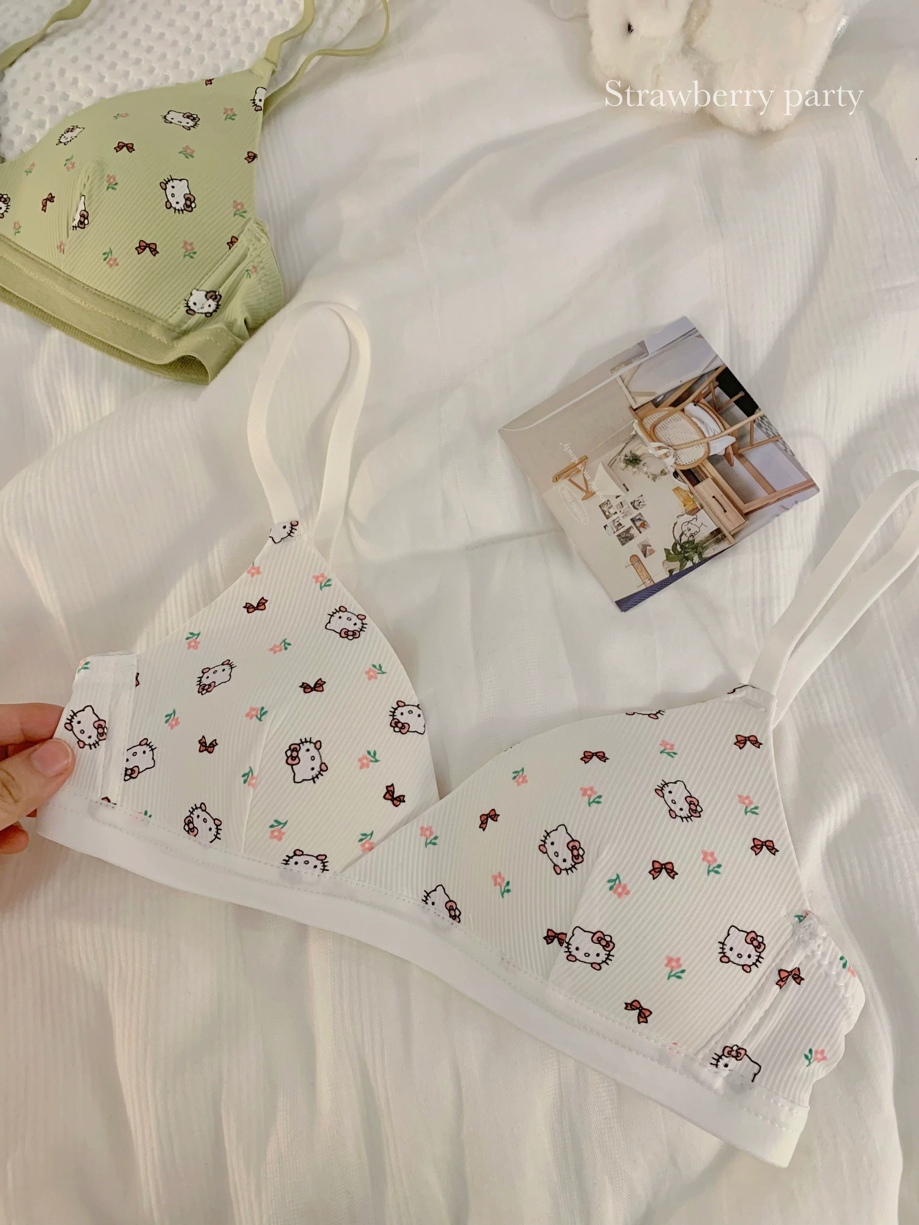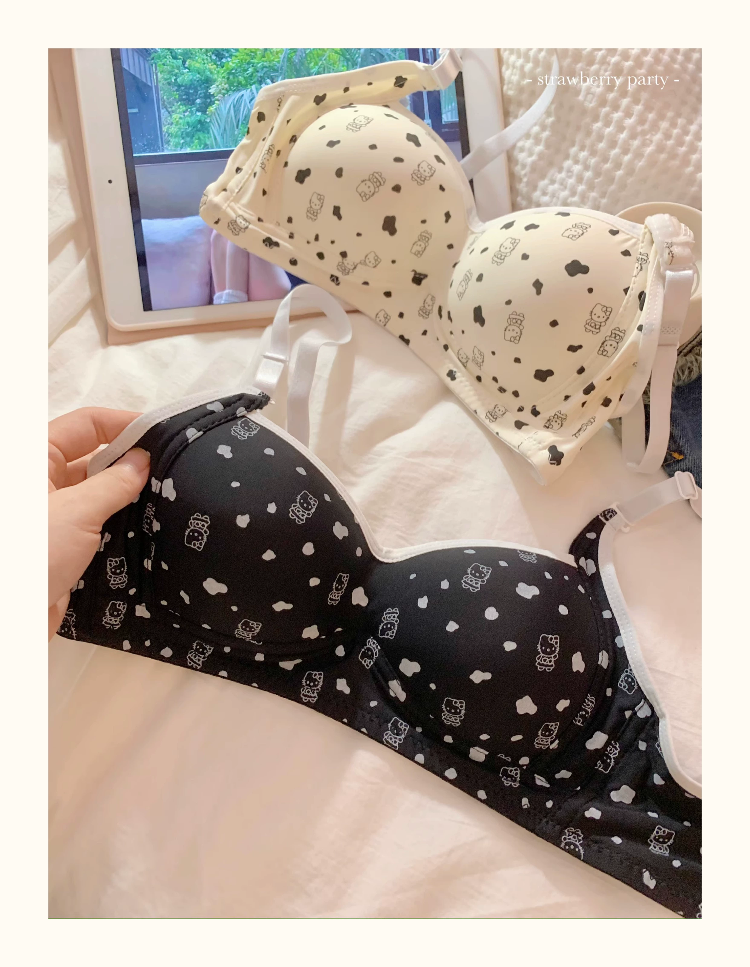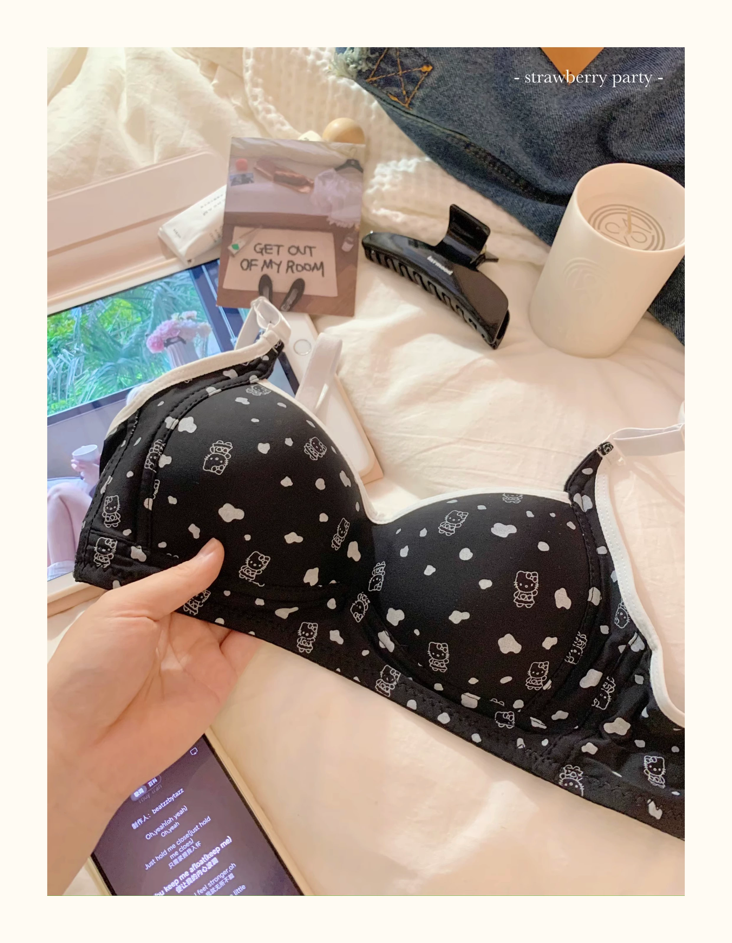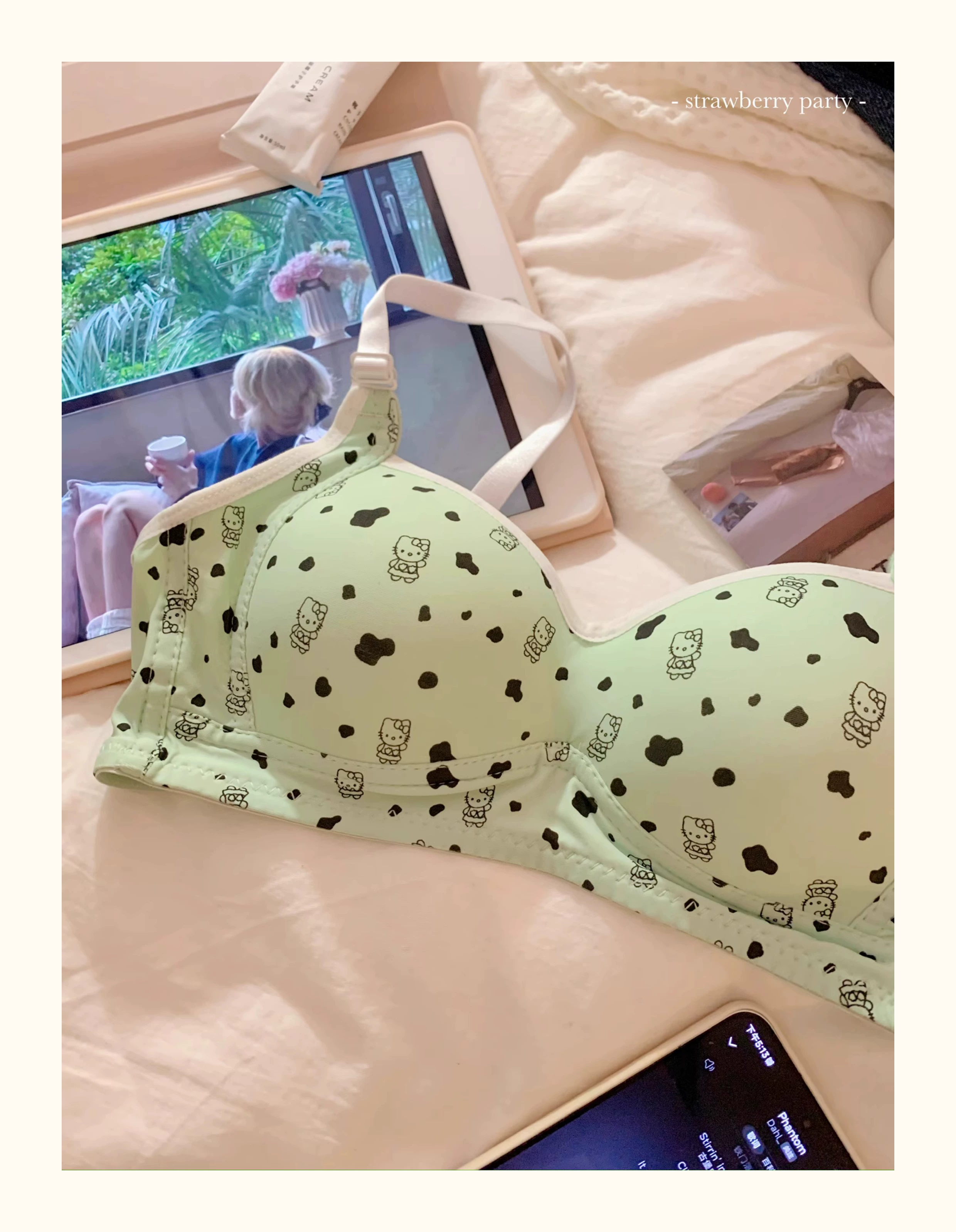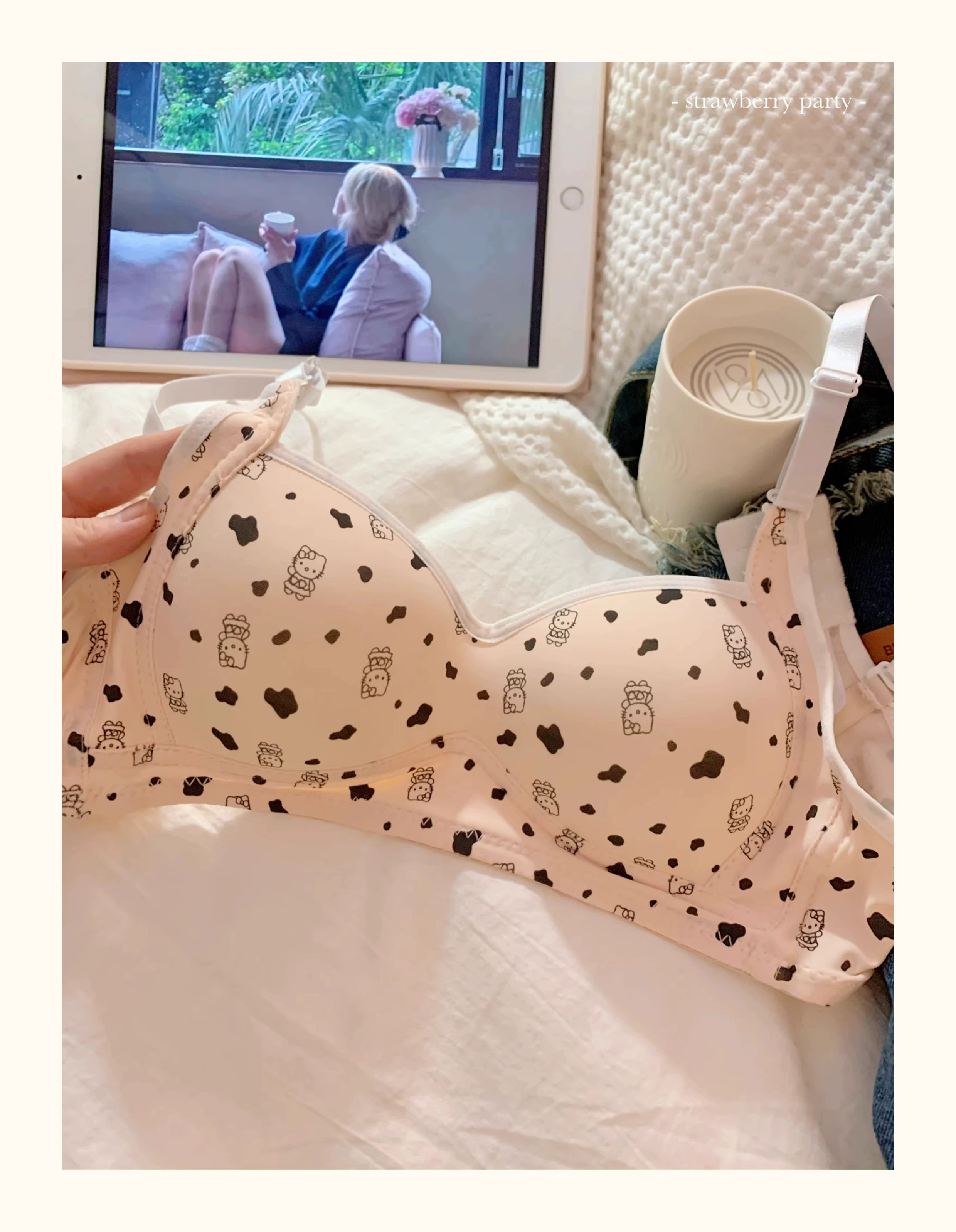 Cute little milk cat printing girls underwear female gathered without steel ring bra thin gathered comfortable lingerie