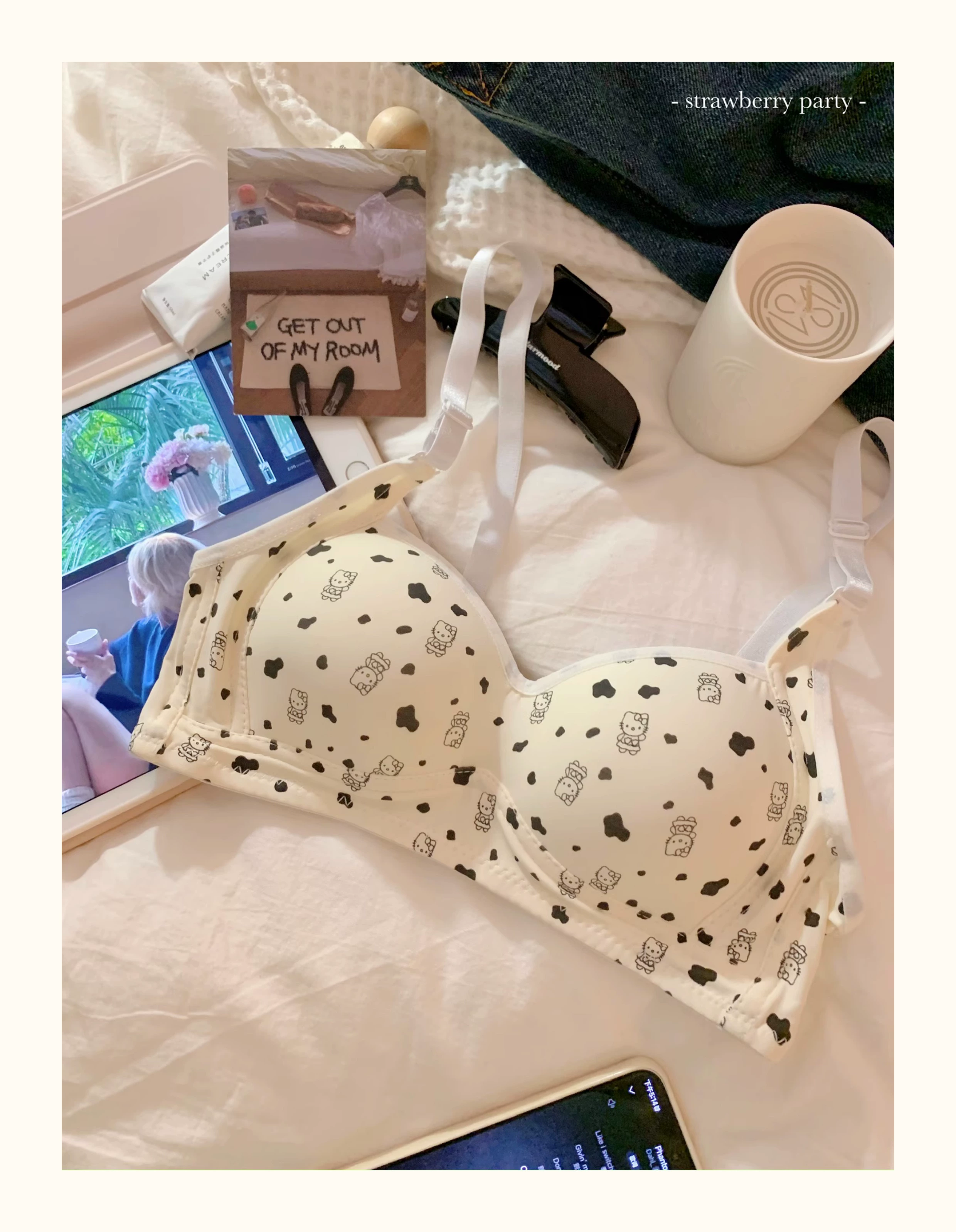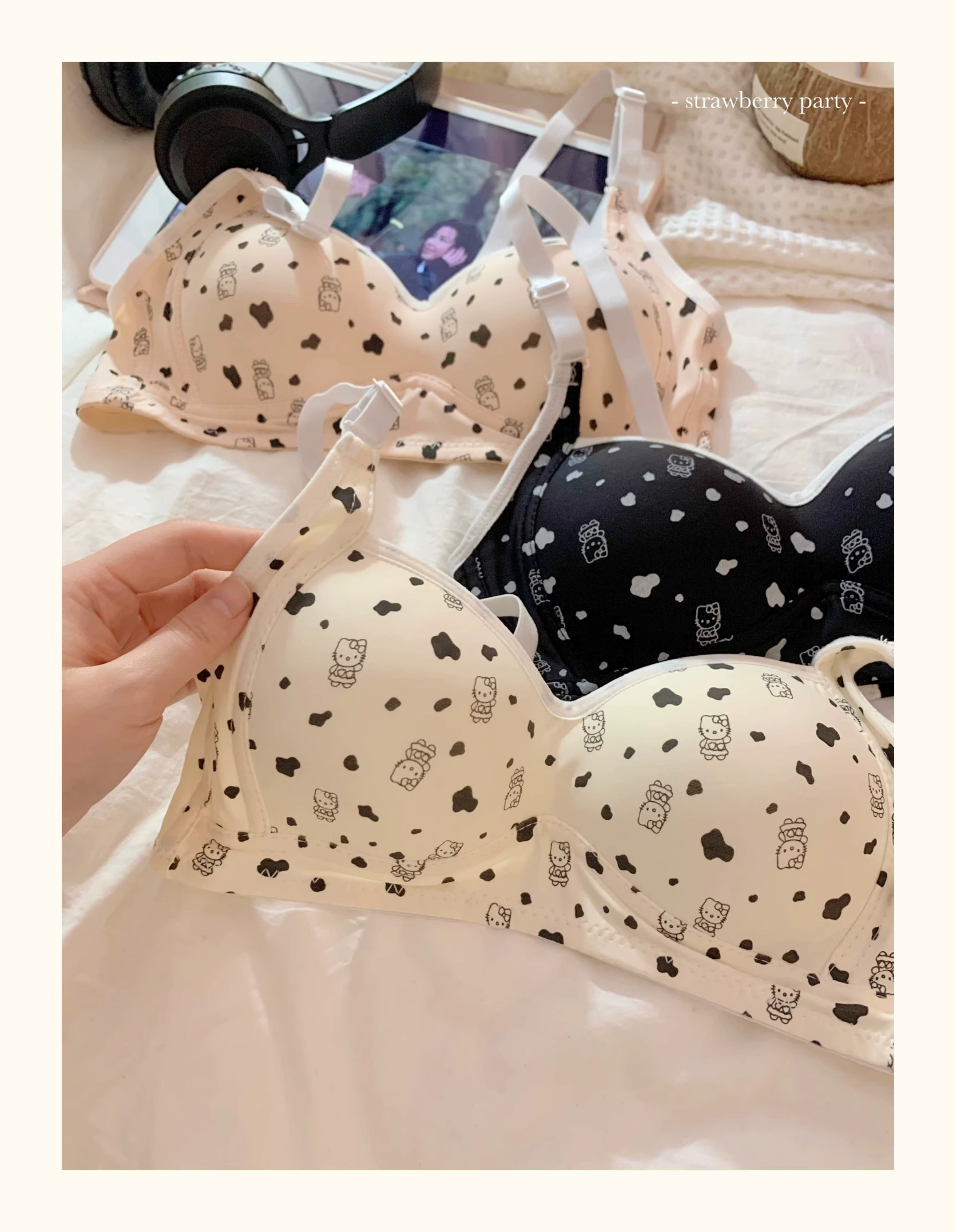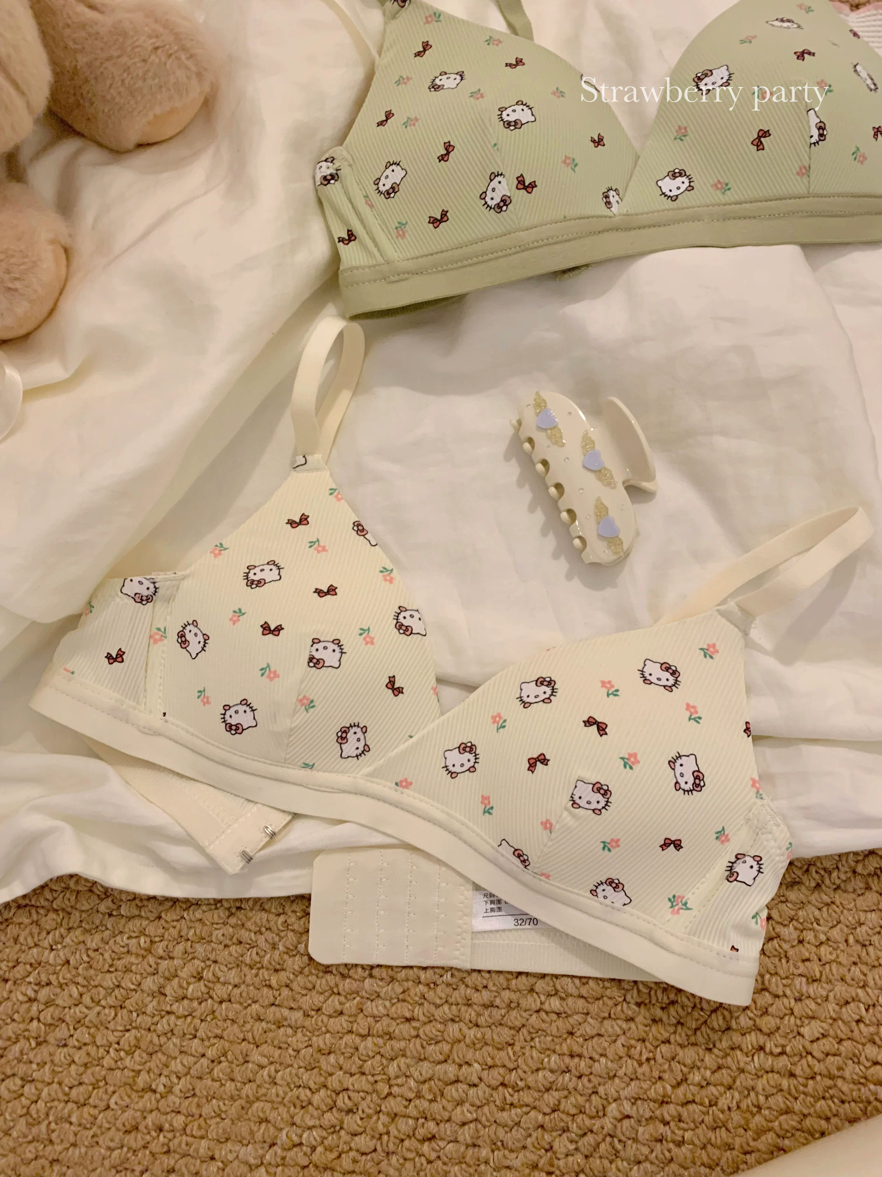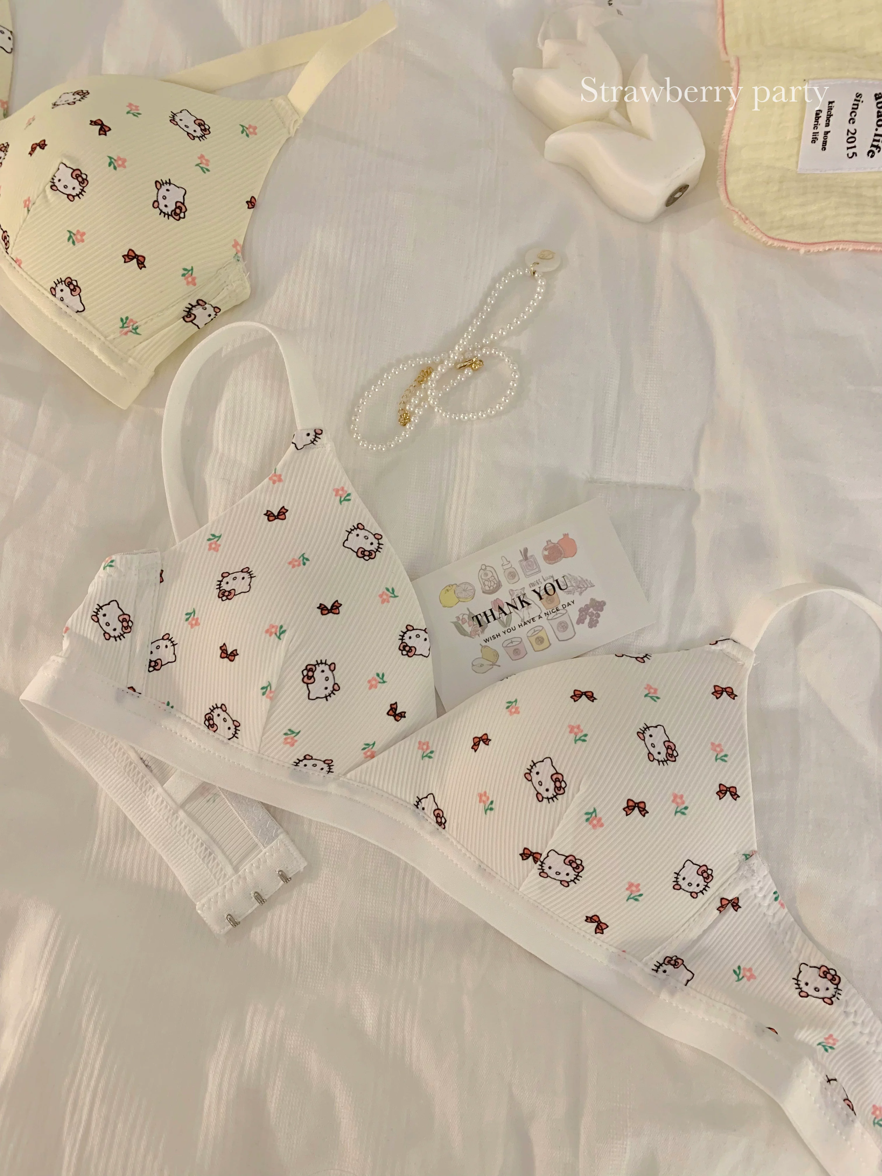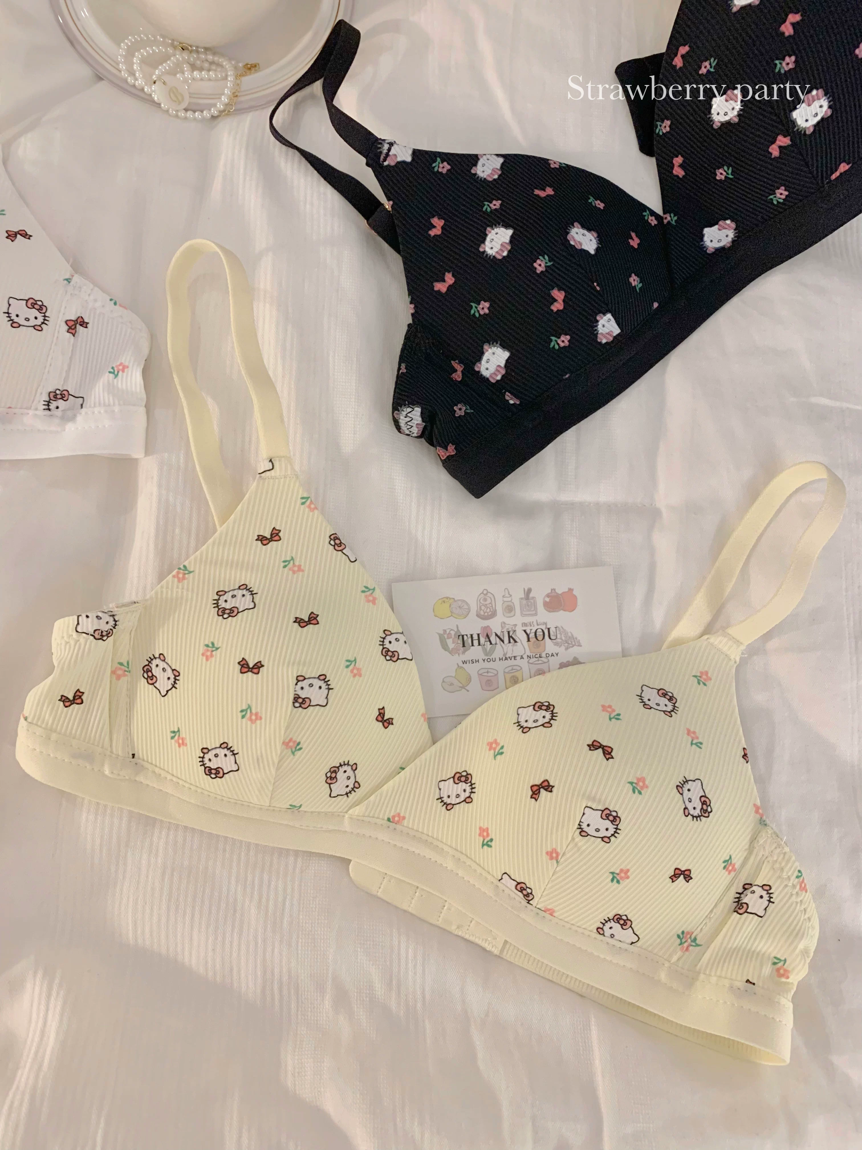 Cute little milk cat printing girls underwear female gathered without steel ring bra thin gathered comfortable lingerie