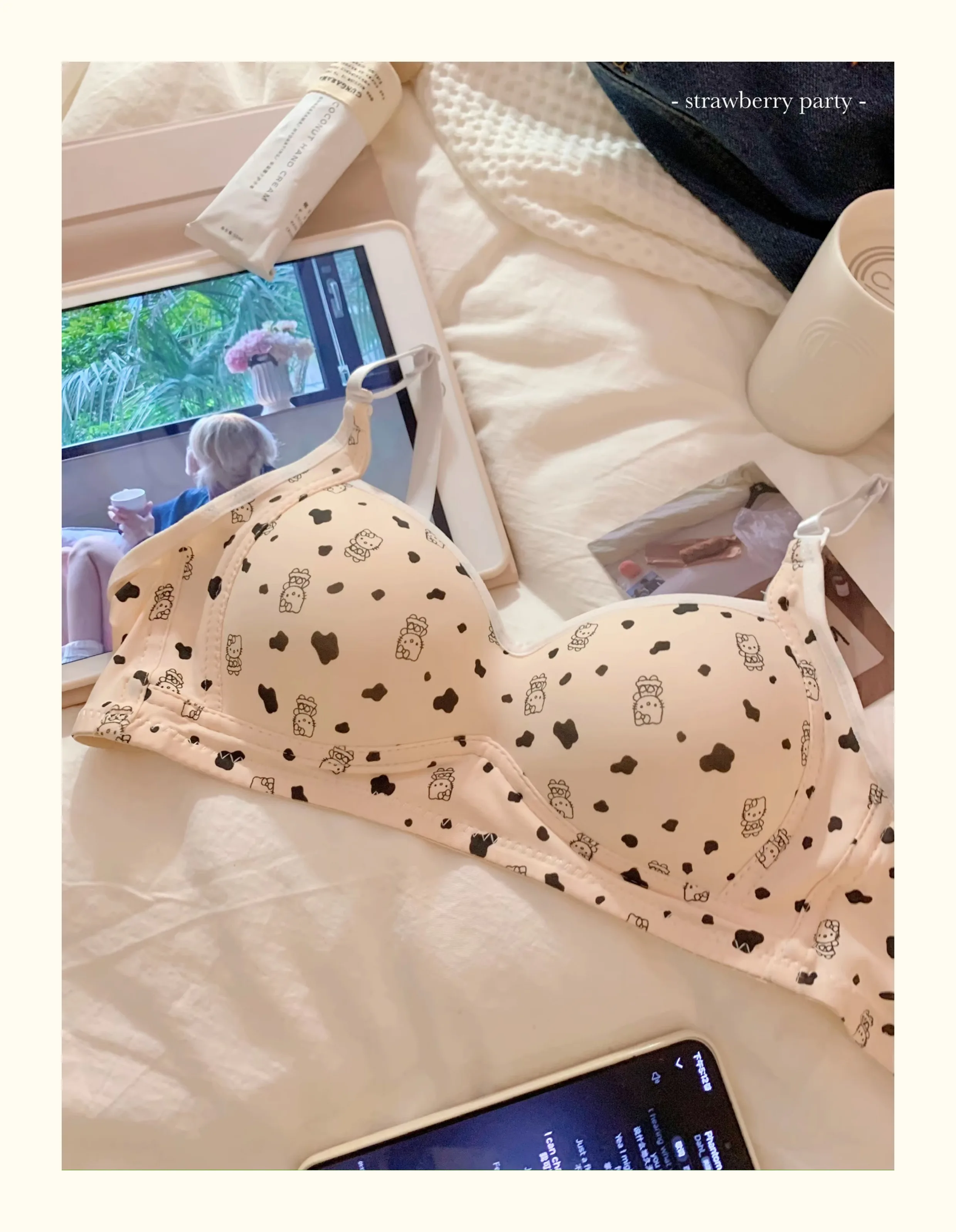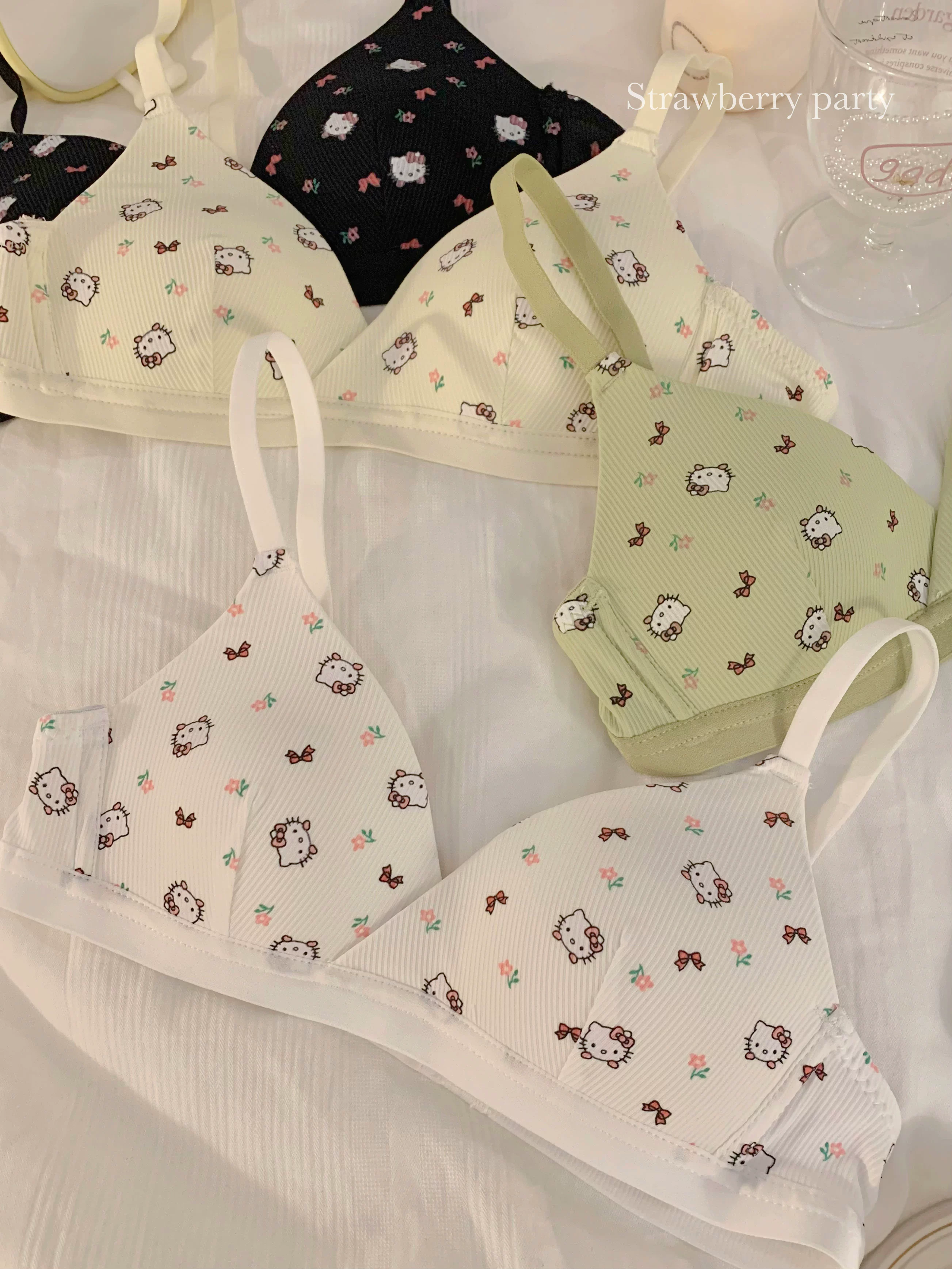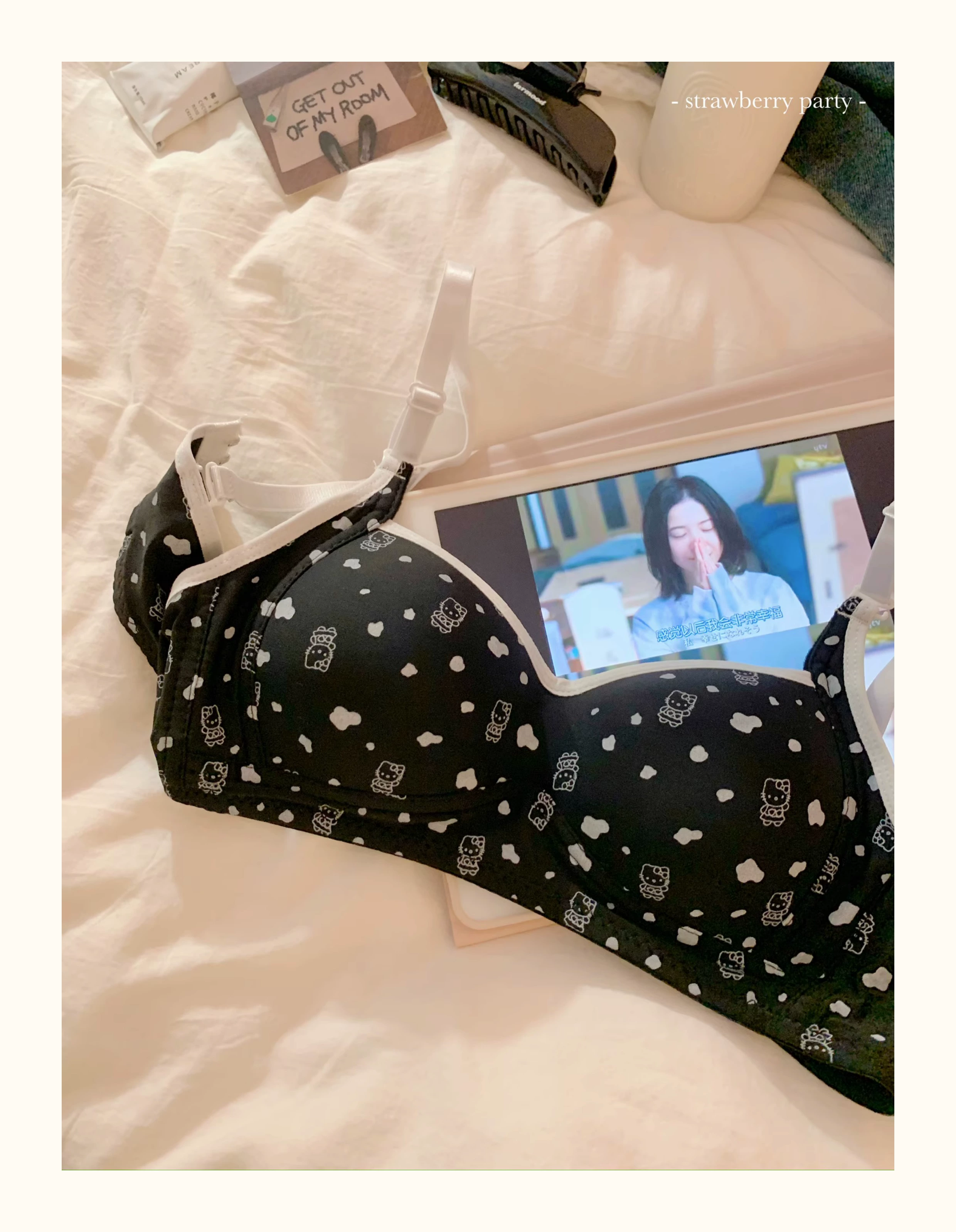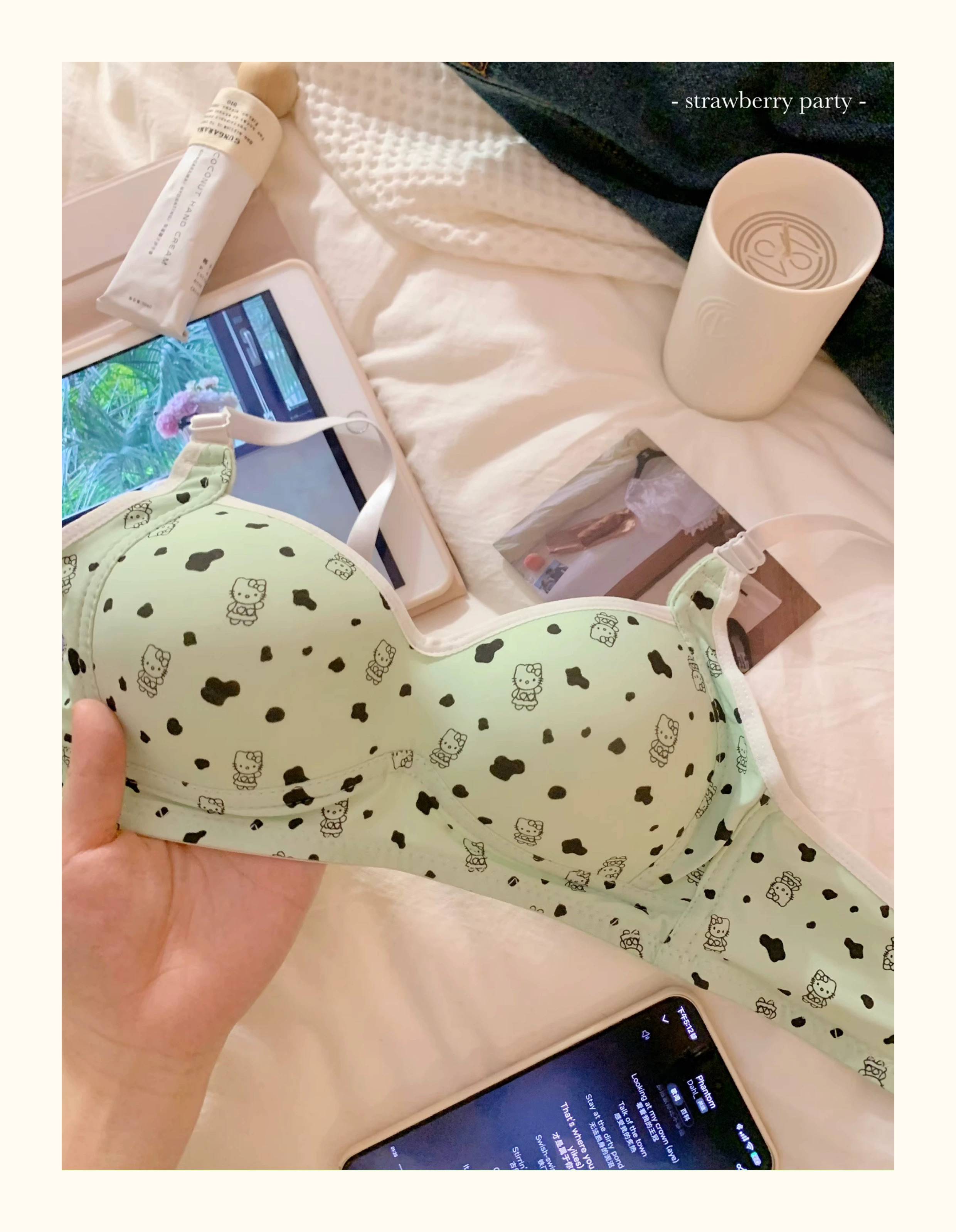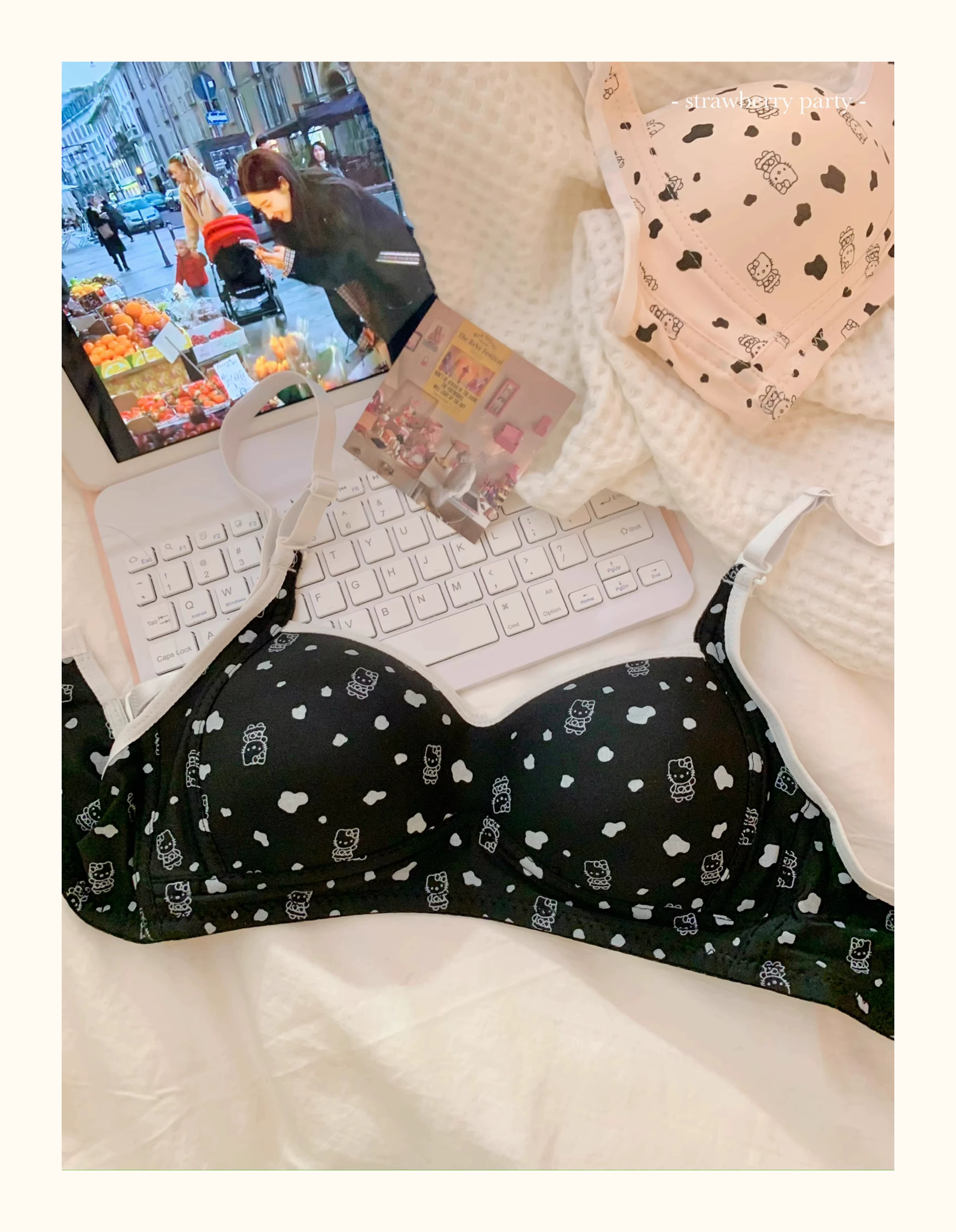 Cute little milk cat printing girls underwear female gathered without steel ring bra thin gathered comfortable lingerie