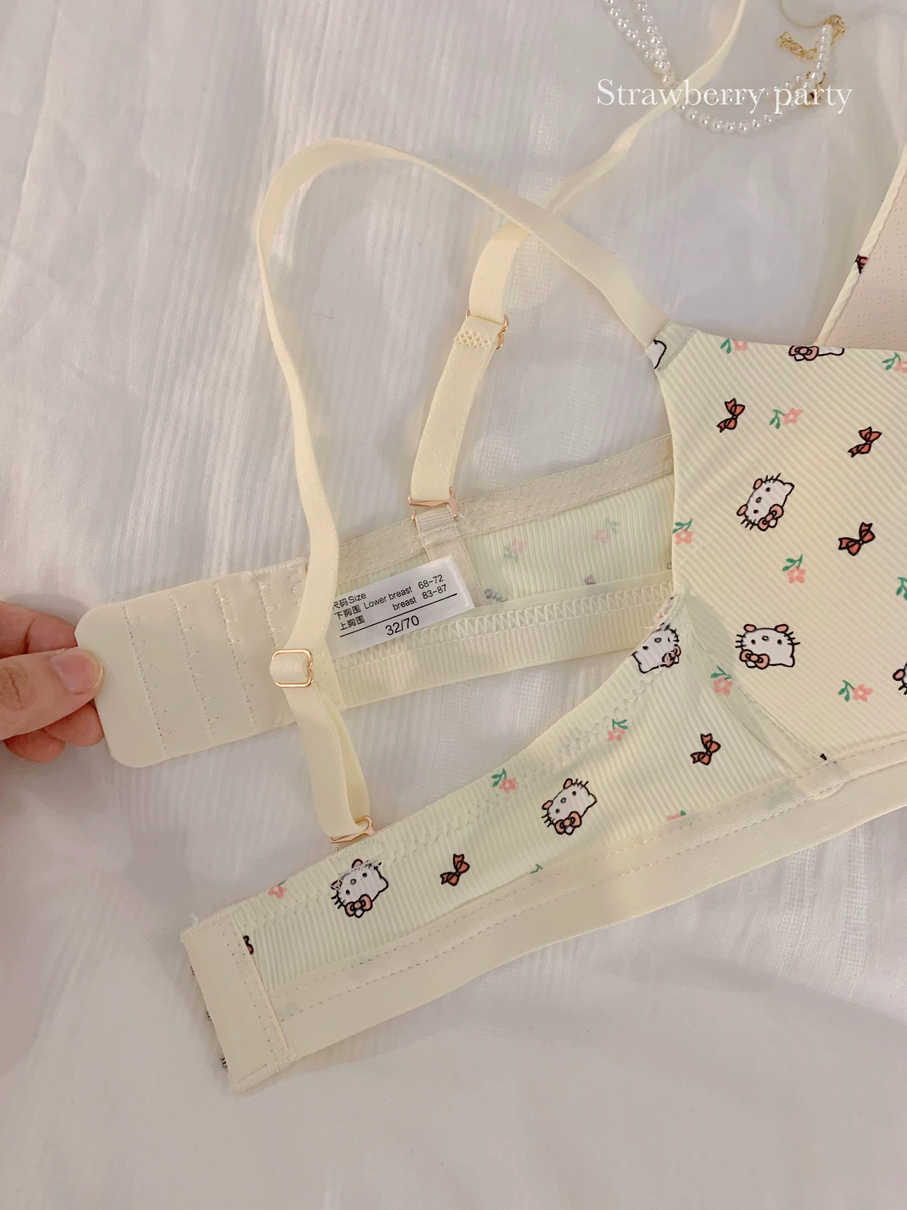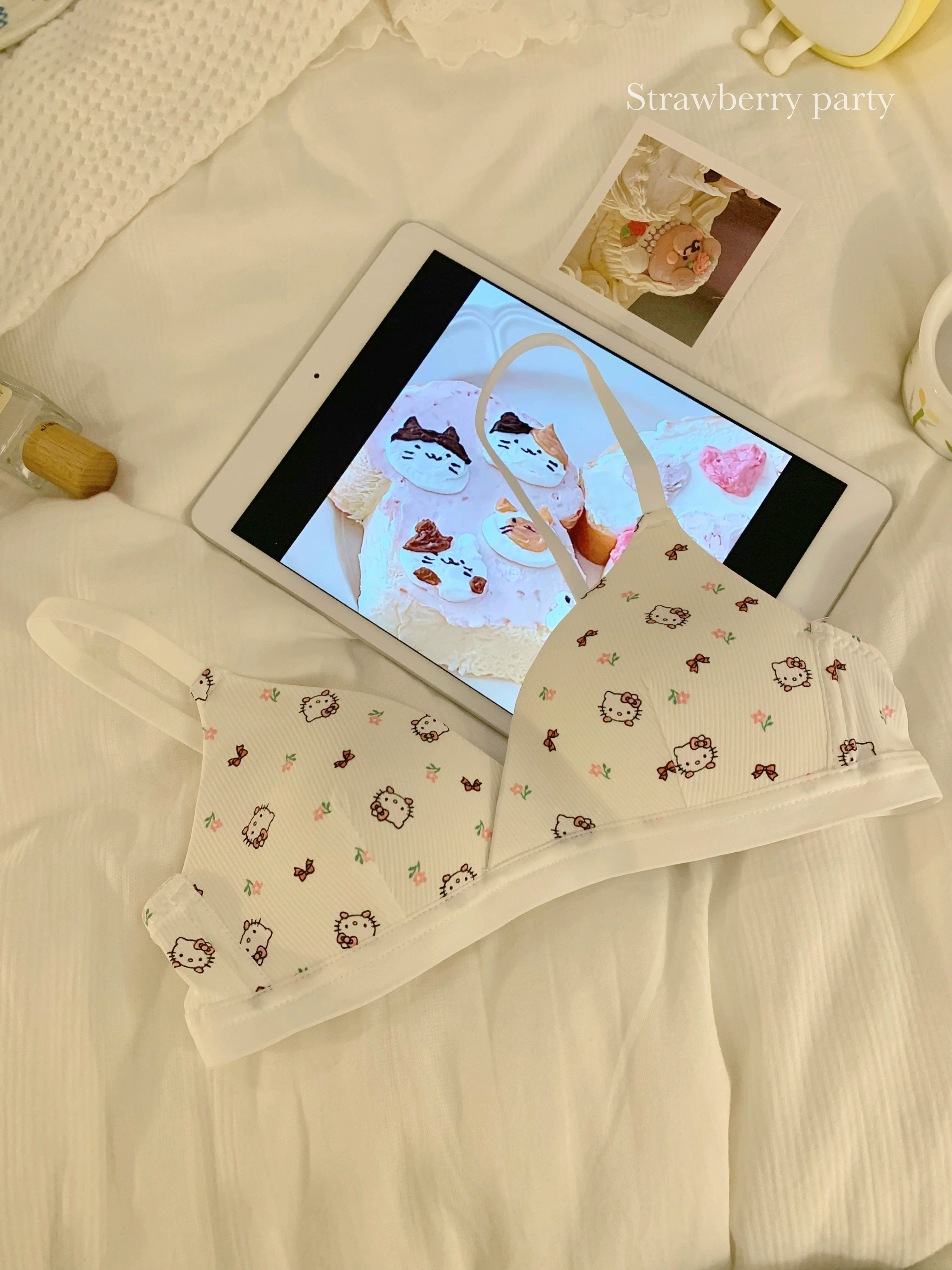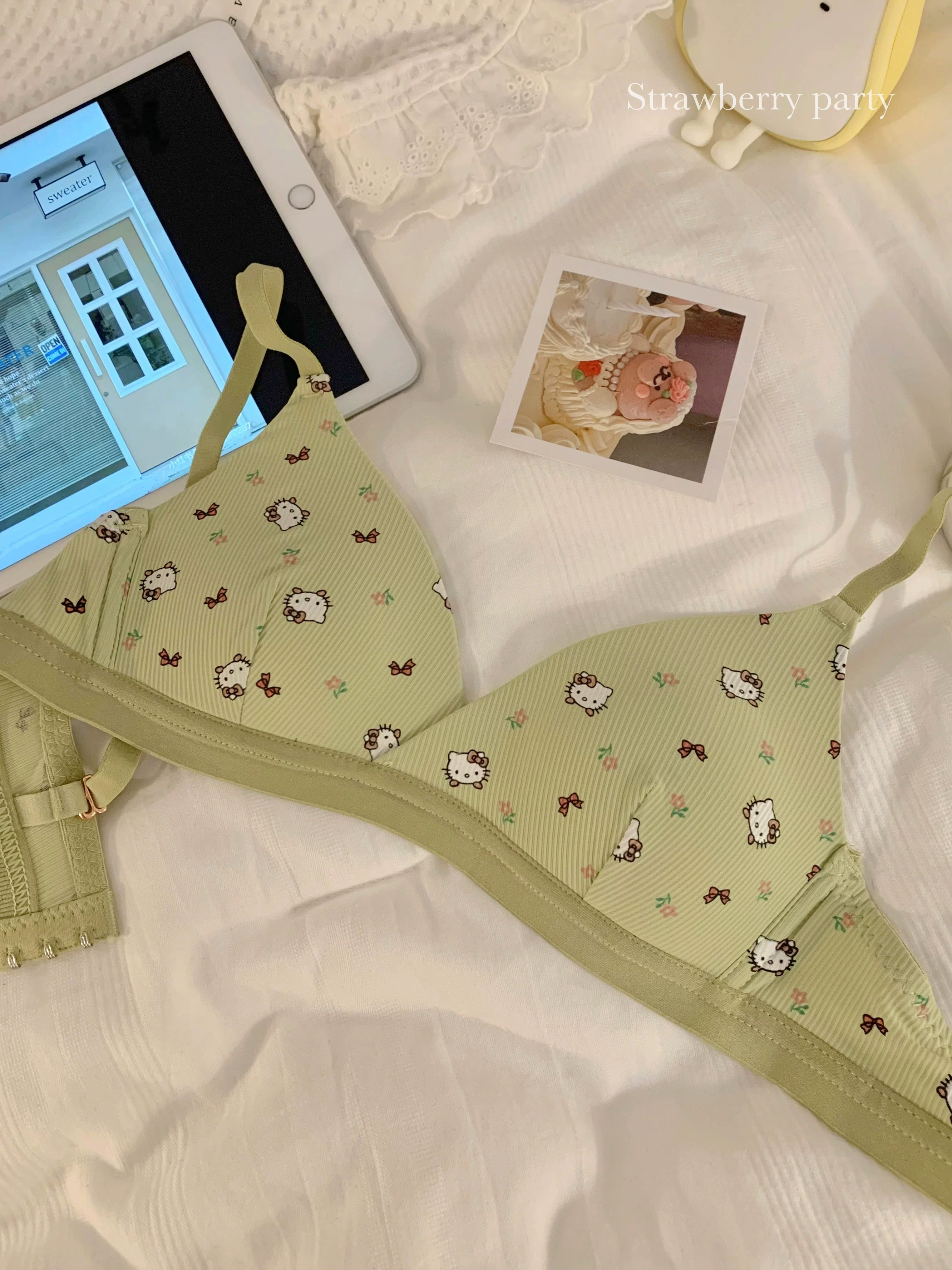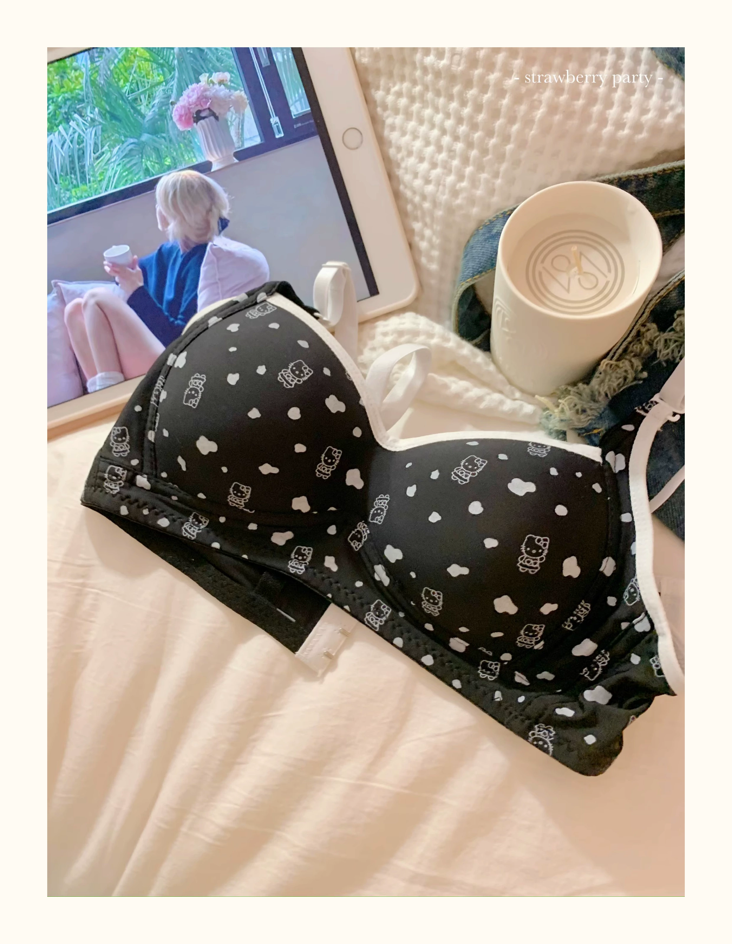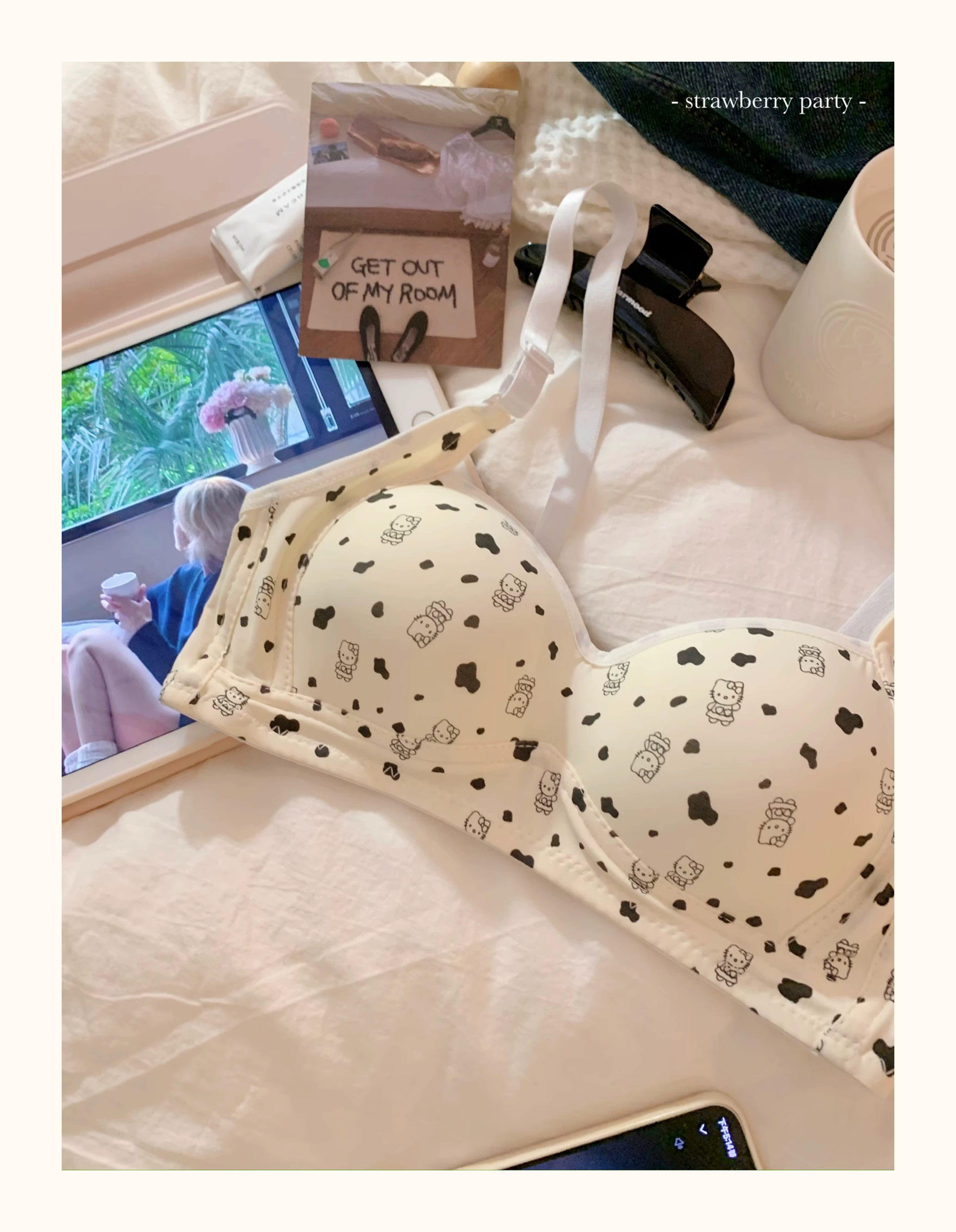 Cute little milk cat printing girls underwear female gathered without steel ring bra thin gathered comfortable lingerie
