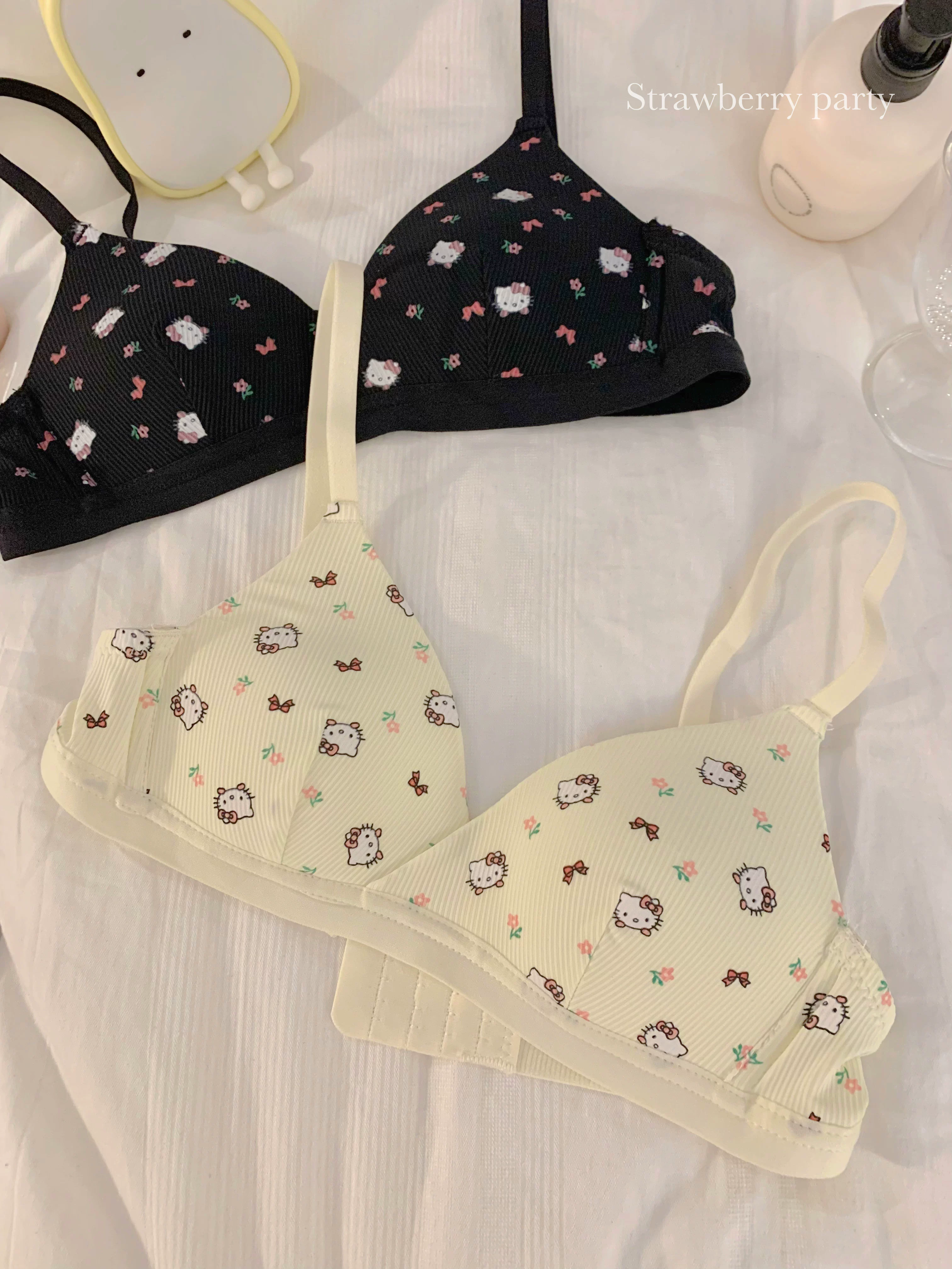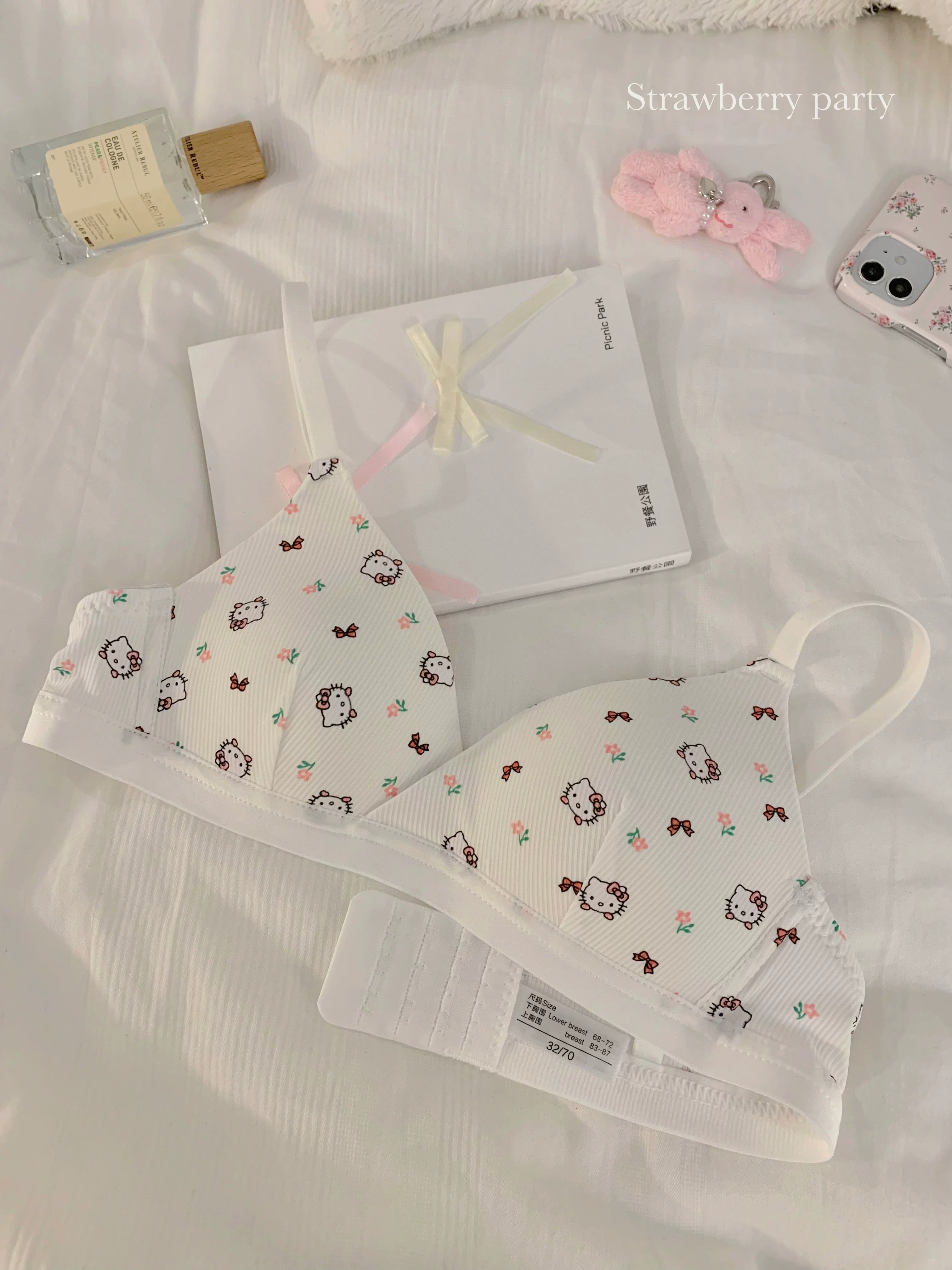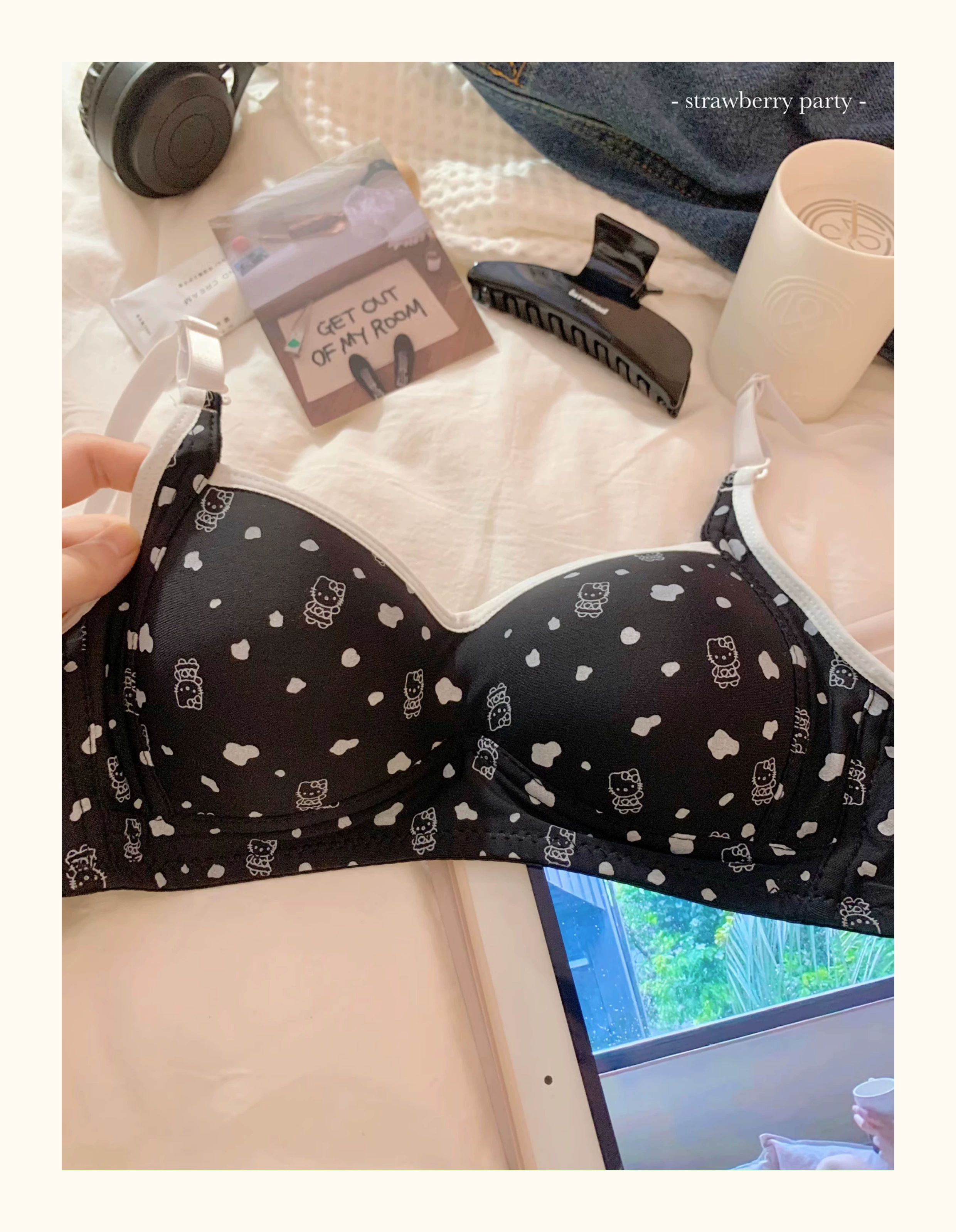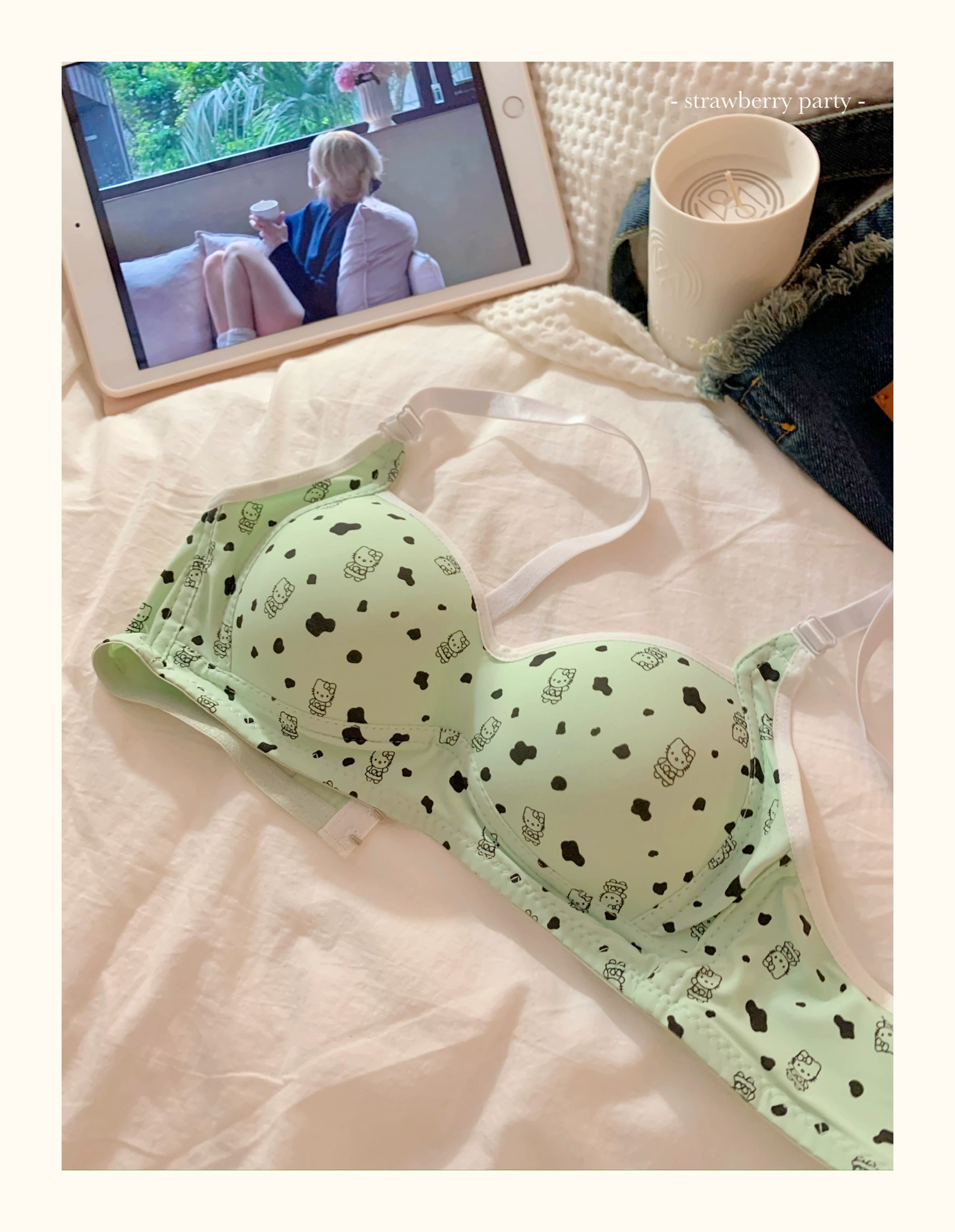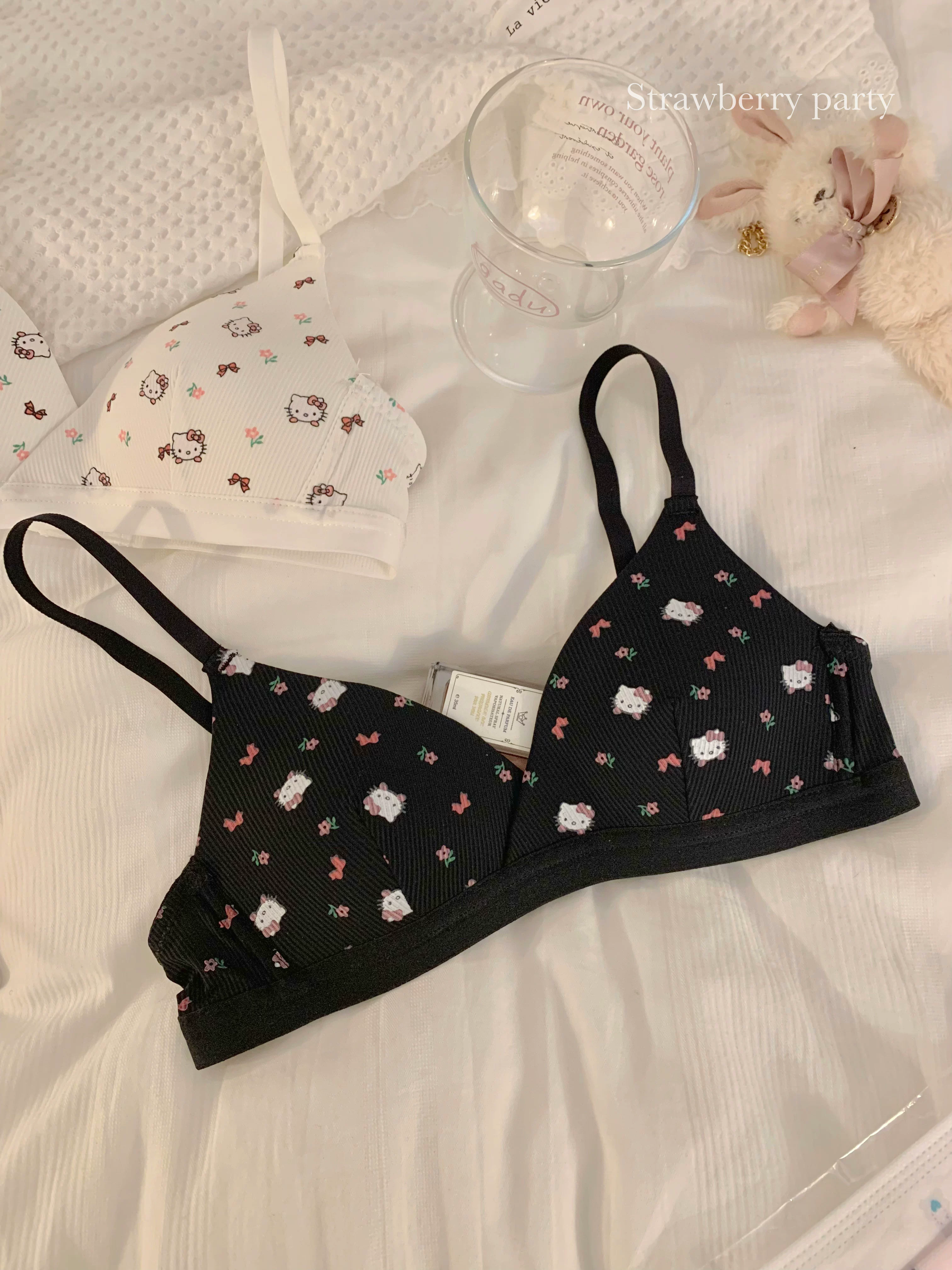 Cute little milk cat printing girls underwear female gathered without steel ring bra thin gathered comfortable lingerie