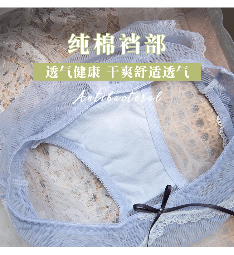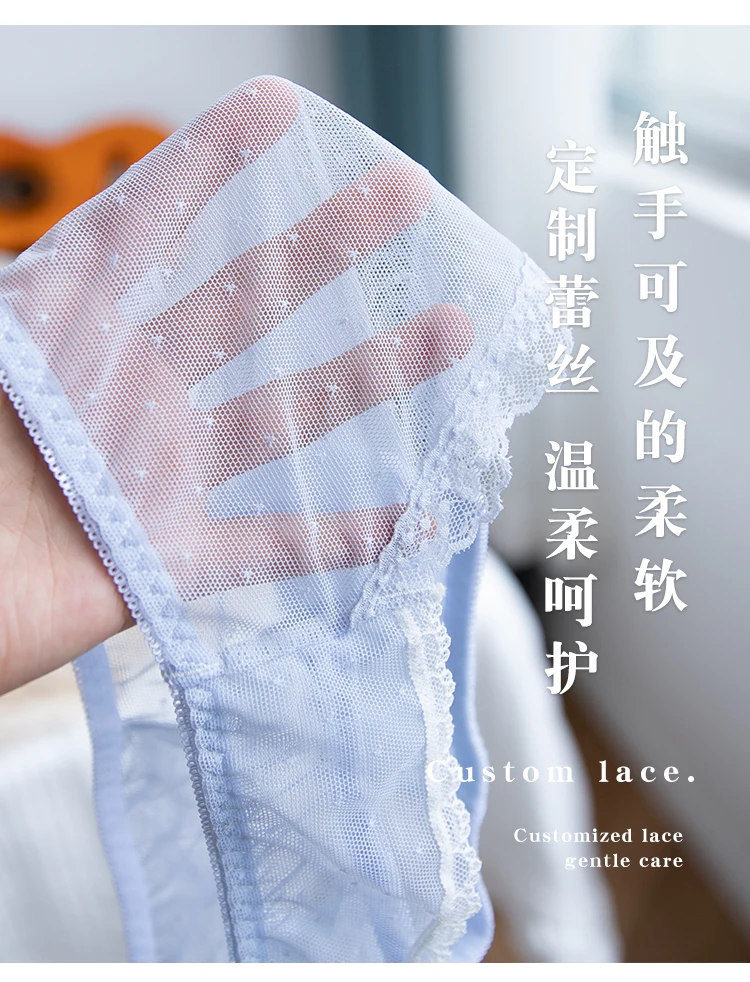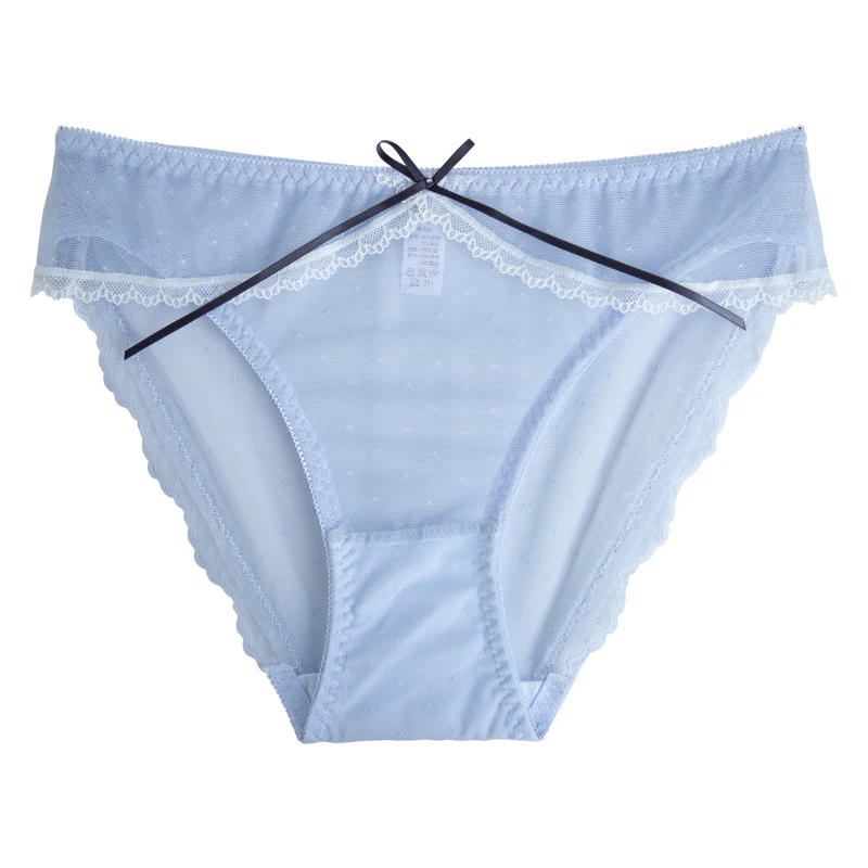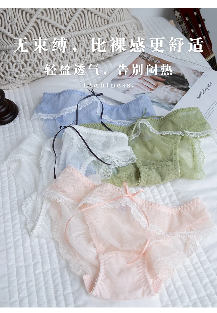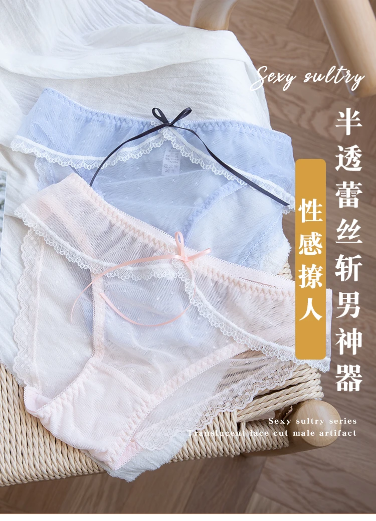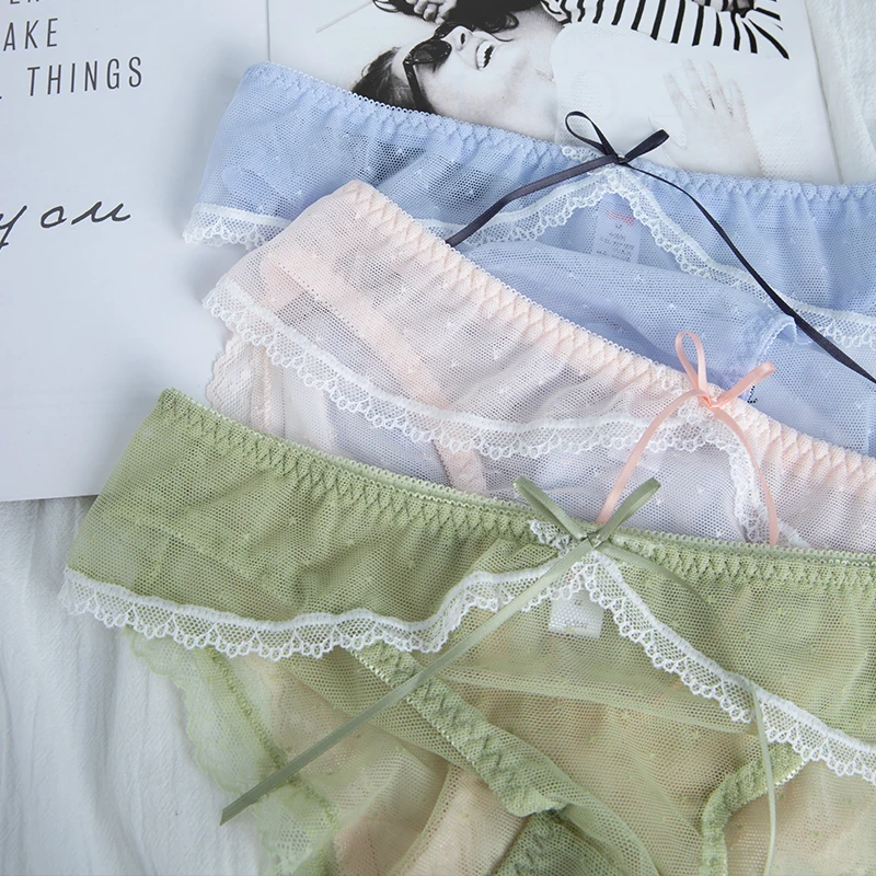 Cute Sexy Women Panties Underwear Transparent Briefs Lace Cotton Sweet Girls Intimates Bow Trim Thin Breathable