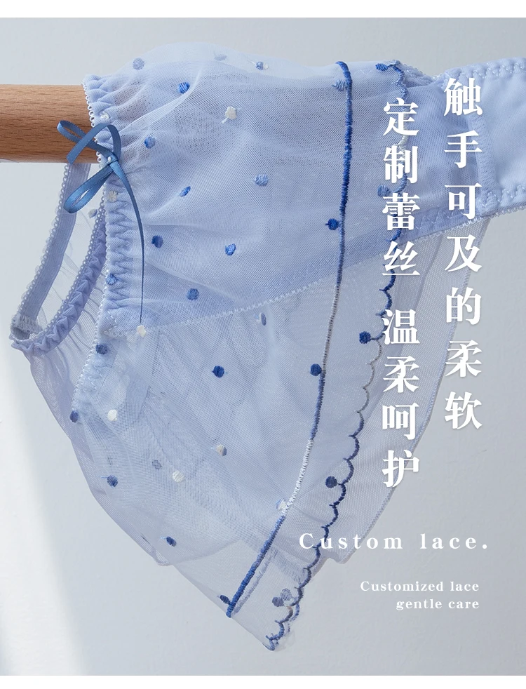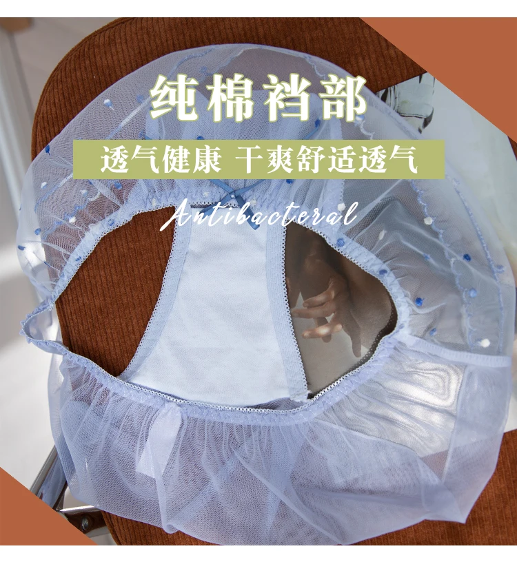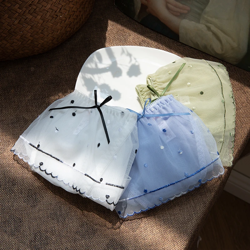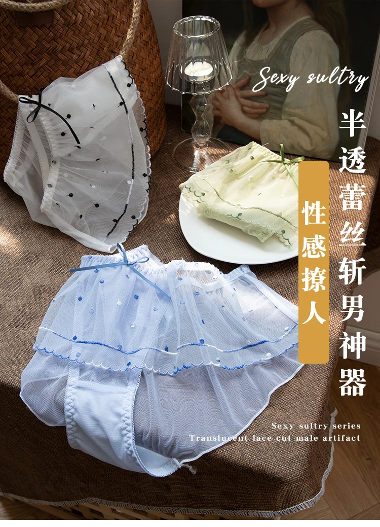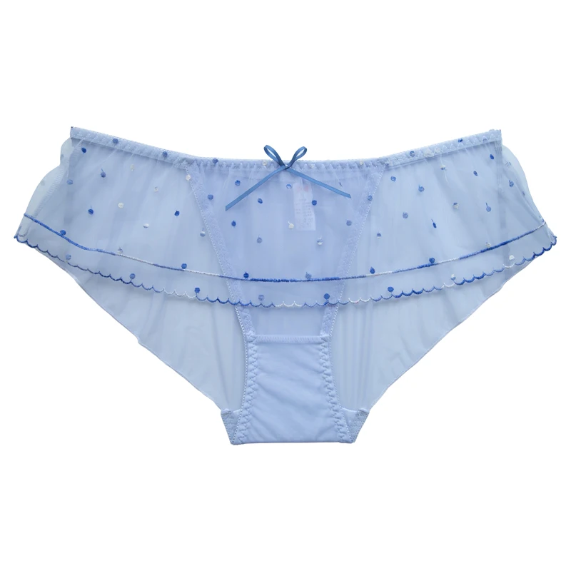Cute Sexy Women Panties Underwear Transparent Briefs Net Yarn Sweet Girls Intimates Dot Embroidery Bow Trim