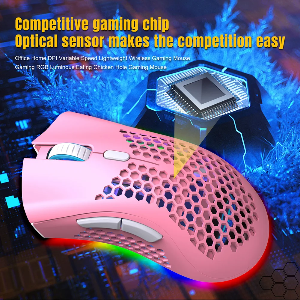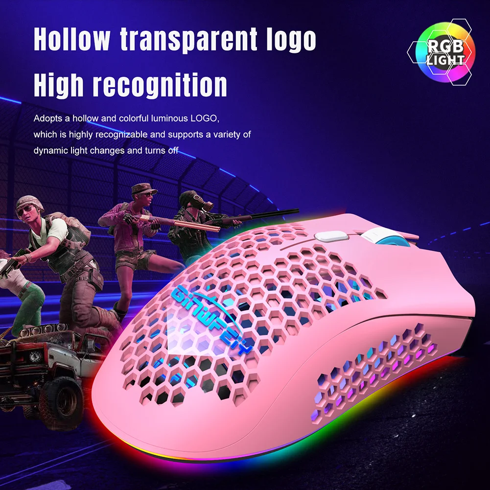 D2 Wireless Gaming Mouse 2.4GHz USB Receiver RGB Backlight Mouse Rechargeable 7 Buttons Lightweight Hollow Optical Mice for PC Specification: Mouse name: D2 wireless mouse Mouse type: rechargeable wireless mouse Number of buttons: 7 DPI adjustment: 800-1200-1600 Macro programming: not supported Connection interface type: USB receiver plugged into the computer, wireless connection with the mouse Wire length: 0.8m (charging cable) Wire material: pure copper Shell material: ABS Shell process: primary color injection Button life: 5 million times Mute: No Supported OS: for Windows XP/VISTA/7/8/10, for Mac OS, for Android TV Mouse color: Black, Pink (Optional) Product size: 128*70*38mm/5.04*2.76*1.50″ Note: 1 X Wireless Mouse 1 X USB Receiver 1 X Charging Cable