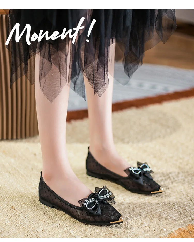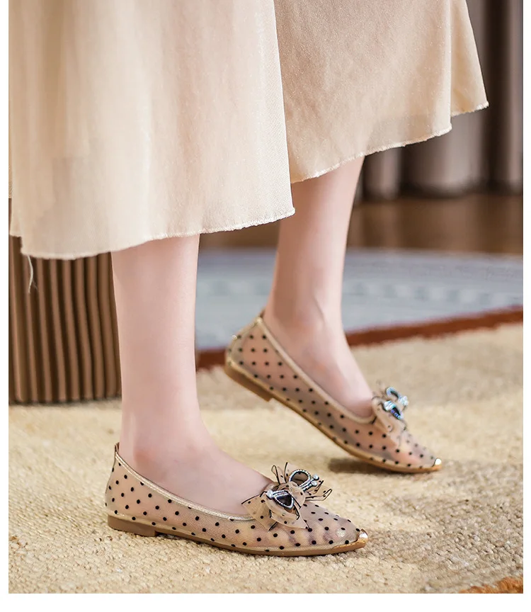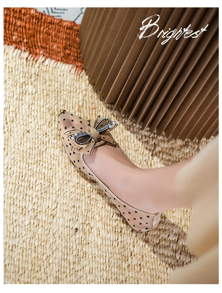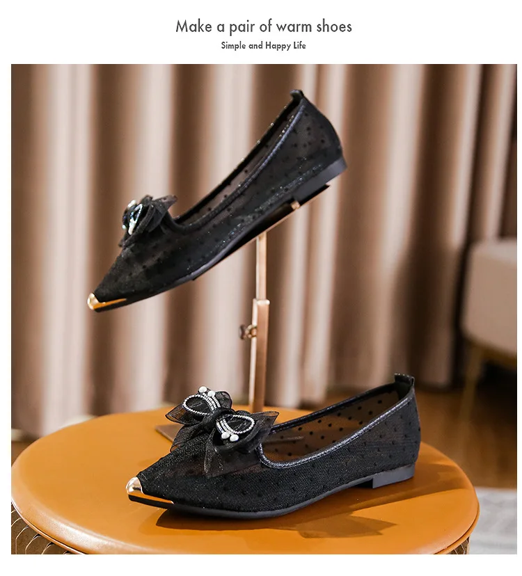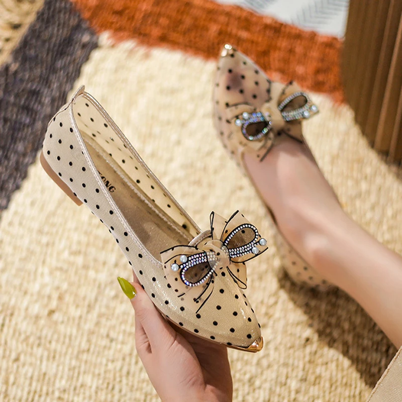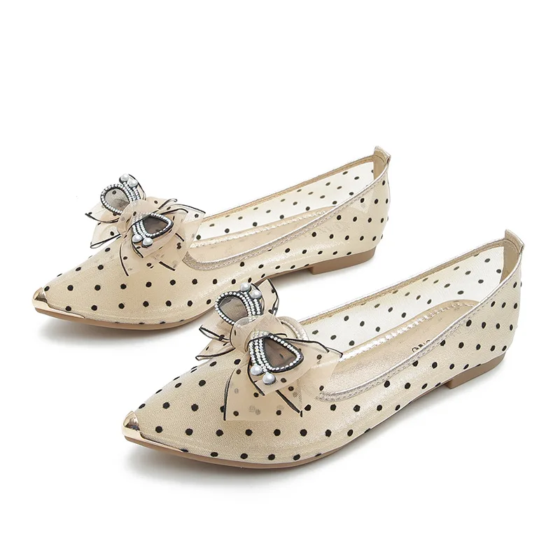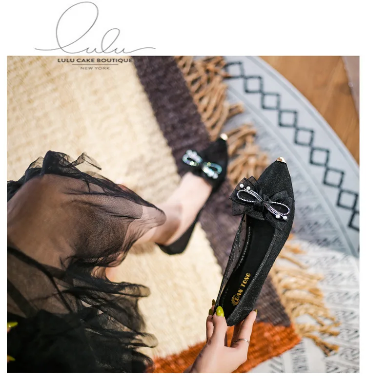 Soft Bottomed Flats Shoes Women Pearl Beaded Shoes Casual Slip On Ballerinas