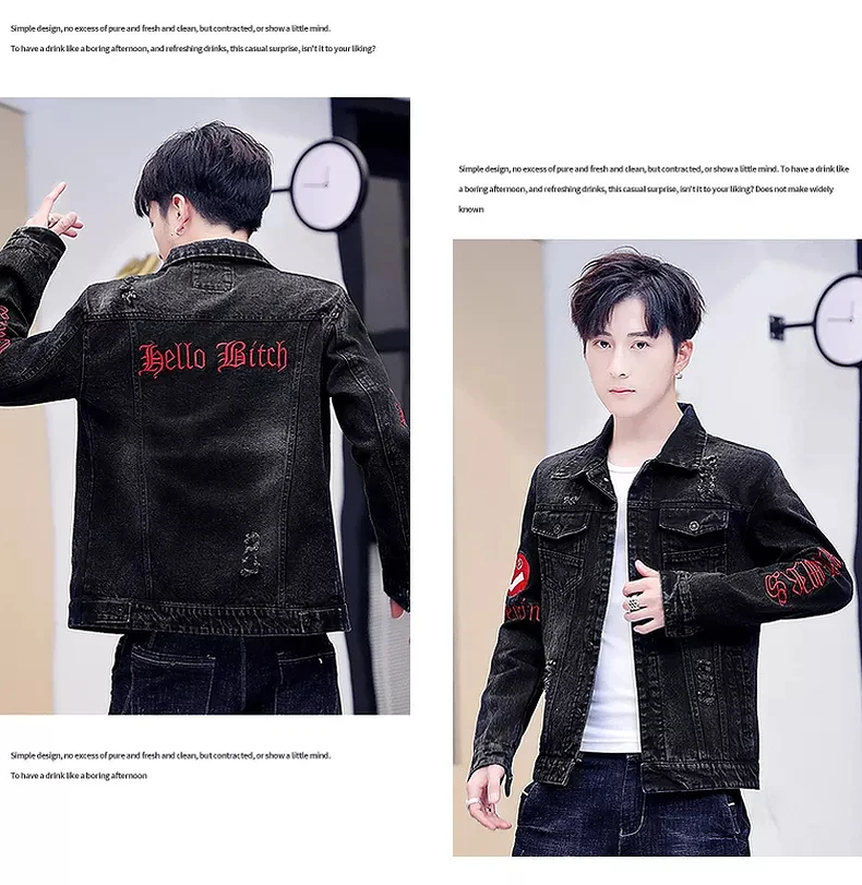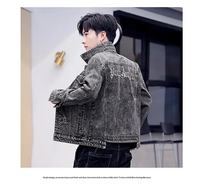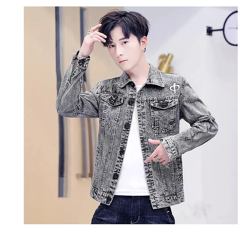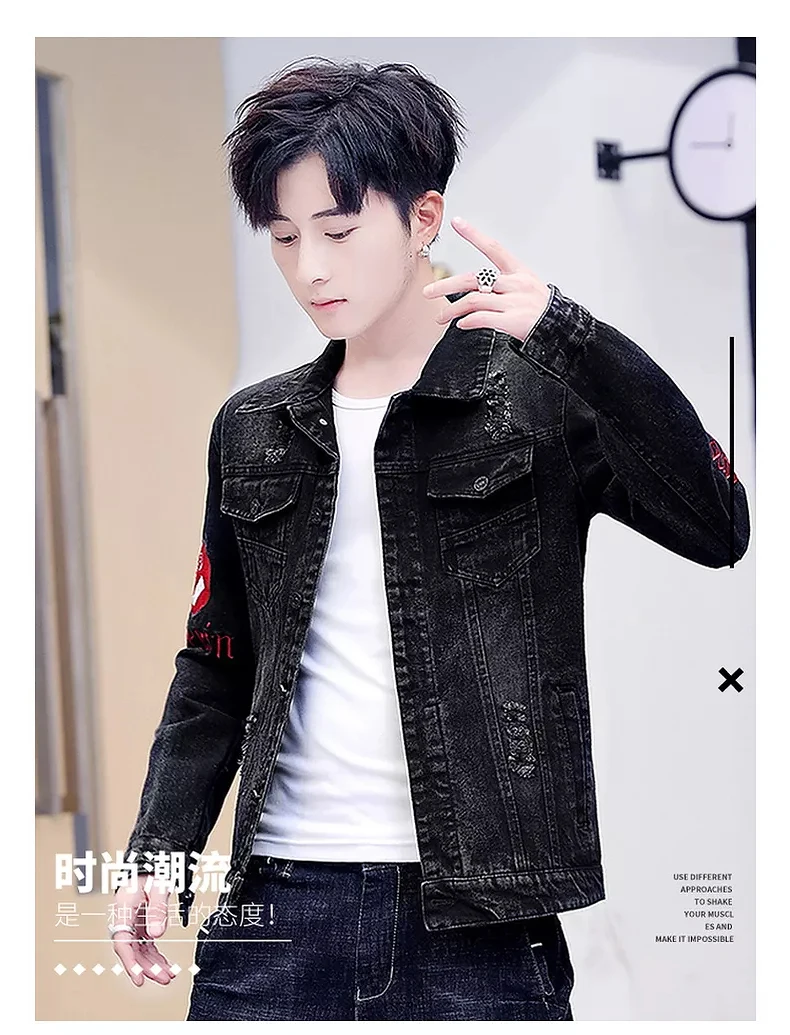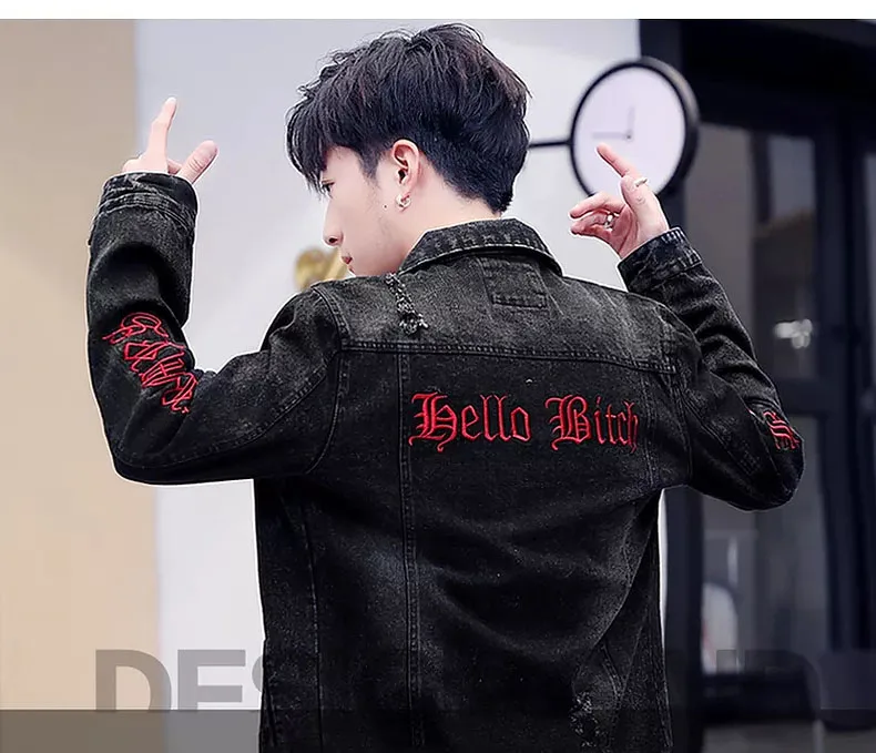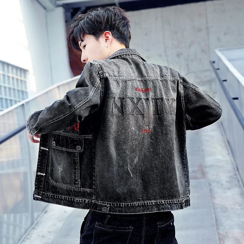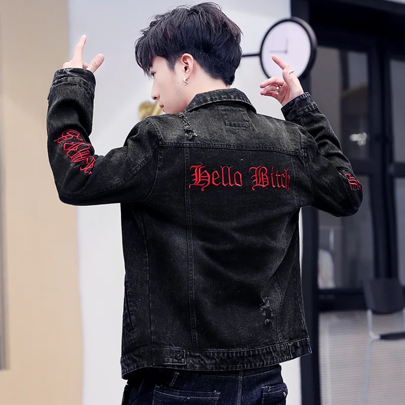 Denim Coat Men’s Trendy Students Handsome 2021 New Spring and Autumn Korean Embroidery Street Hip Hop Denim Jacket Clothes