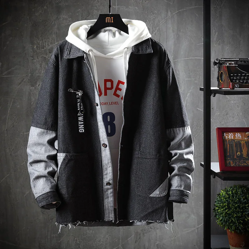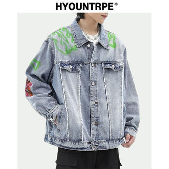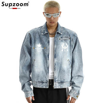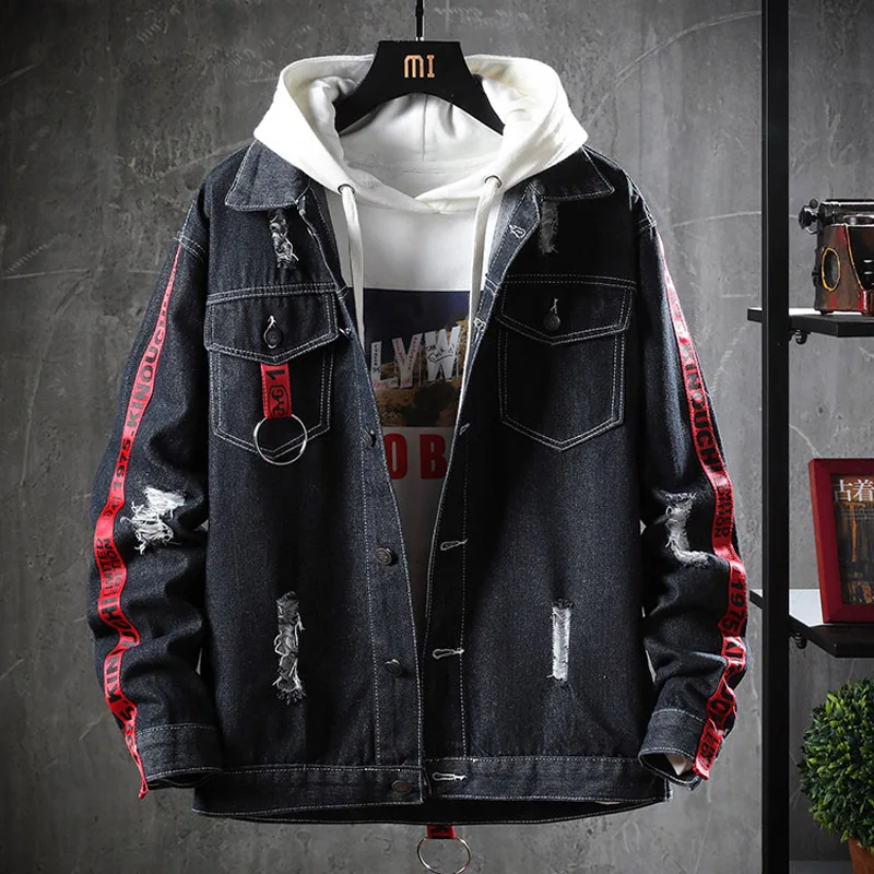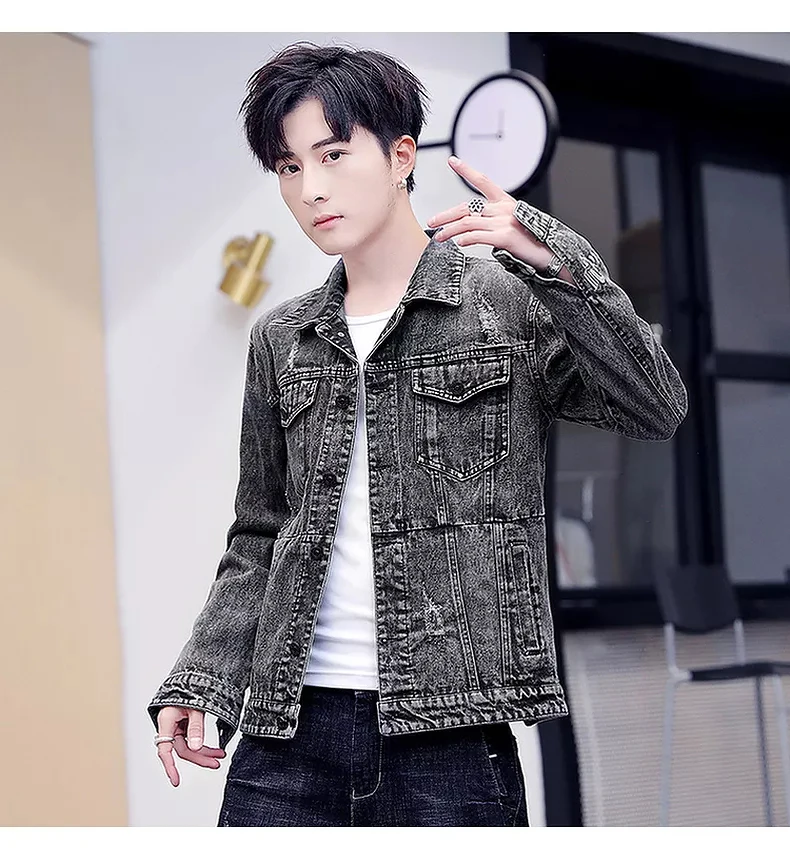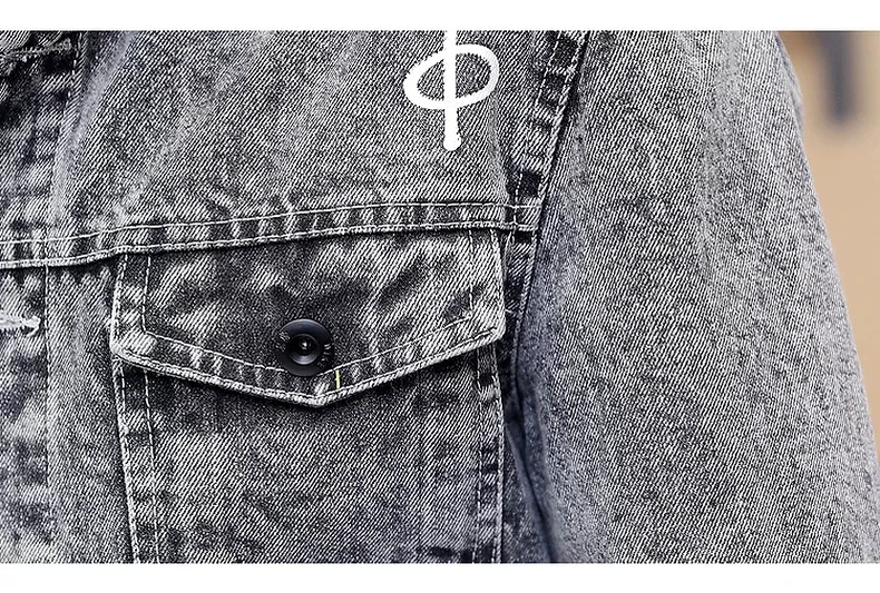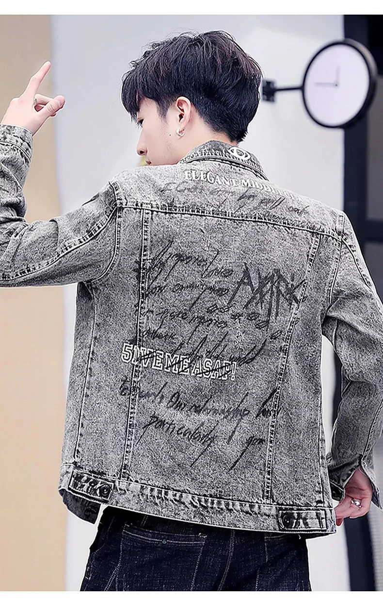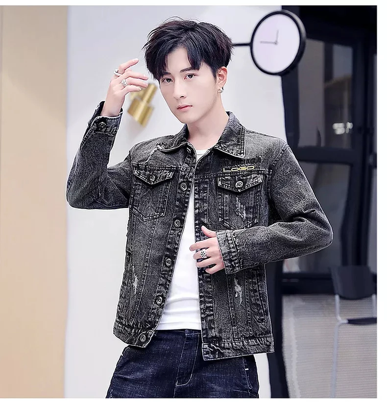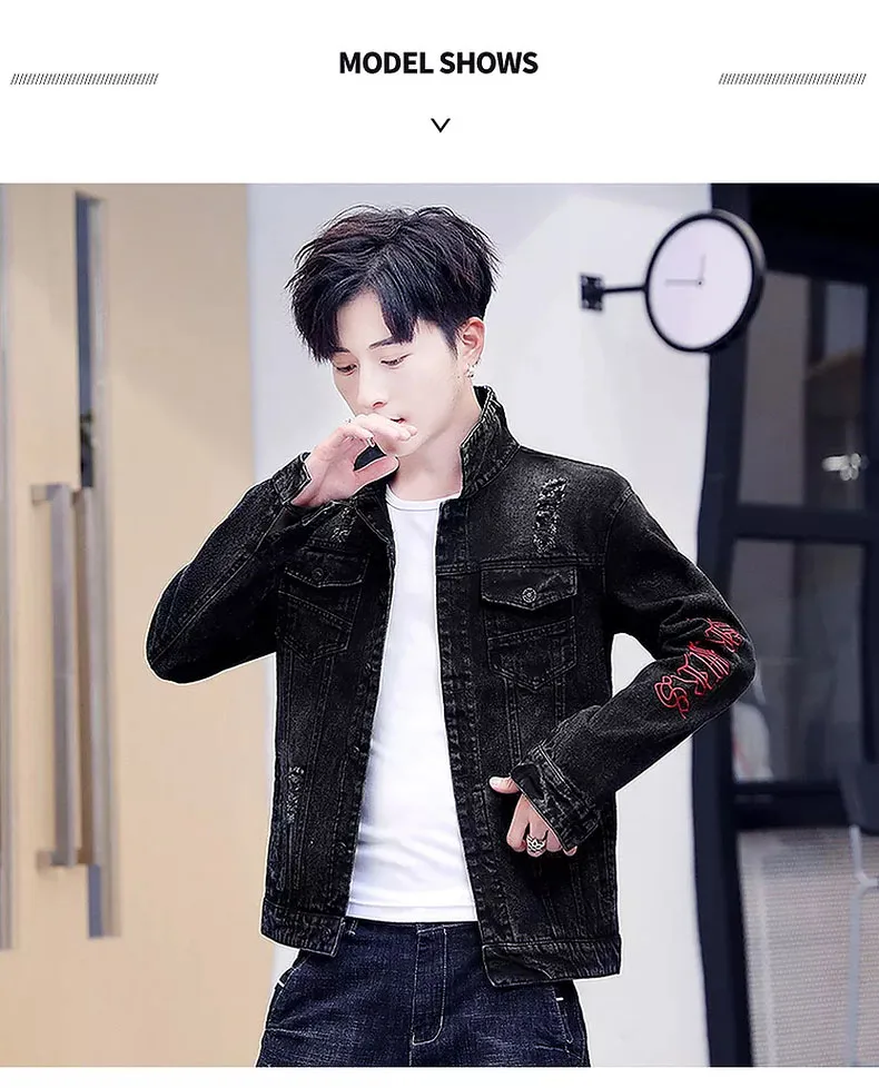 Denim Coat Men’s Trendy Students Handsome 2021 New Spring and Autumn Korean Embroidery Street Hip Hop Denim Jacket Clothes