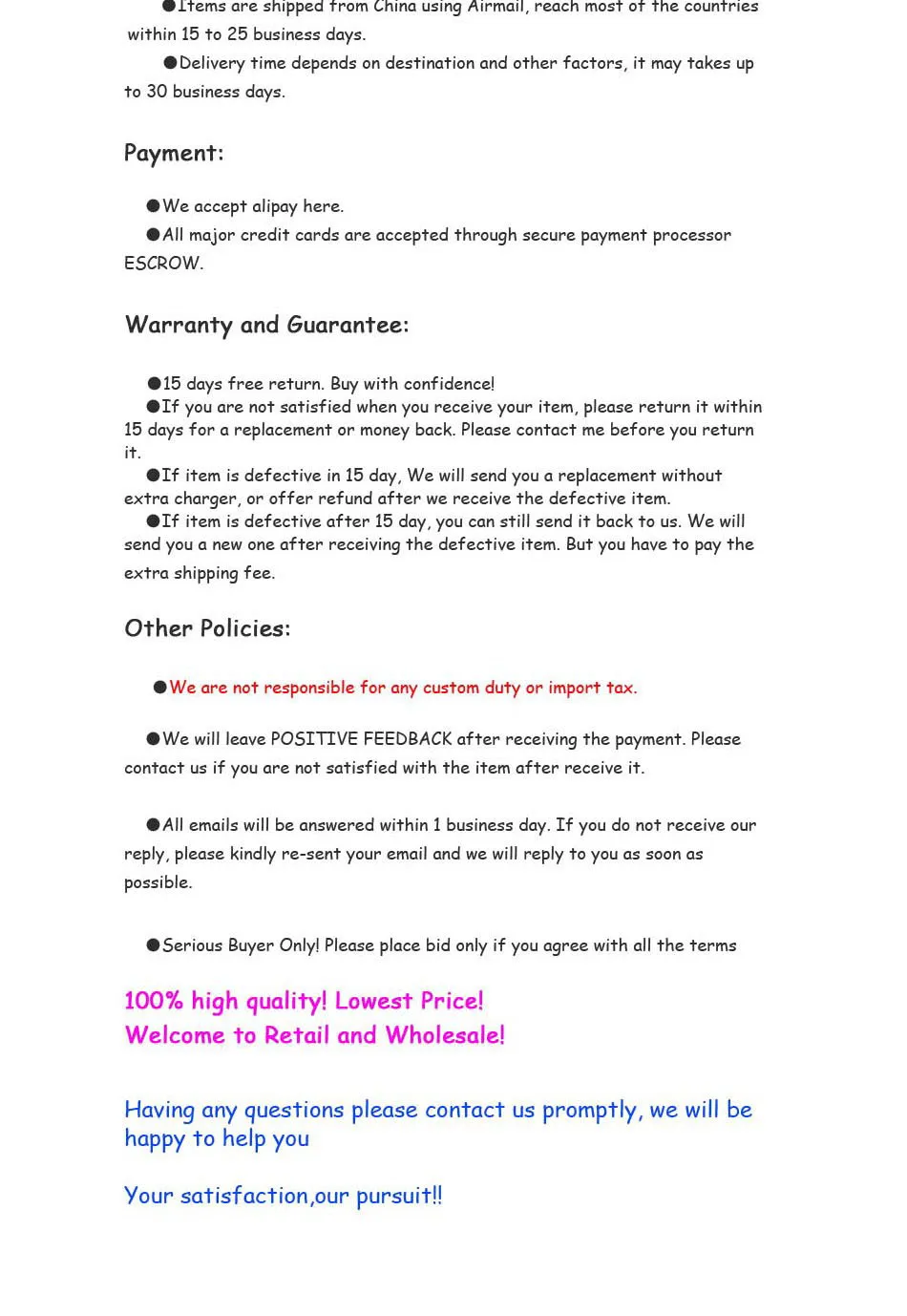 • If you did not receive the product within the guaranteed time( 45 days not including 2-5 day processing) you can request a refund or a reshipment.