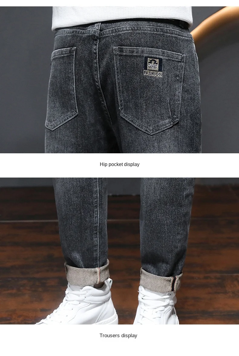 Denim Jeans 2022 Boys Autumn Loose Straight Brand Stretch Casual Men’s New Korean Embroidered Men’s Long Cowboy Harem Pants