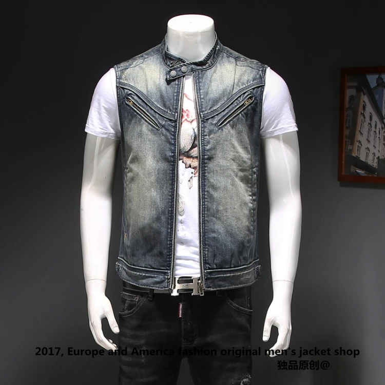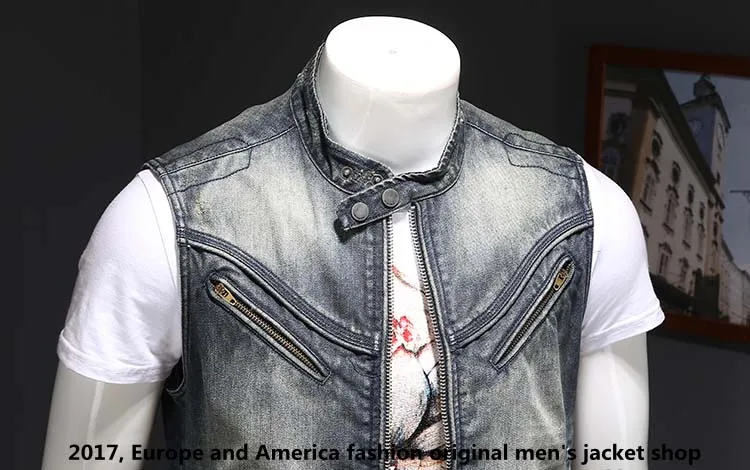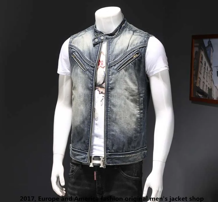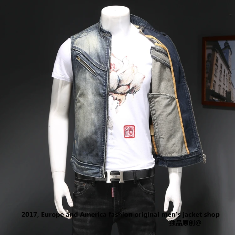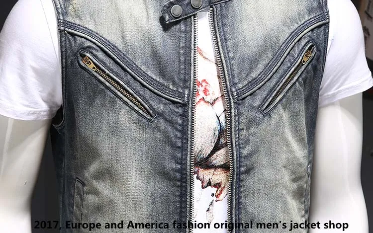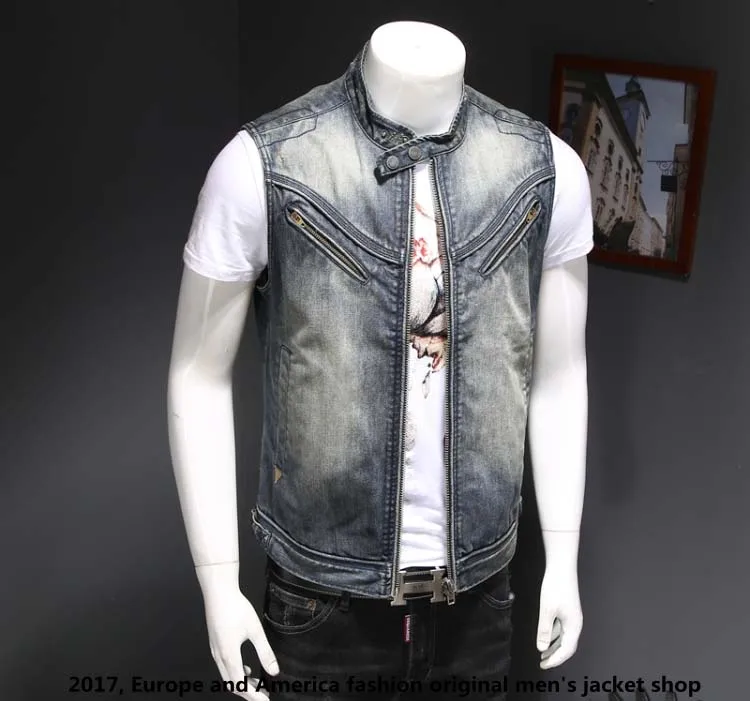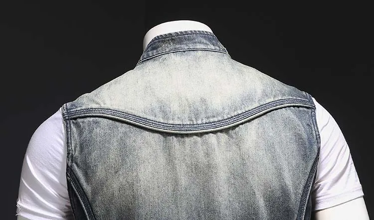 Denim Jeans Vest Men Male Jeans Waistcoat Hole Washed Cowboy Jeans Denim Vest Sleeveless Plus Size 3XL