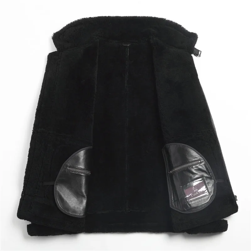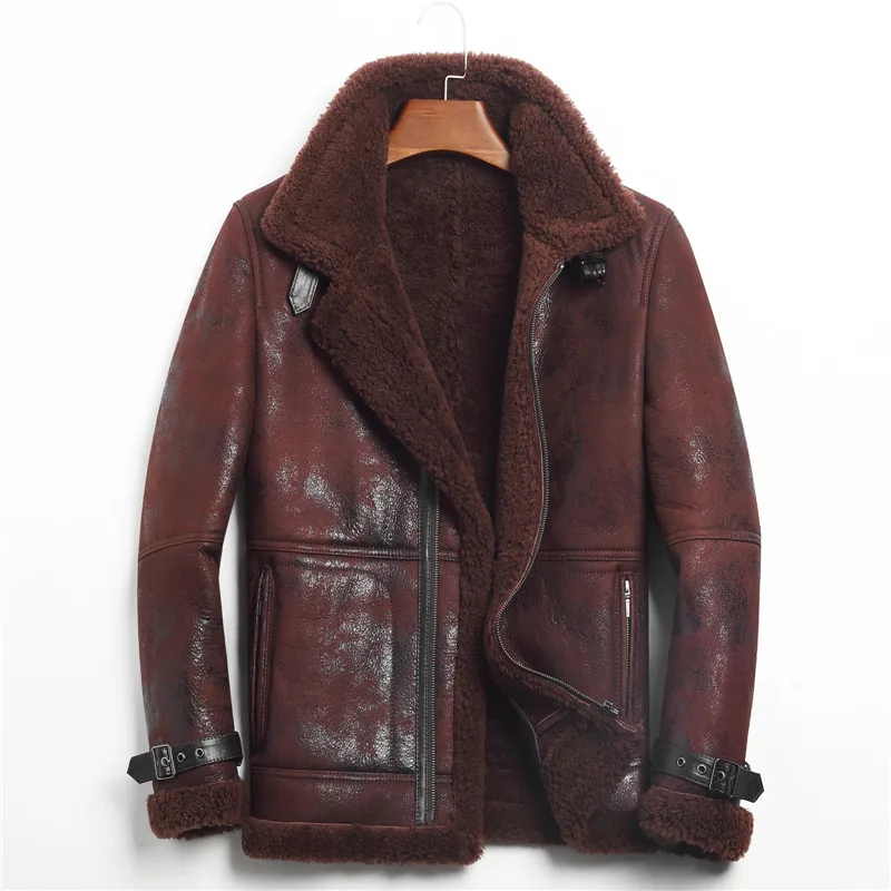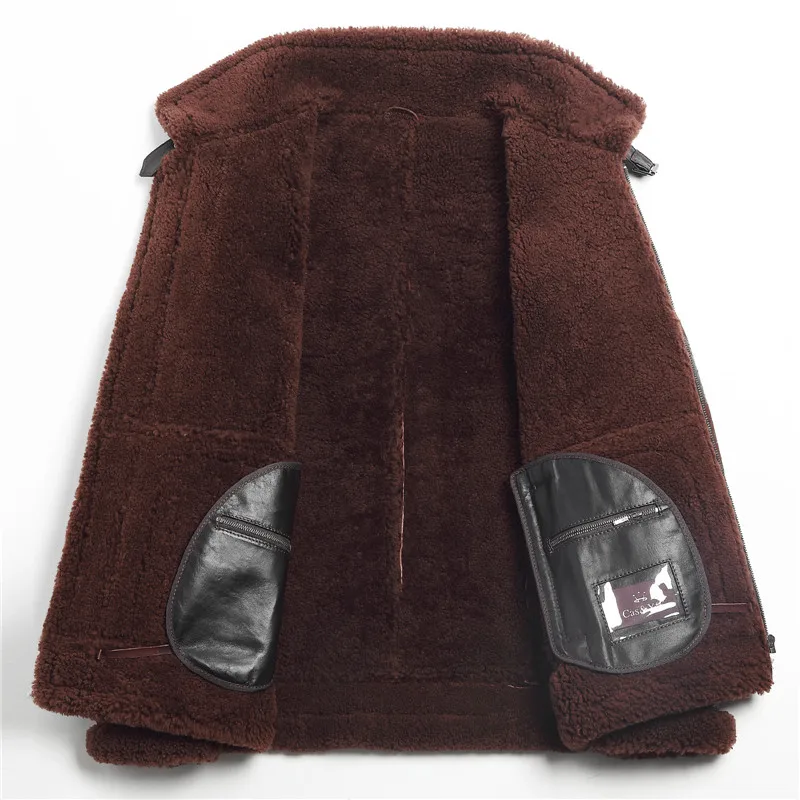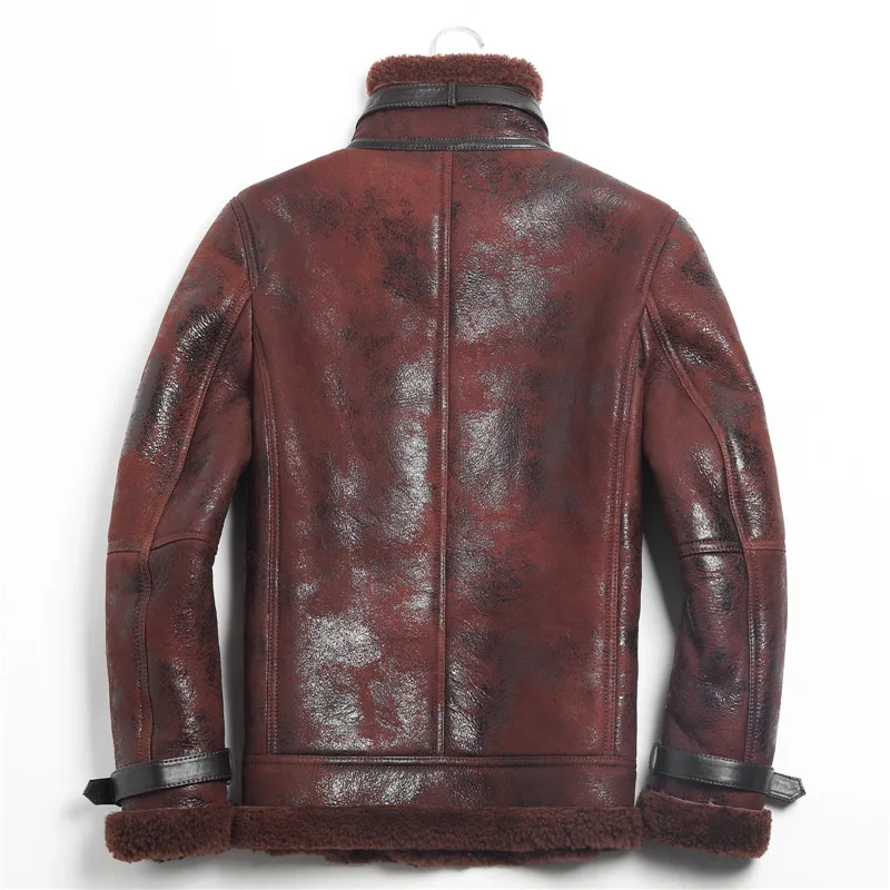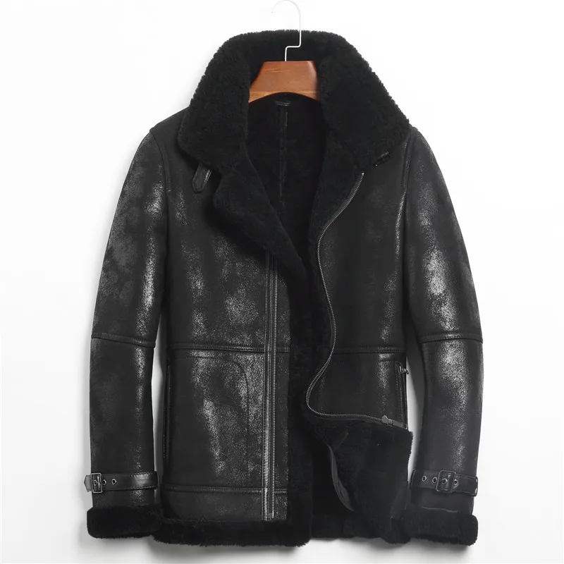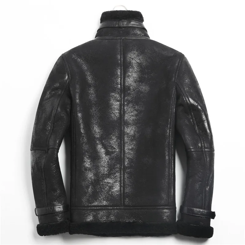 Denny&Dora Mens Aviator b3 Sheepskin Jacket Sheepskin Shearling Leather Jacket Lapel Fur Motorcycle Clothing
