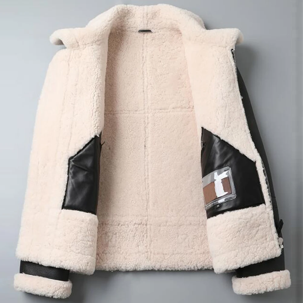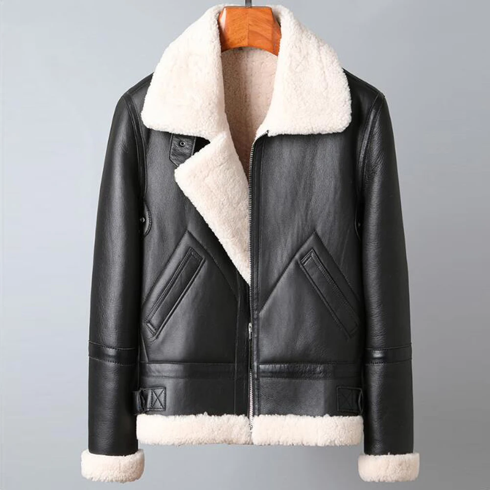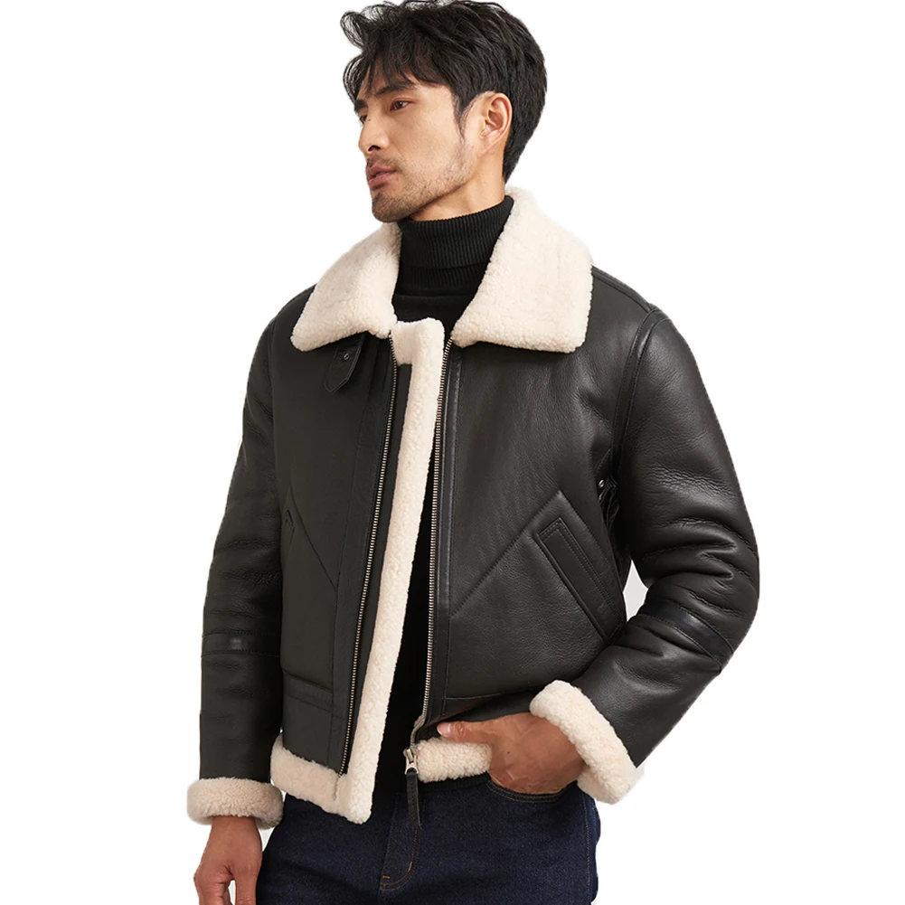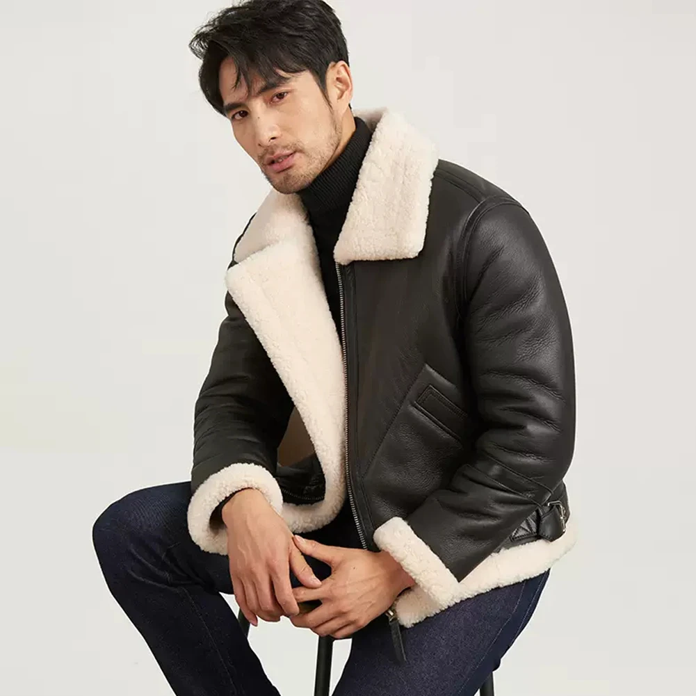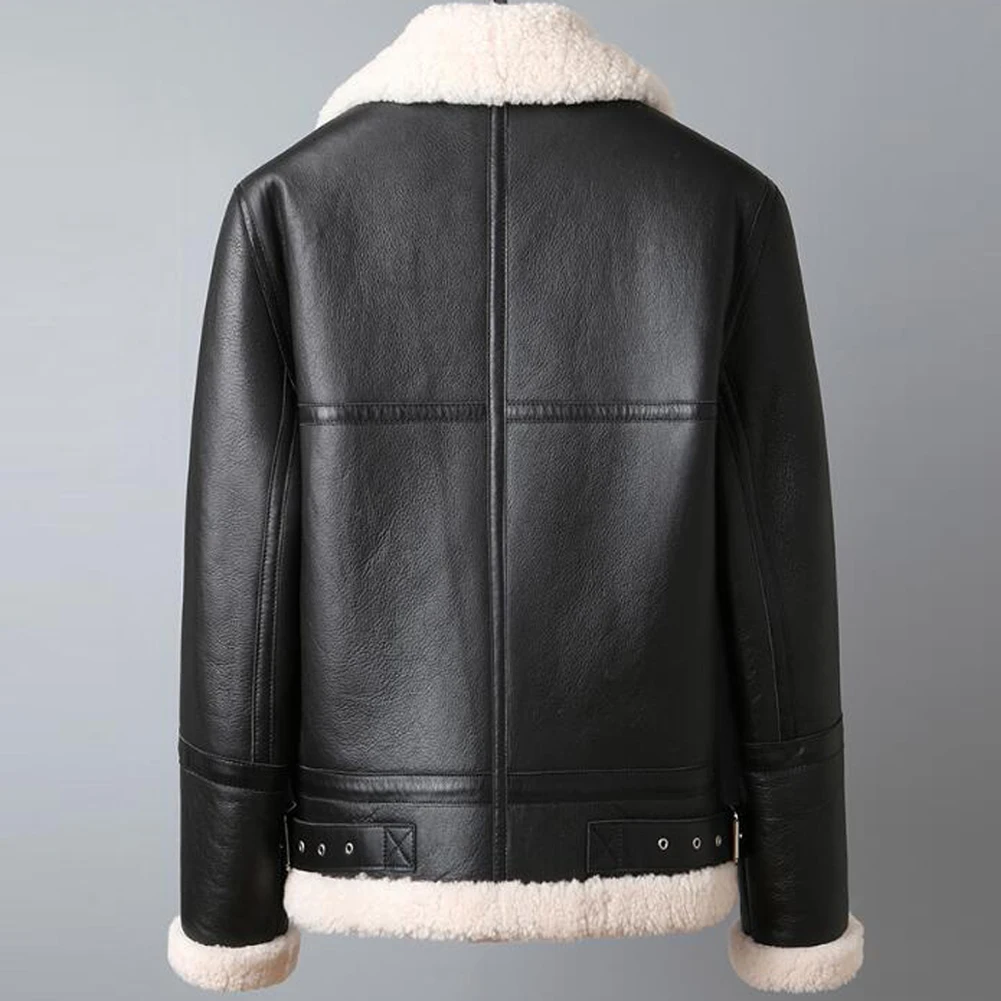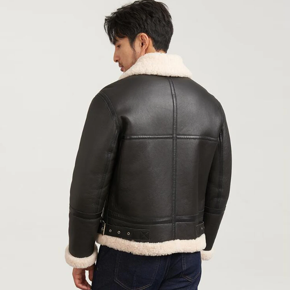 Denny&Dora Mens Shearling Jacket Mens Shearling Aviator Jacket Thick Warm Winter Black Shearling Jacket
