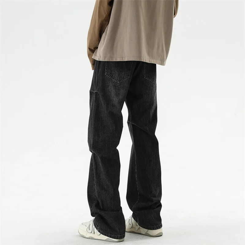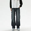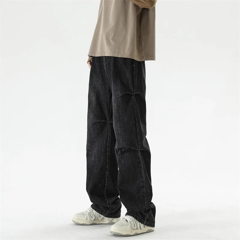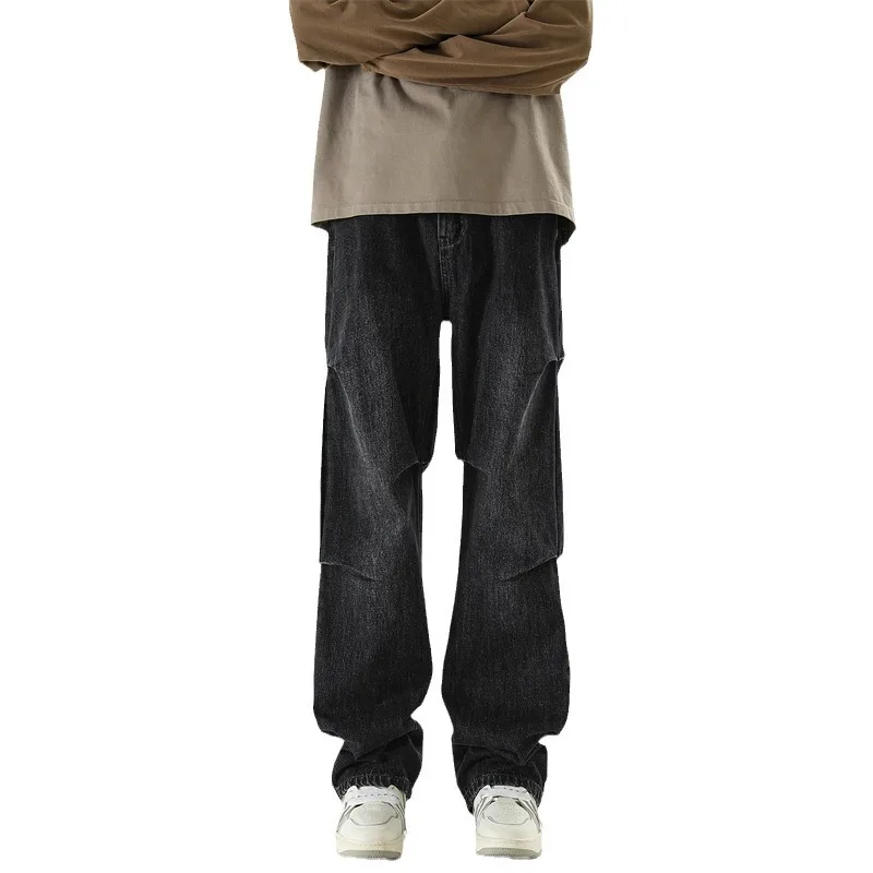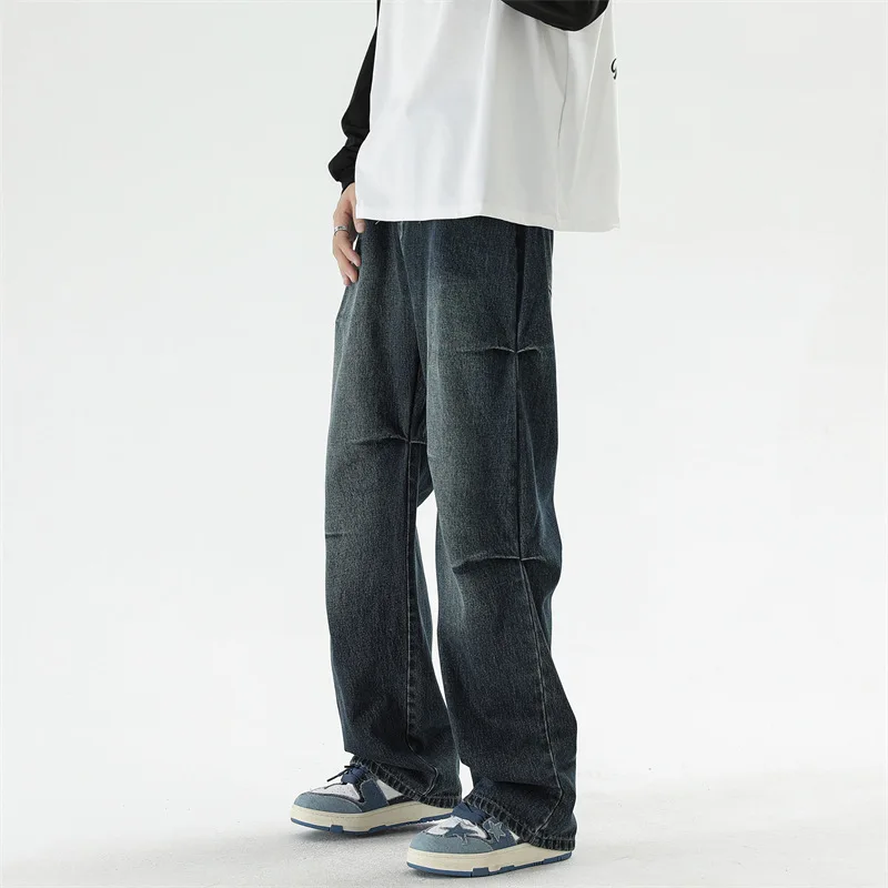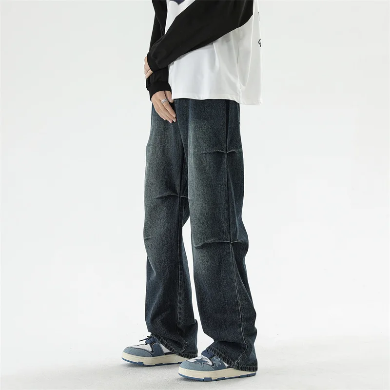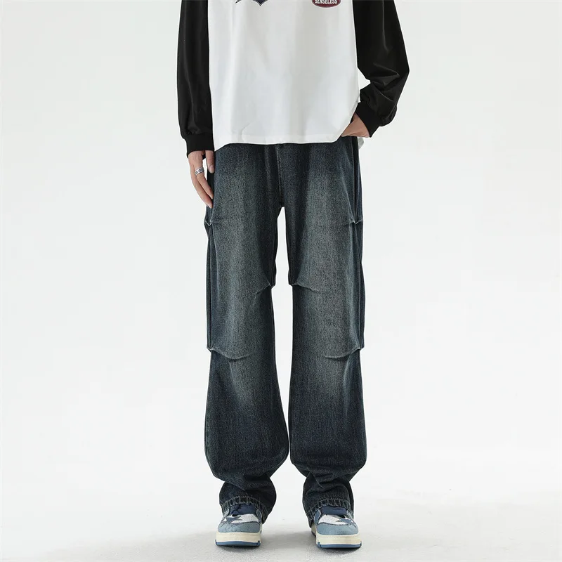 Design trendy brand wrinkled jeans for men’s American loose straight leg long pants men jeans baggy jeans