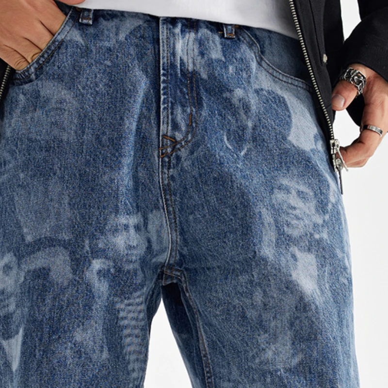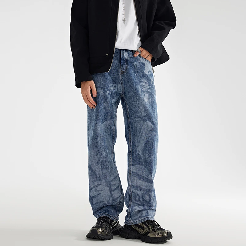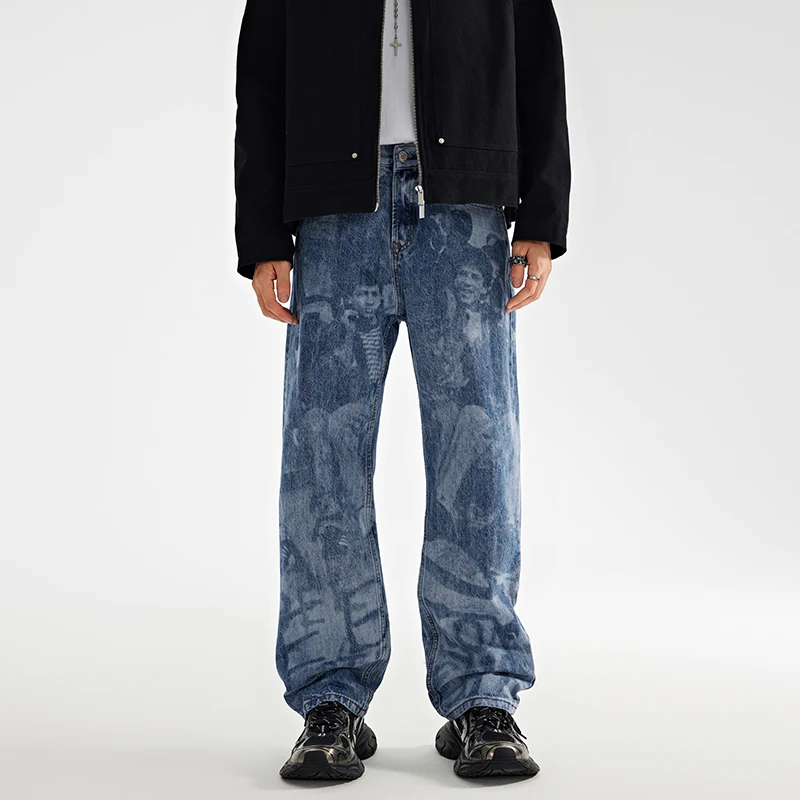 Designer Human Printed Denim Jeans Mens New Casual Zipper Straight Hip Hop Jeans Streetwear Baggy Pants Joggers Graphic Jeans